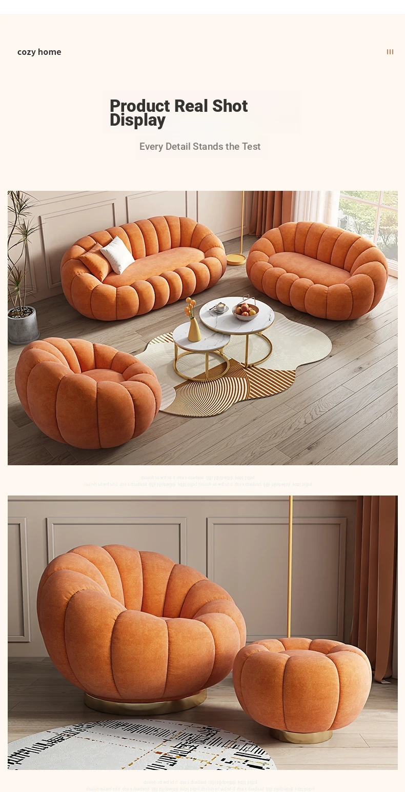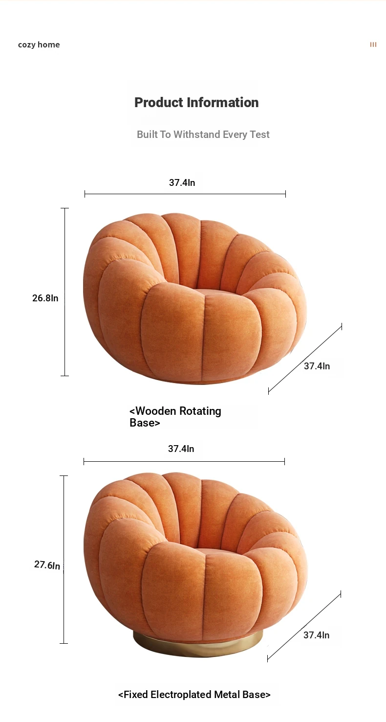Orange (technology cashmere) 360 Rotate wooden base + footstool