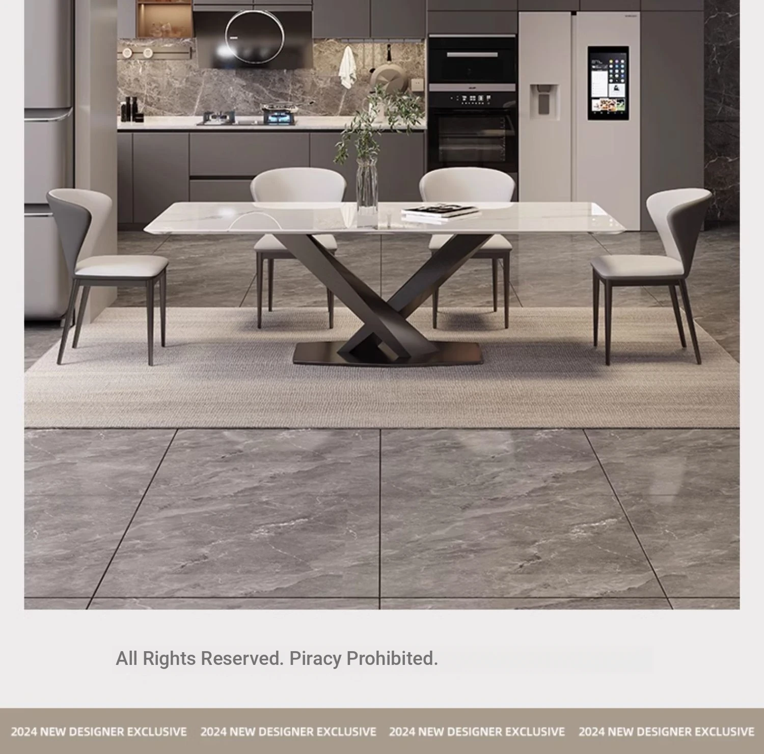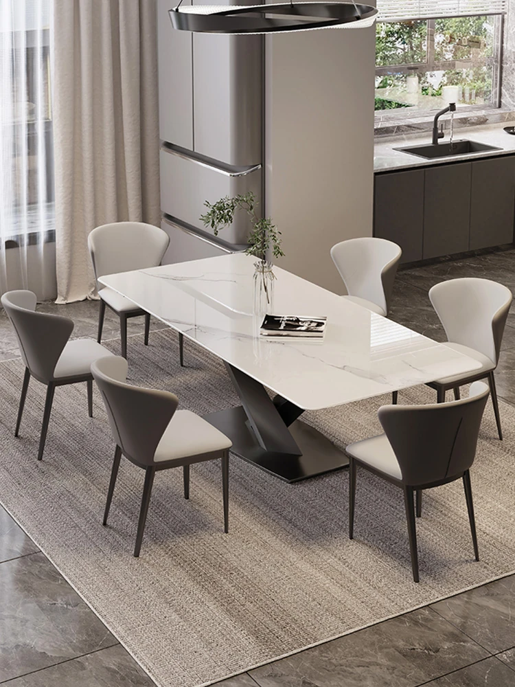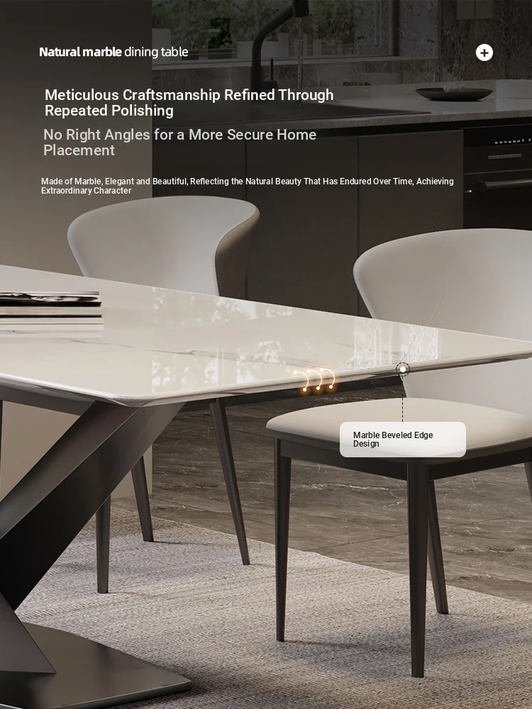 Elegant Italian Natural Marble Dining Table and Chair Set - Modern Minimalist Luxury Design for High-End Villas, Rectangular Shape Perfect for Home Use
