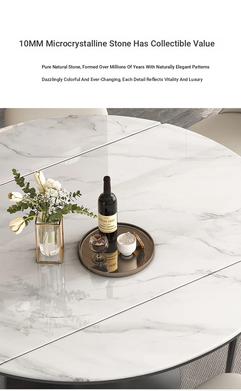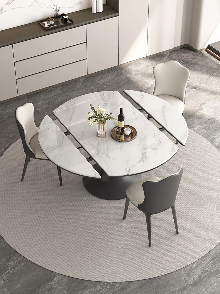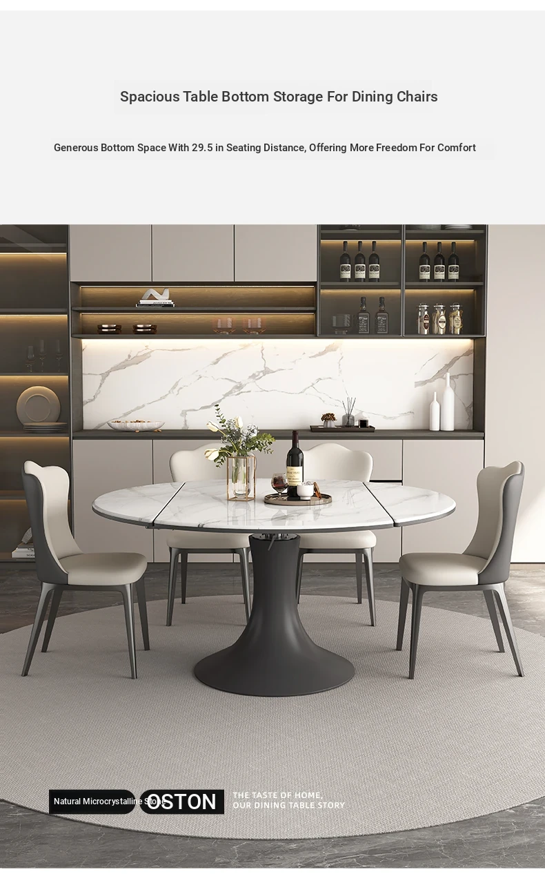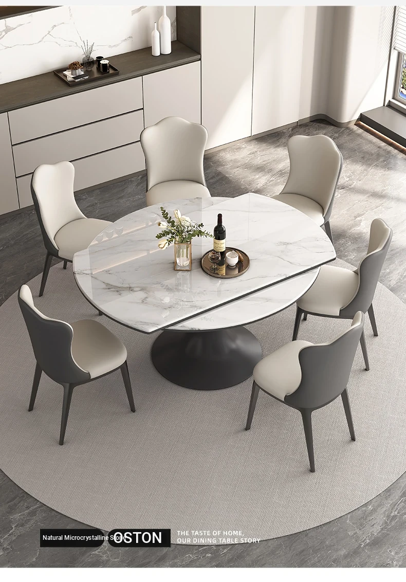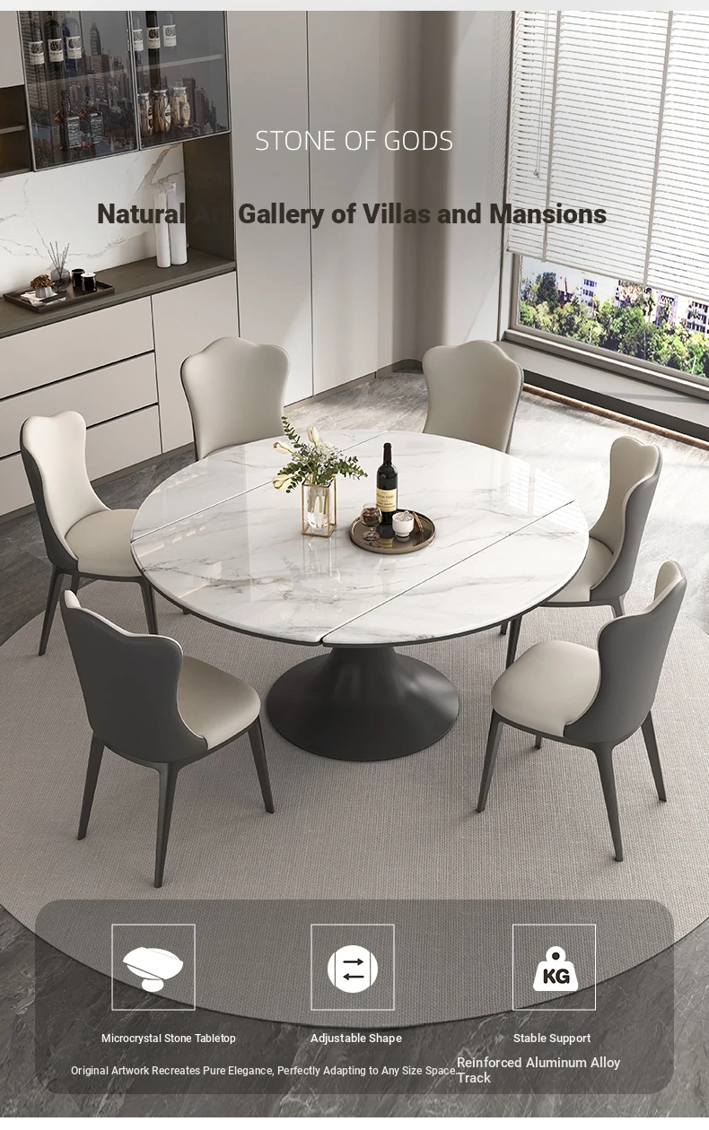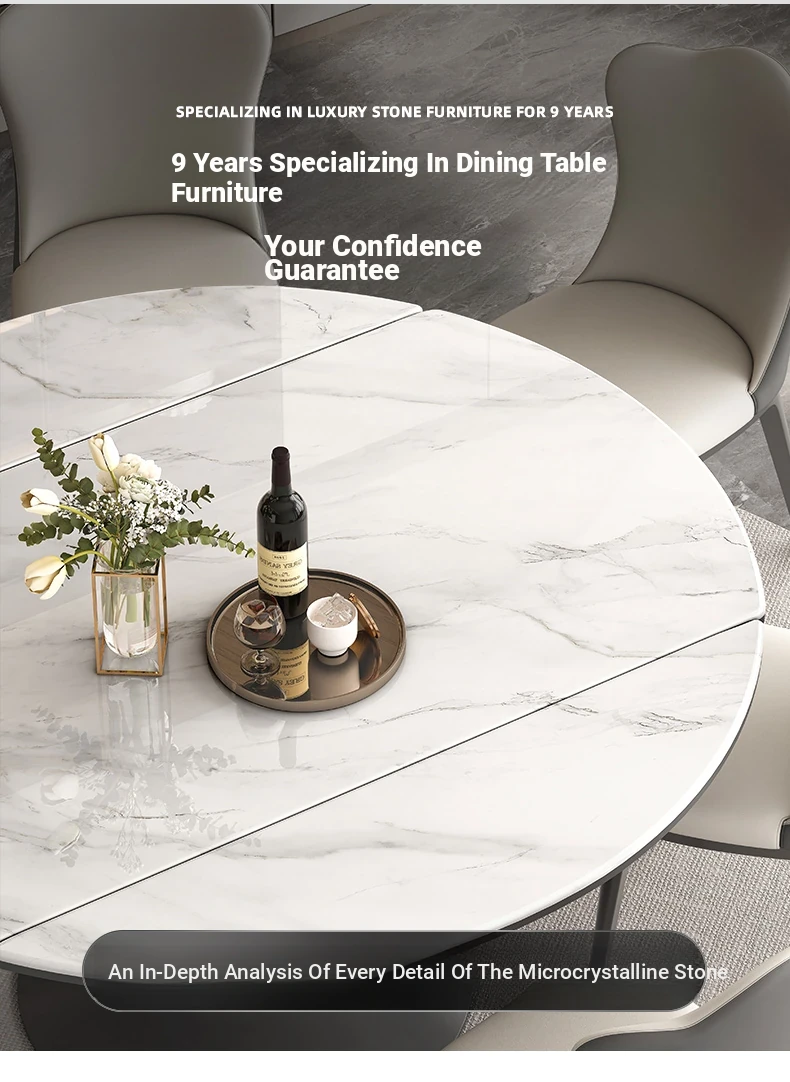 Elegant Luxury Expandable Microcrystal Stone Dining Table - Modern Rotating Round Table for Small Spaces, Perfect for Home Use!