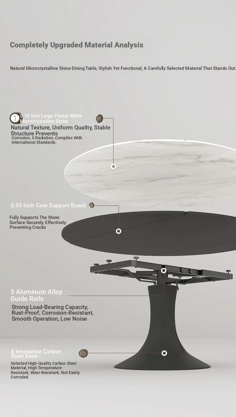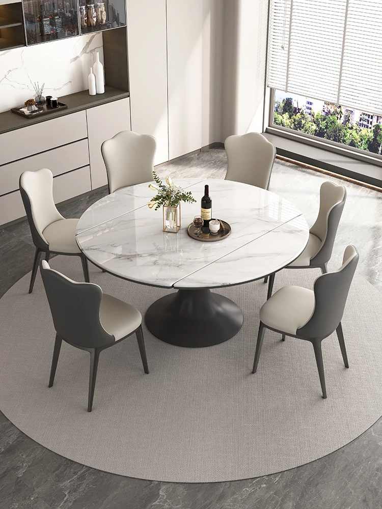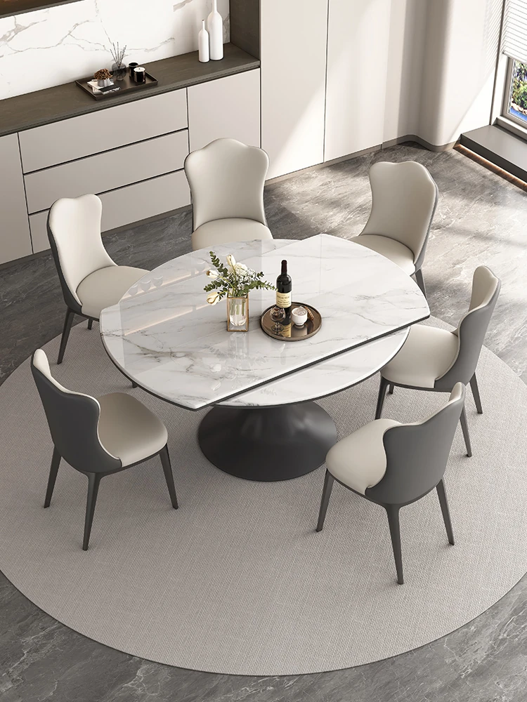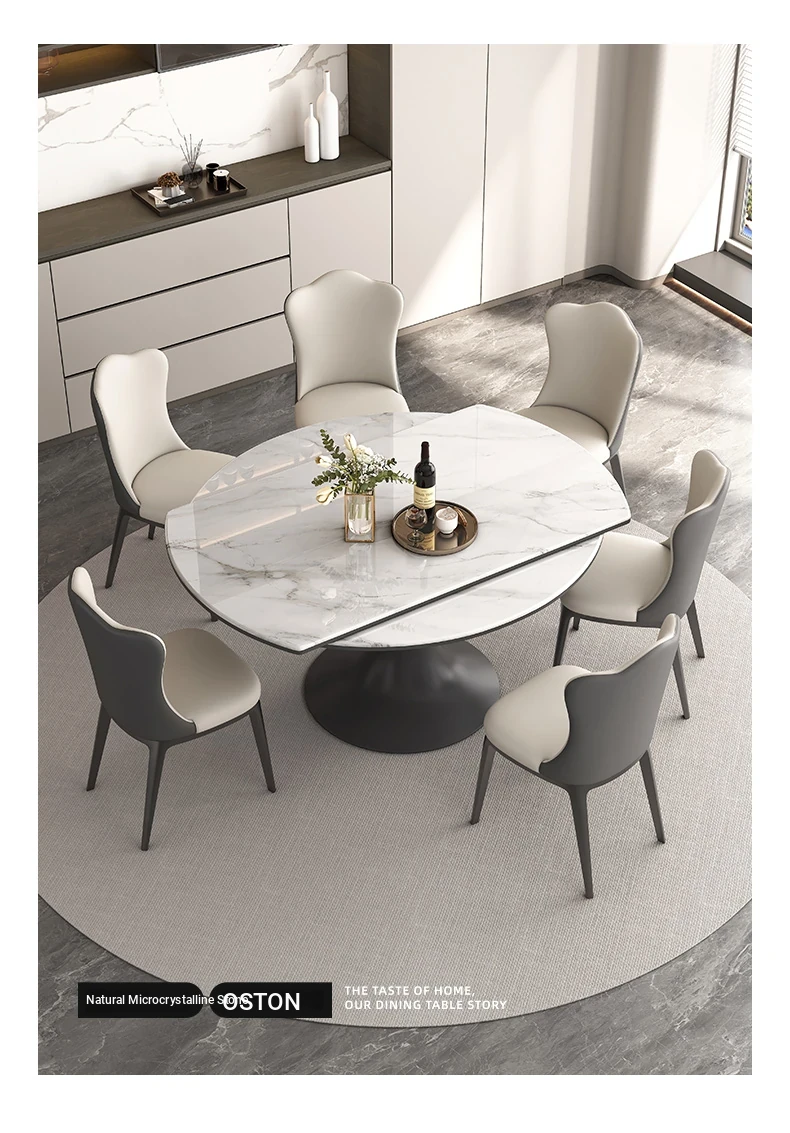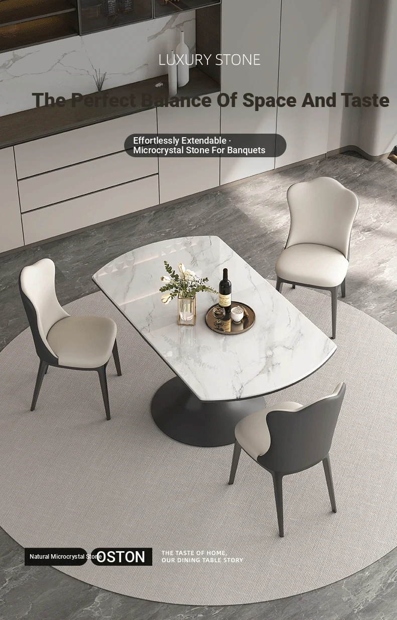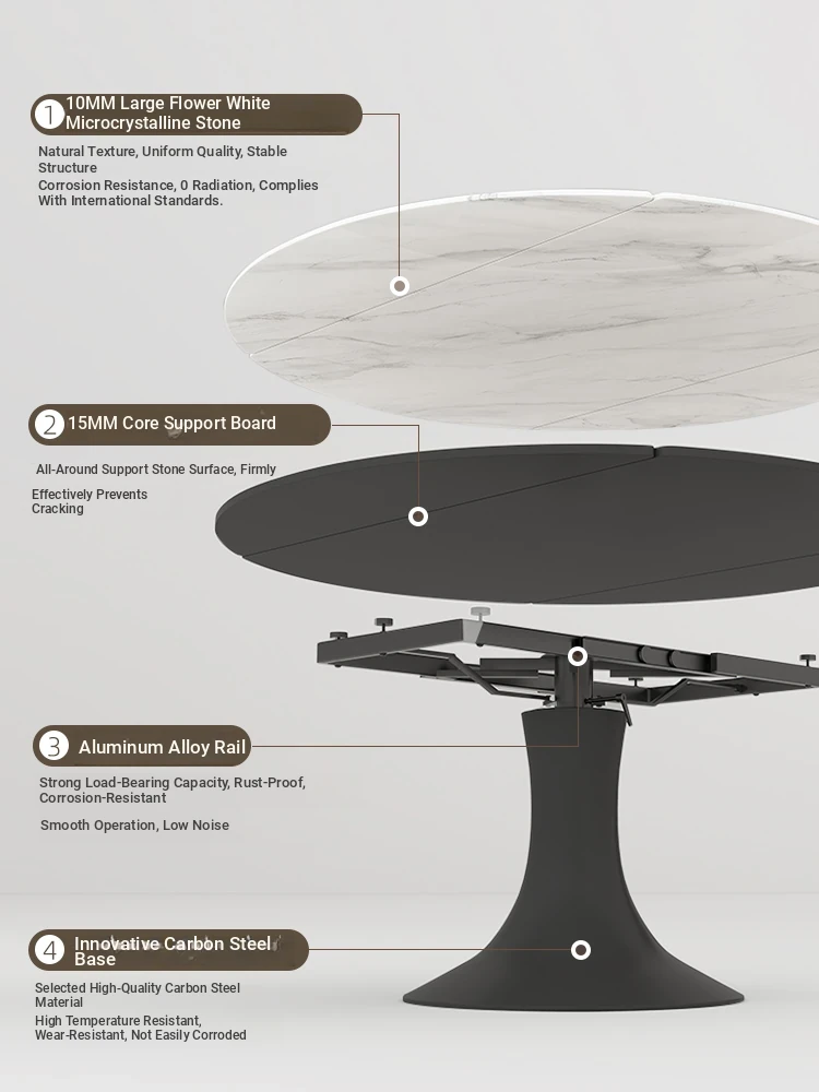 Elegant Luxury Expandable Microcrystal Stone Dining Table - Modern Rotating Round Table for Small Spaces, Perfect for Home Use!