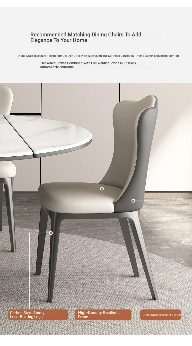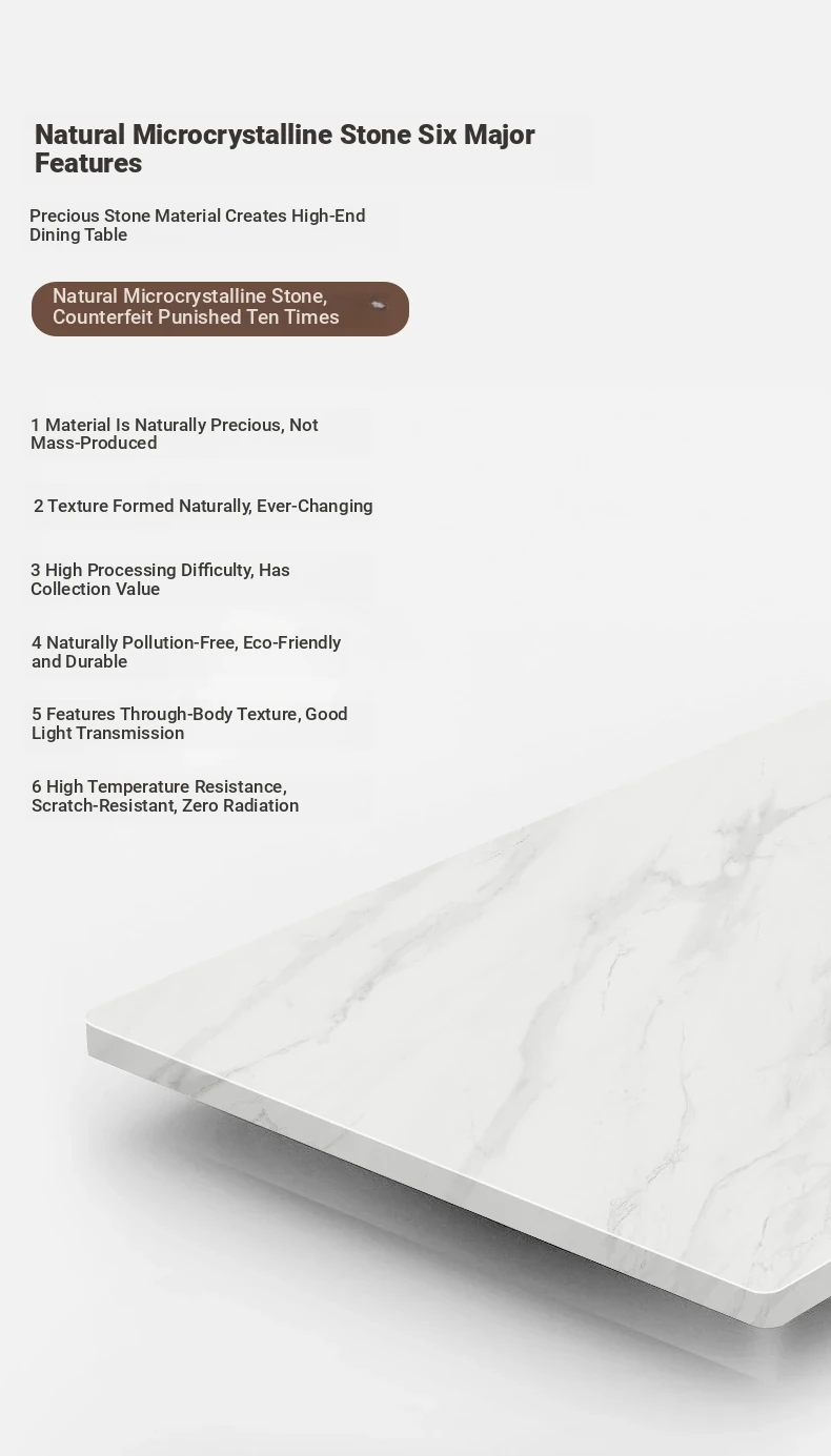 Retractable table (natural microcrystalline stone) + cat scratch leather dining chair * 6