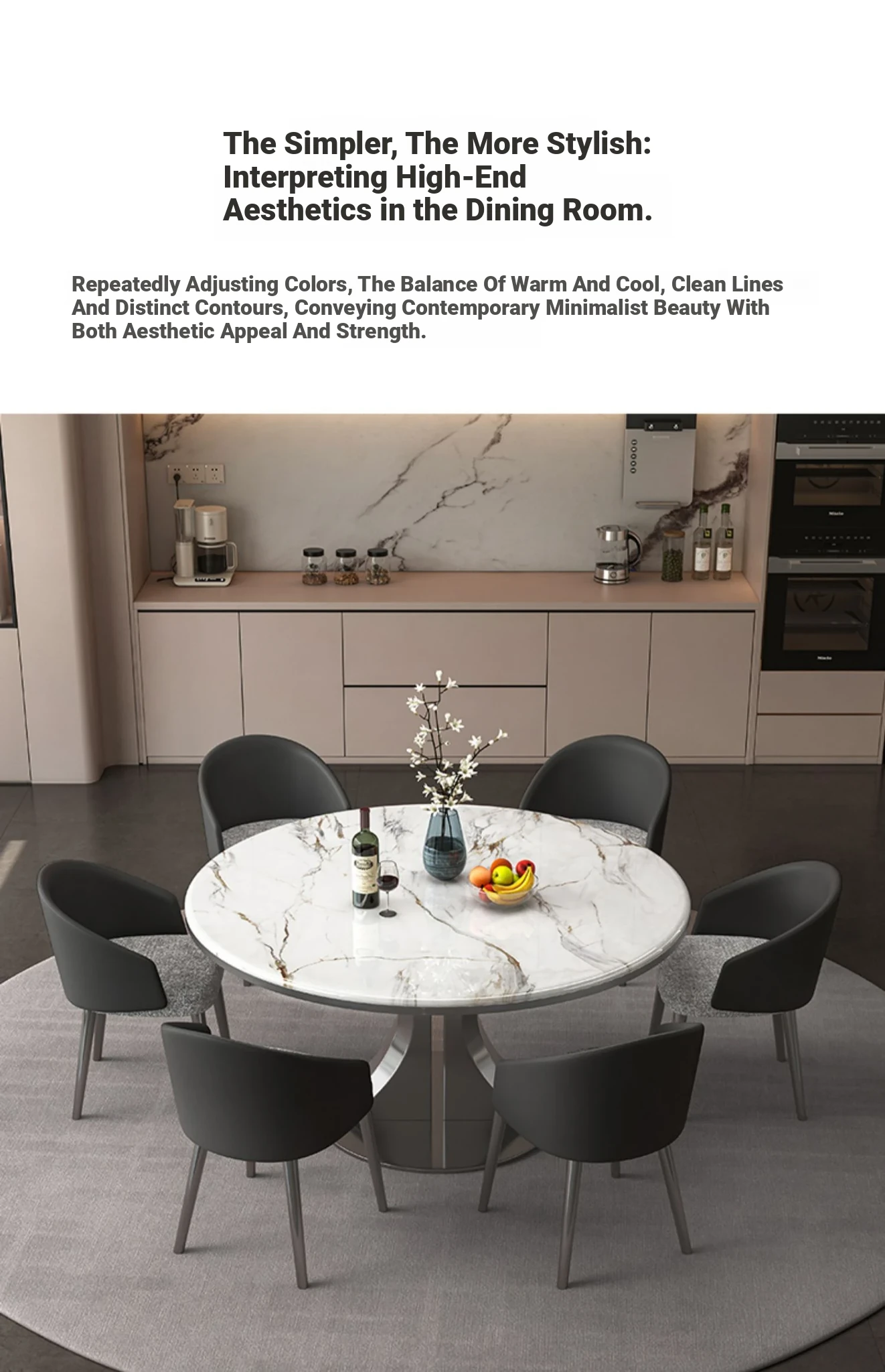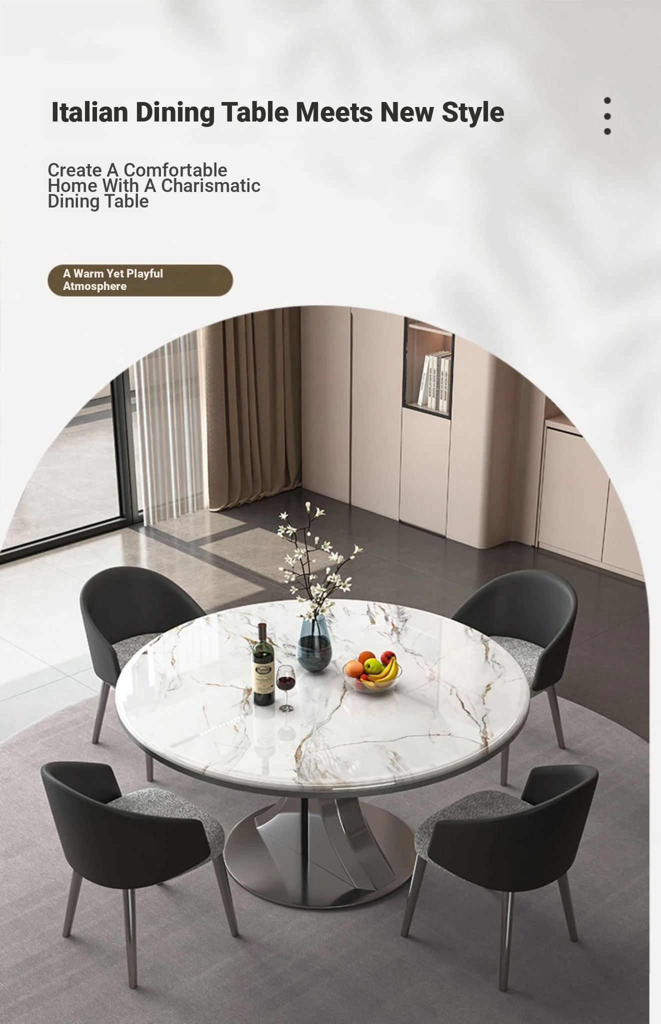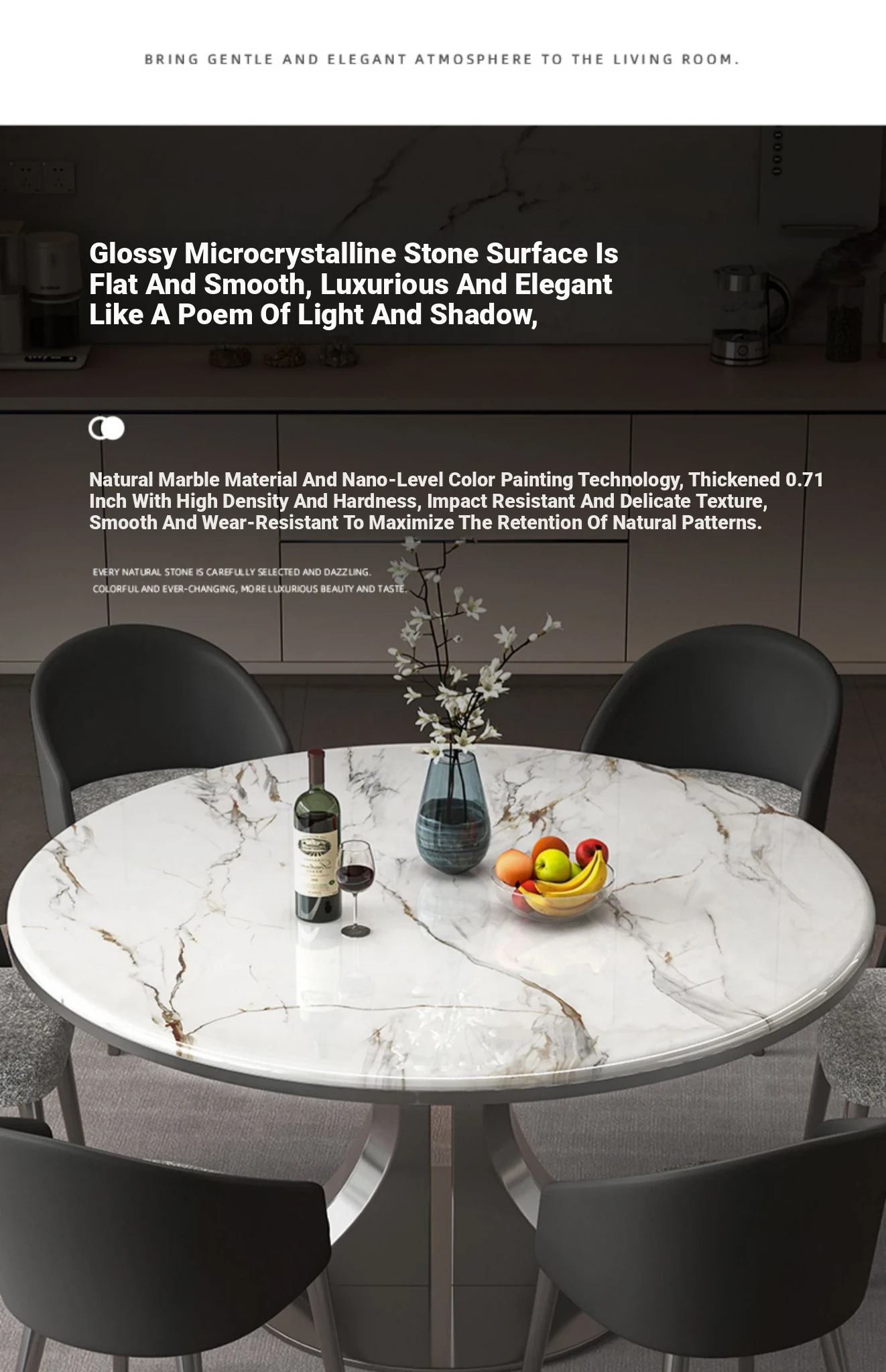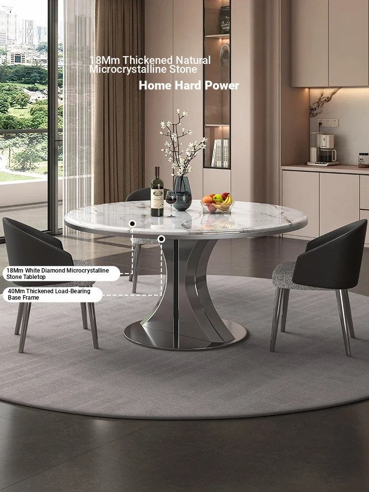 Elegant Microcrystalline Stone Round Dining Table - New Italian High-End Minimalist Design with Premium Marble Finish - Perfect for Stylish Home Dining Sets