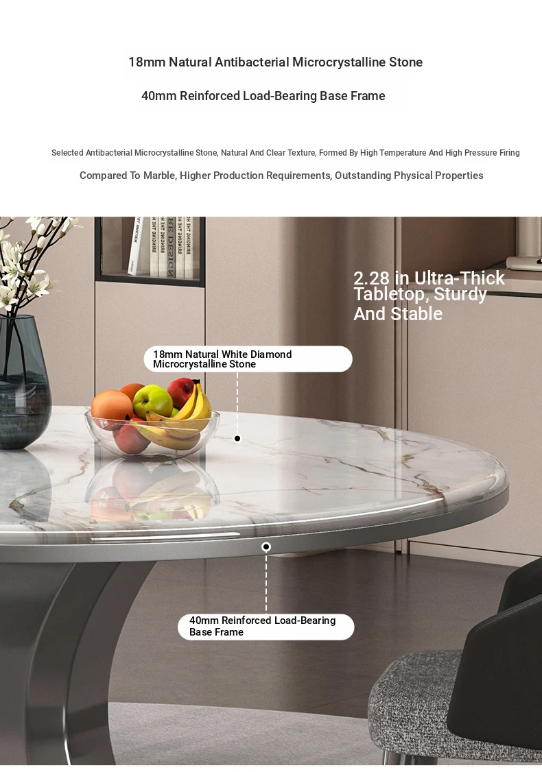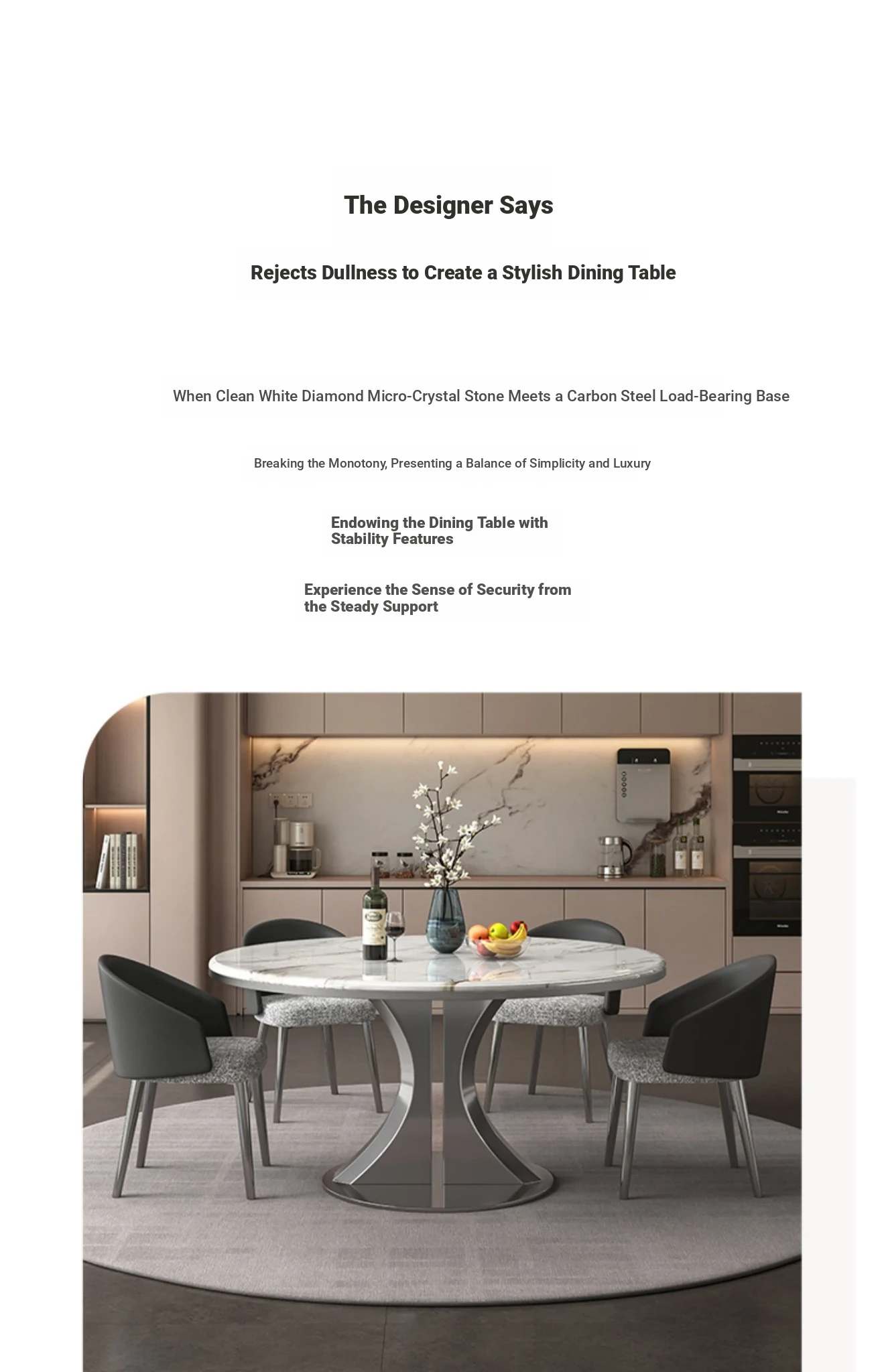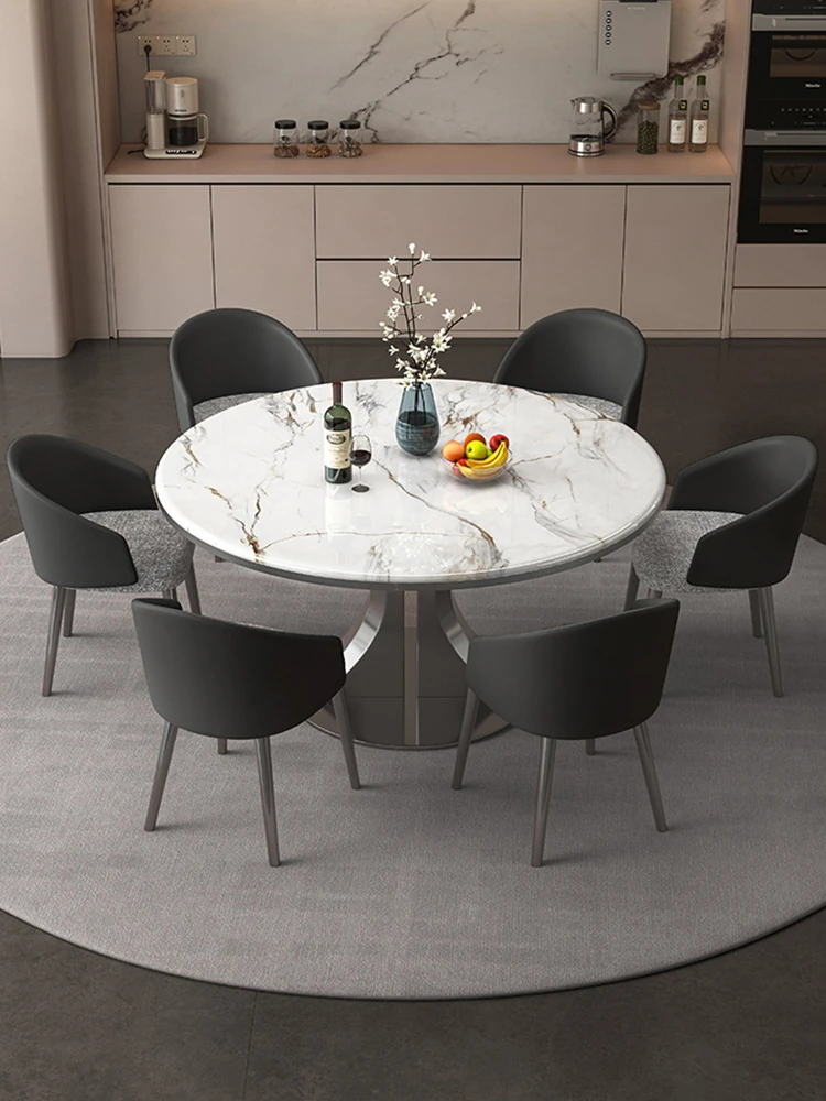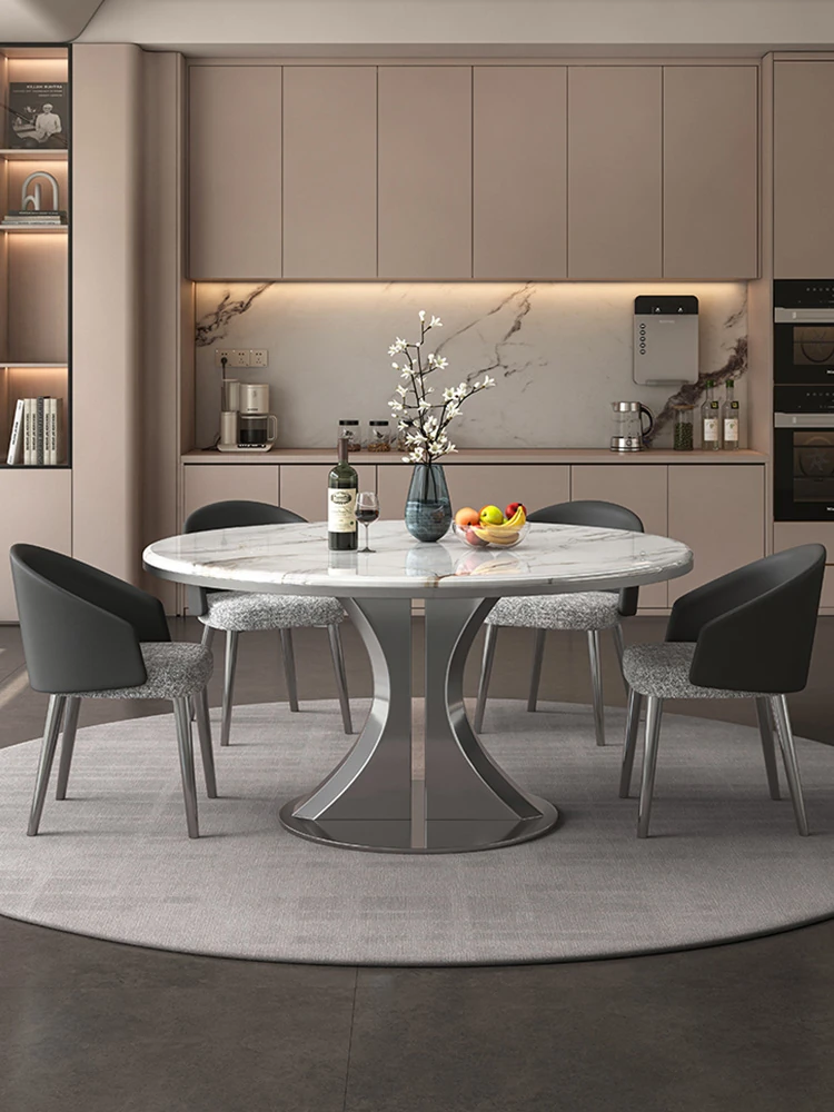 Elegant Microcrystalline Stone Round Dining Table - New Italian High-End Minimalist Design with Premium Marble Finish - Perfect for Stylish Home Dining Sets