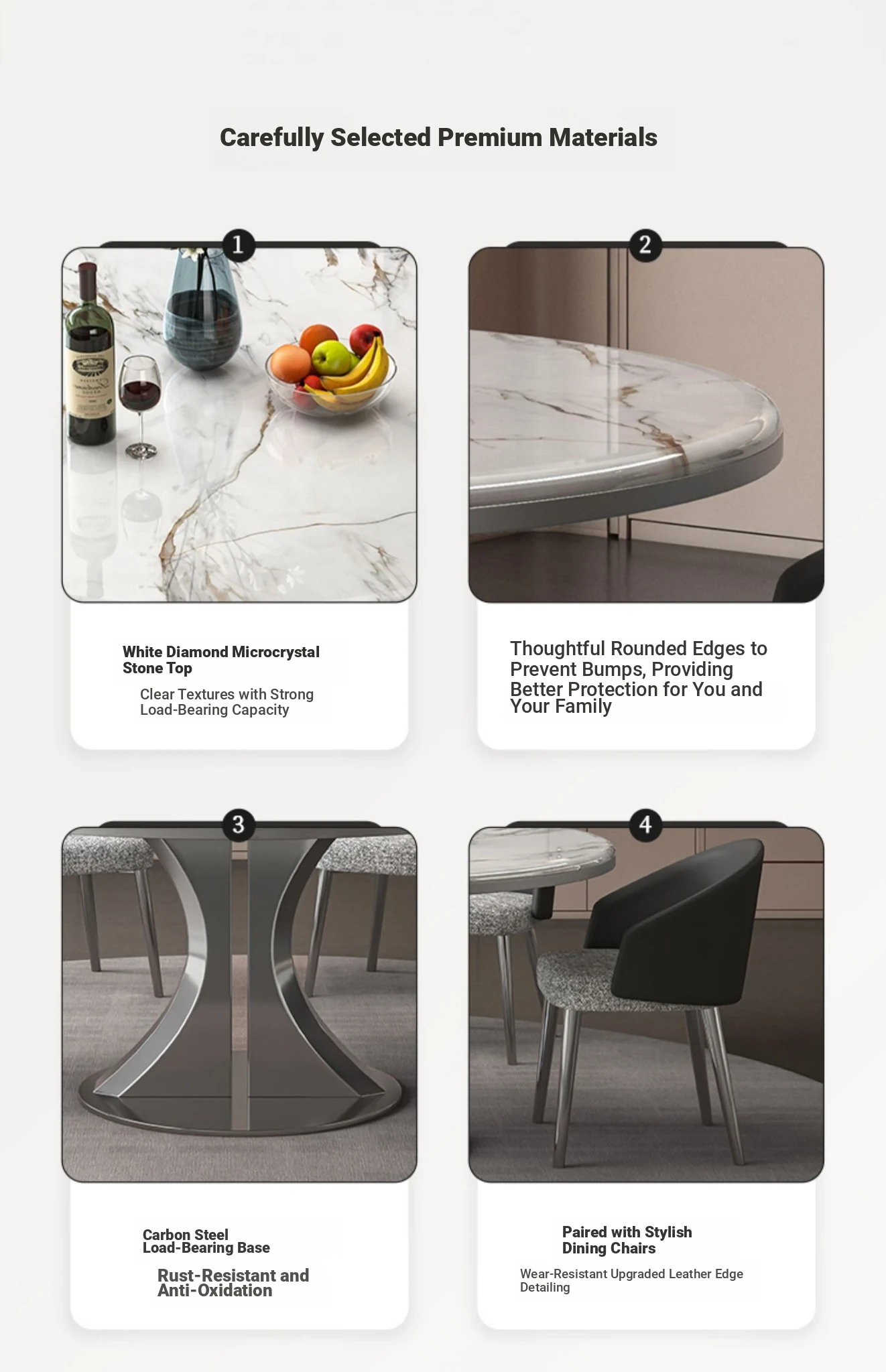 53.15in microcrystalline stone round table +4 dining chair [designer Matching]]