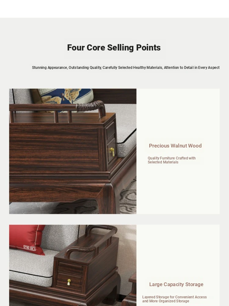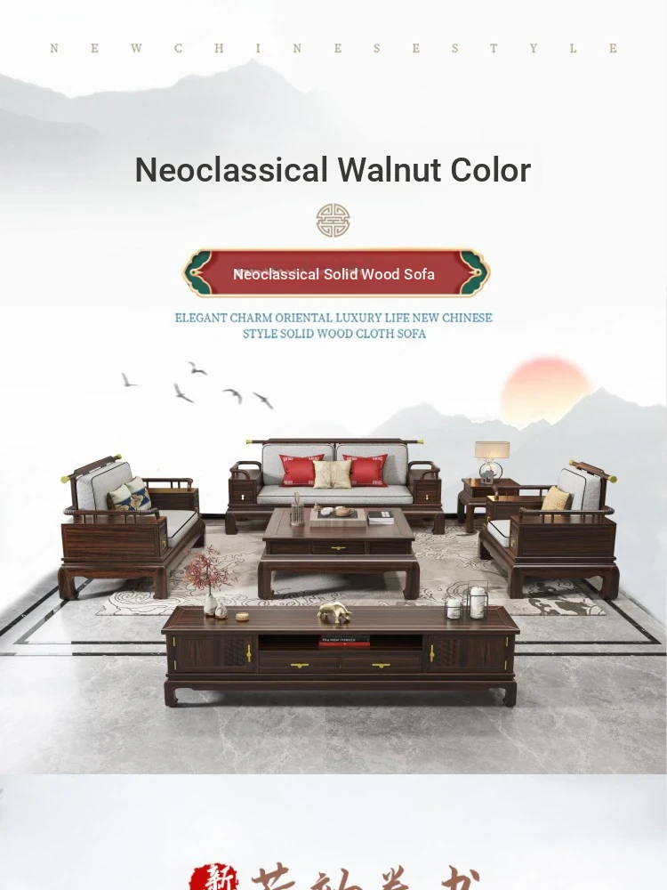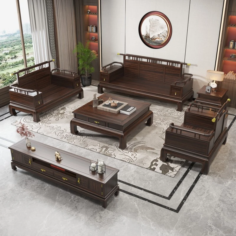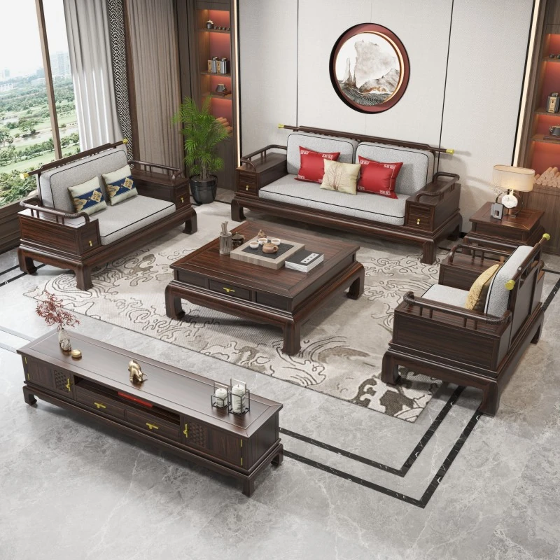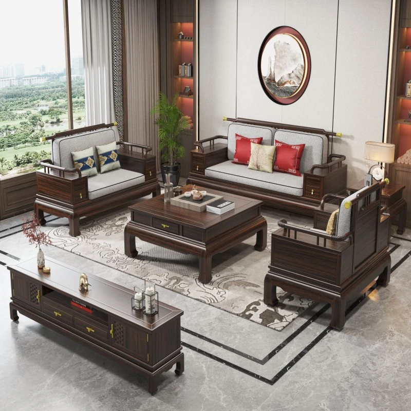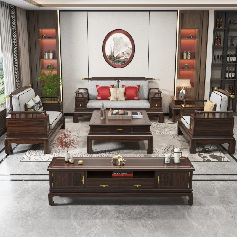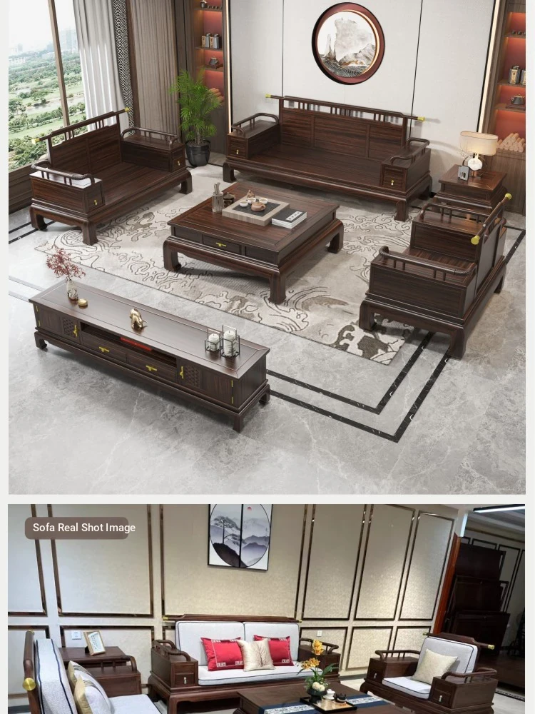 Elegant New Classical South American Walnut Solid Wood Mortise and Tenon Sofa Set - Modern Chinese Style High-End Home Furniture