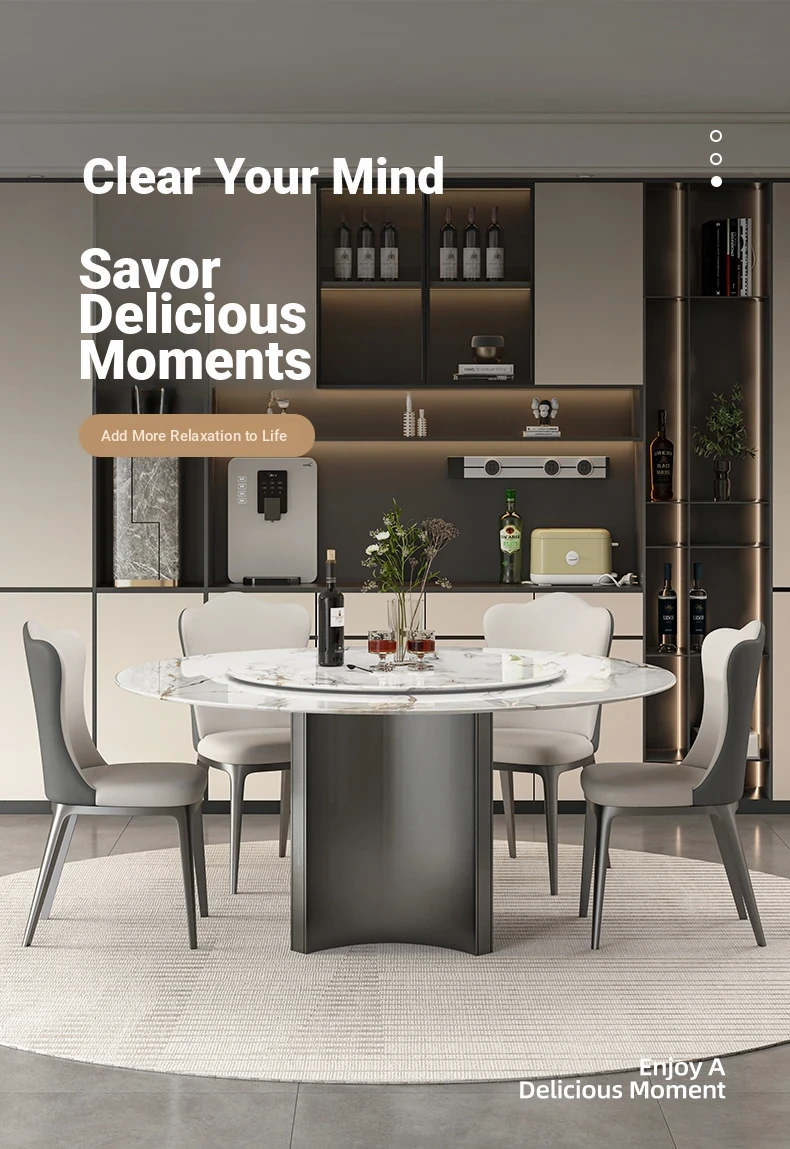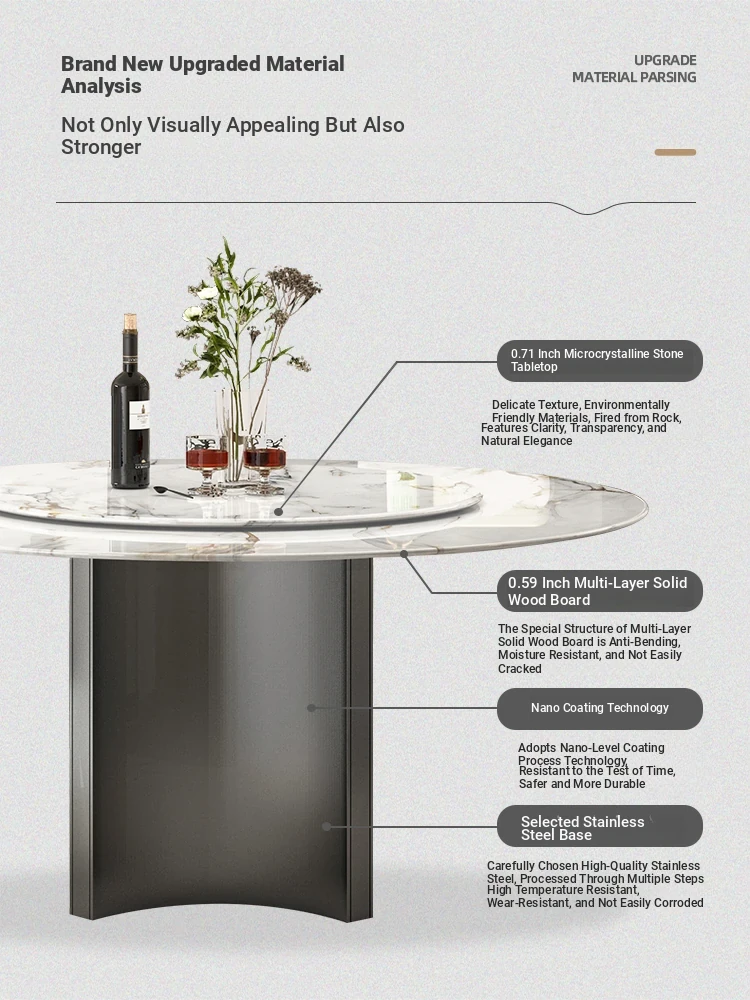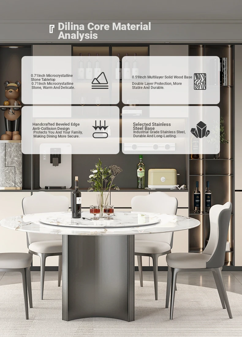 Elegant Pandora Round Dining Table - Natural Microcrystalline Stone with Luxe Marble Finish for Modern Minimalist Homes, Perfect for Upscale Dining Experiences.