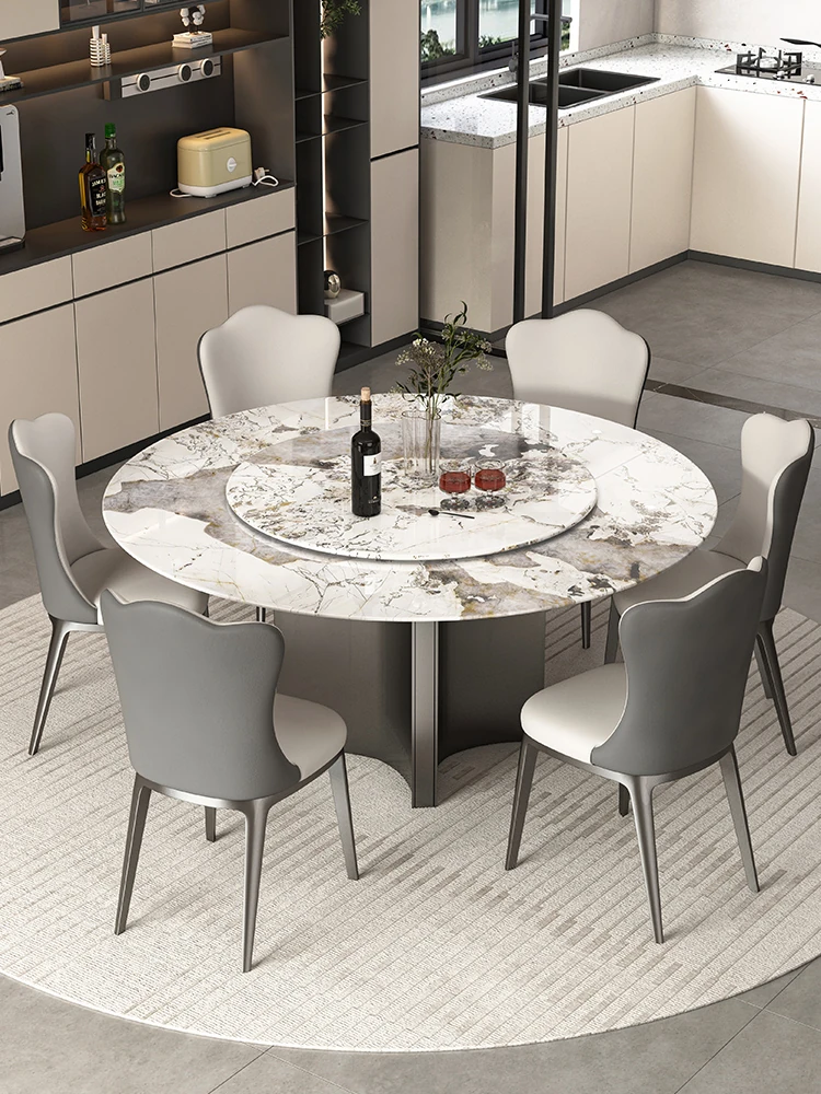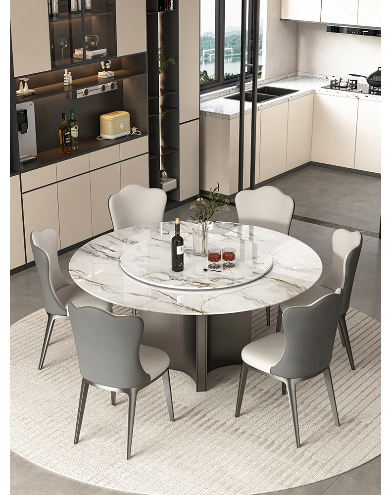 47.24in natural microcrystalline stone dining table [with turntable] + cat scratch leather dining chair * 6