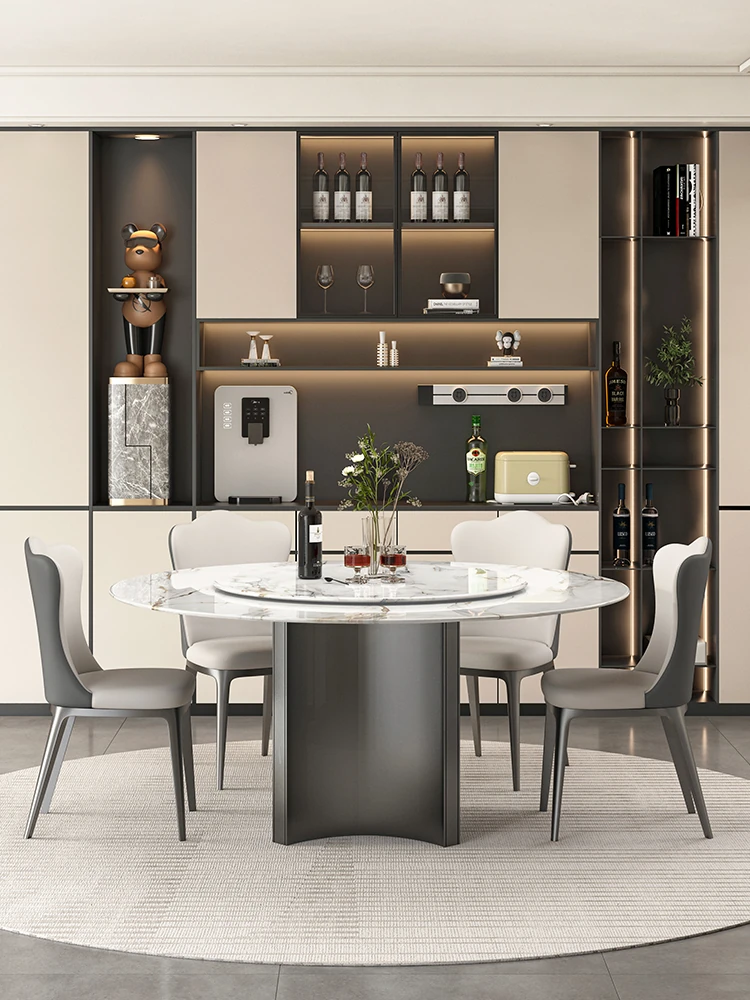 47.24in natural microcrystalline stone dining table [with turntable] + cat scratch leather dining chair * 4