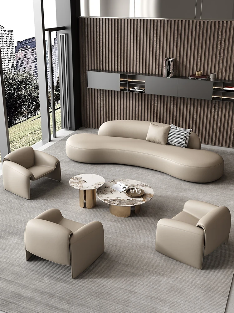 Elegant Round Curved Sofa Set for Real Estate Sales Offices and Hotel Lobbies – Perfect for VIP Business Clubs and Reception Areas, Ideal for Meetings and Discussions