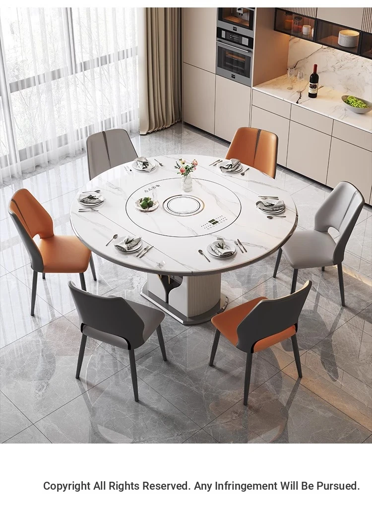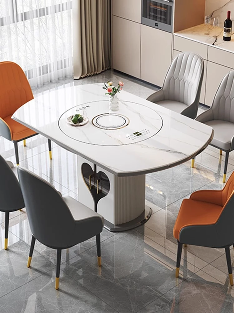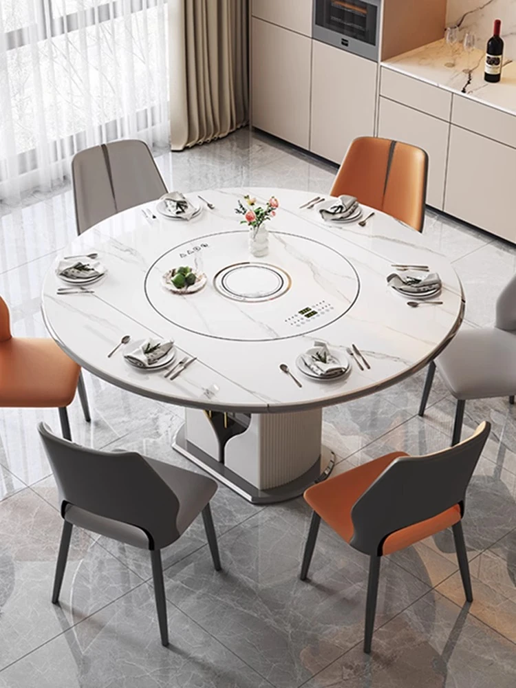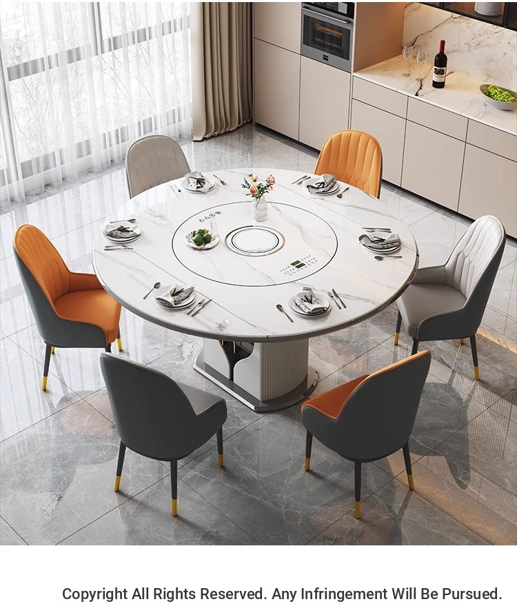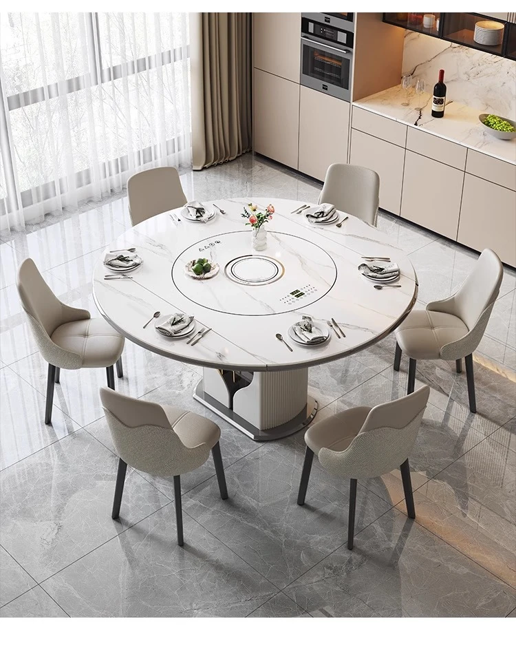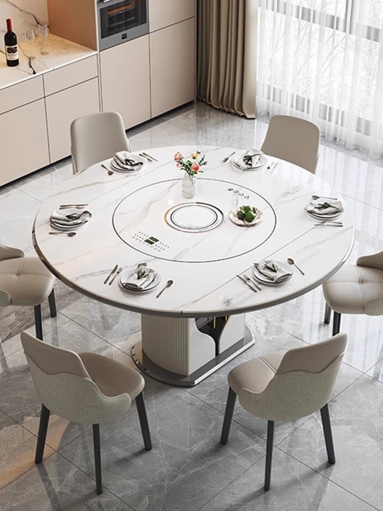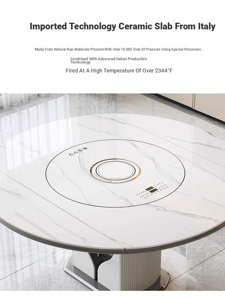 Foshan Luxury Rock Plate Dining Table Set - Versatile Round & Square Design, Expandable, with Heated Cooktop and Smart Voice Control - Perfect for Home Dining!