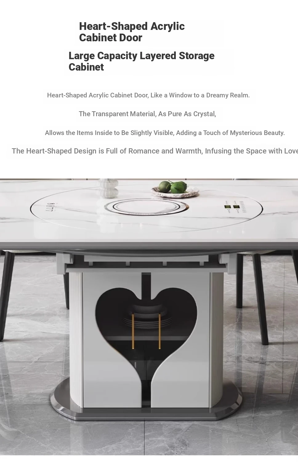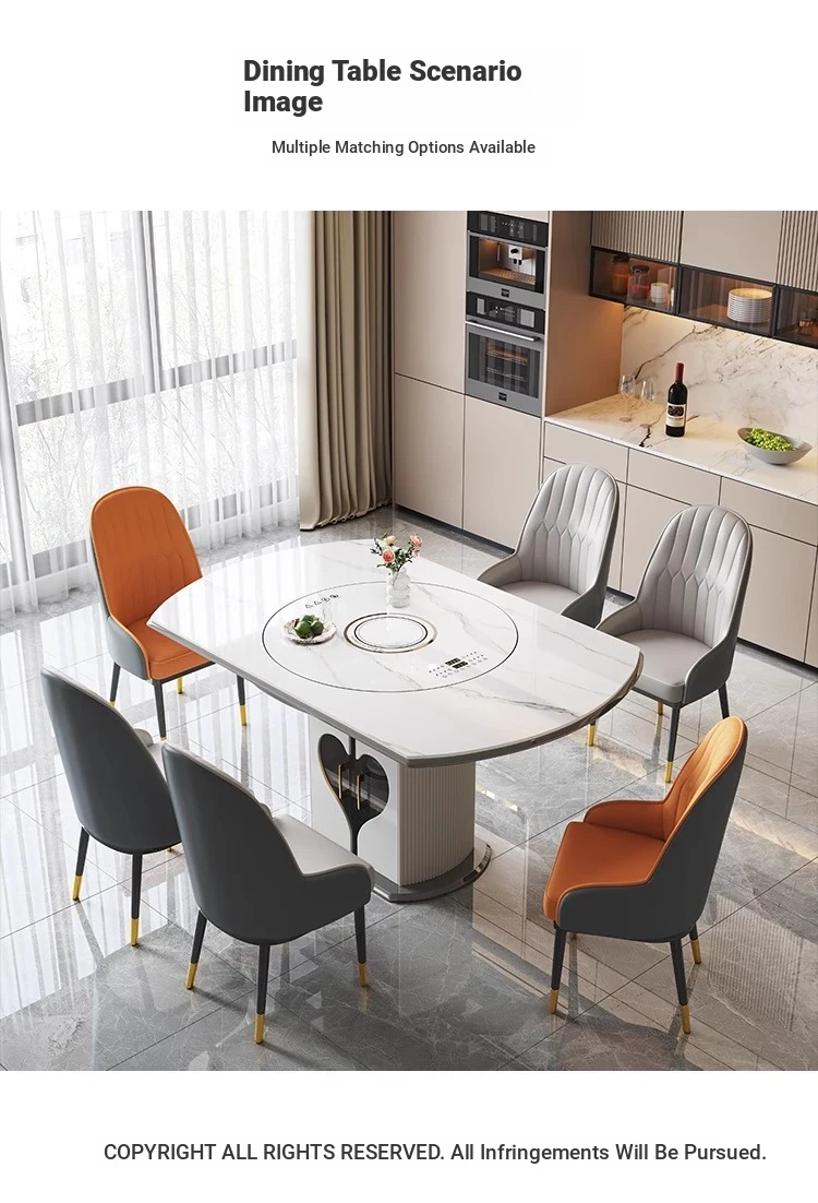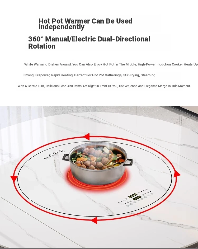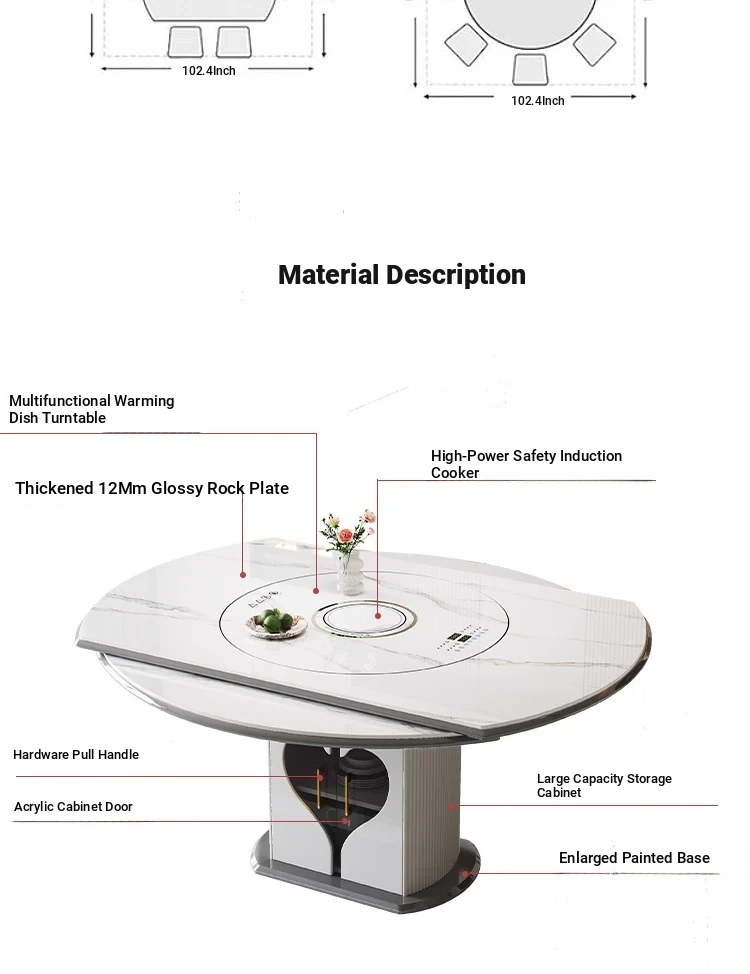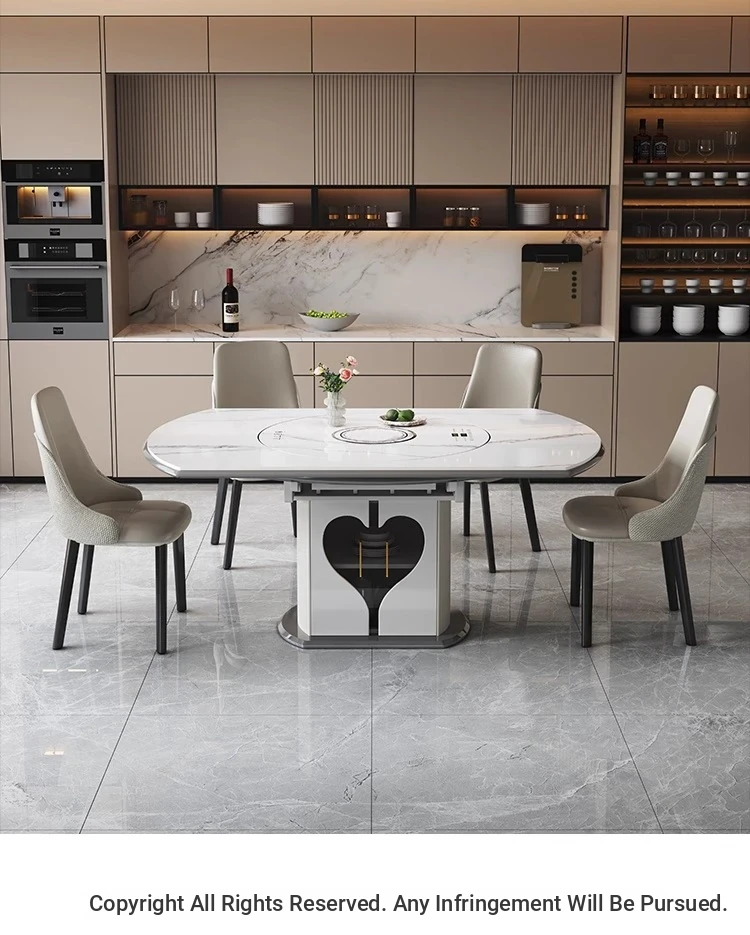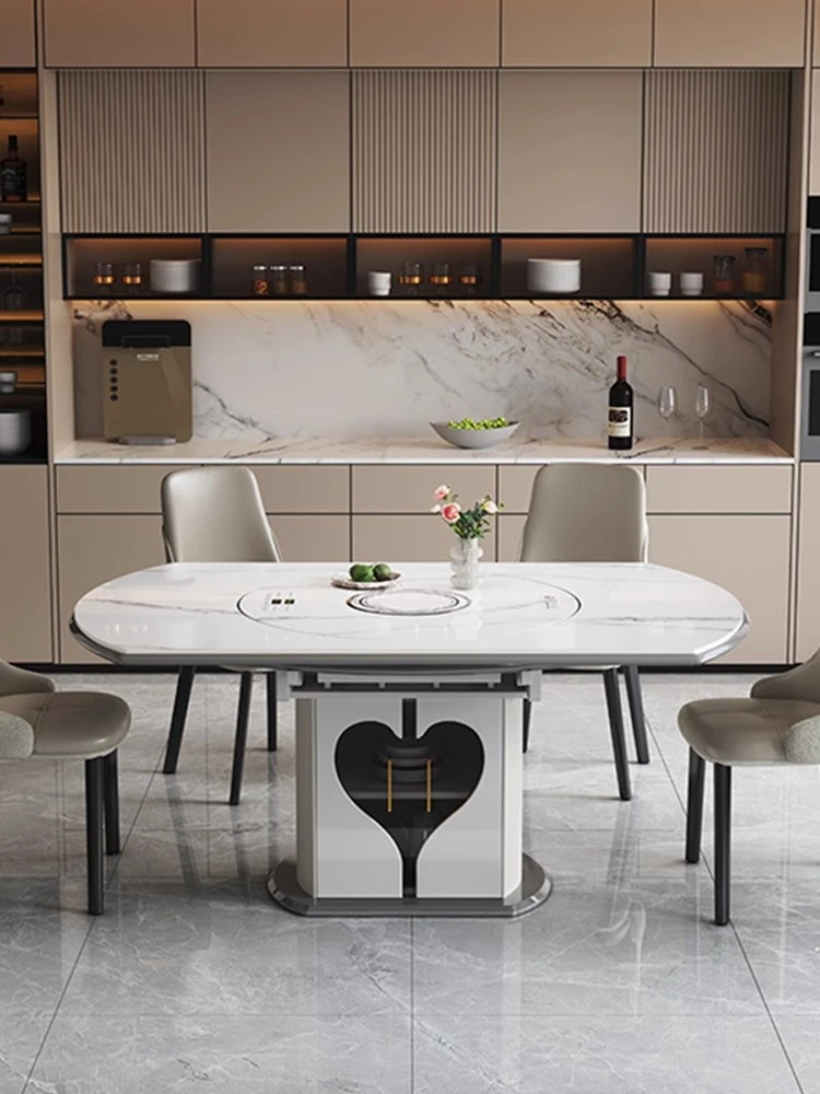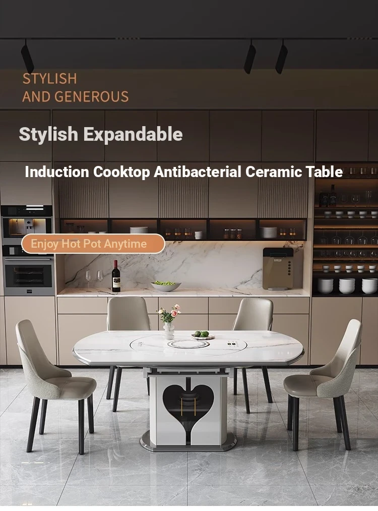 Foshan Luxury Rock Plate Dining Table Set - Versatile Round & Square Design, Expandable, with Heated Cooktop and Smart Voice Control - Perfect for Home Dining!