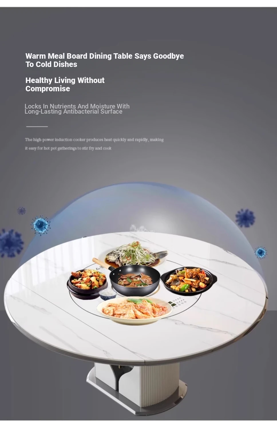 59.06 in Foshan Dining Table [AI Voice Control Warm Chopping Board] + Automatic Turntable + Induction cooker