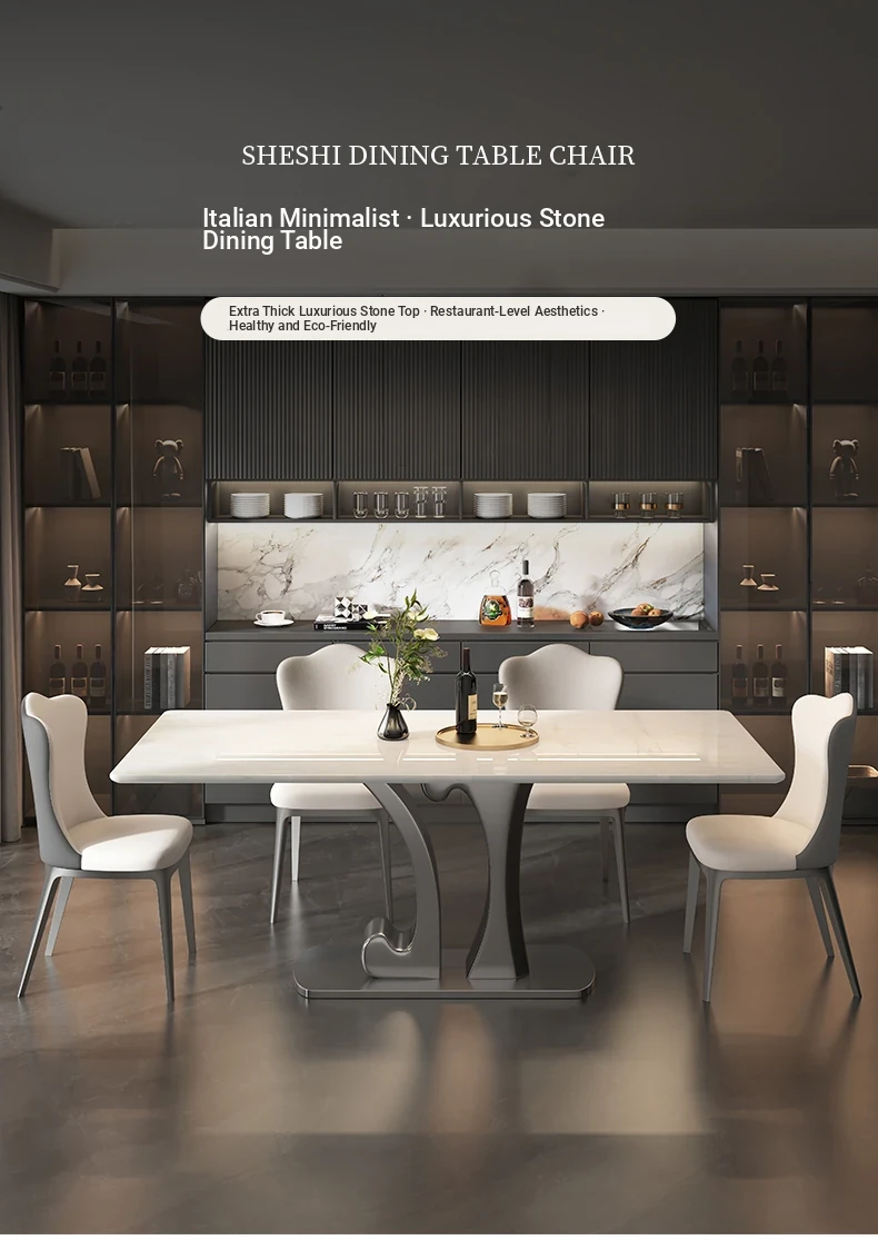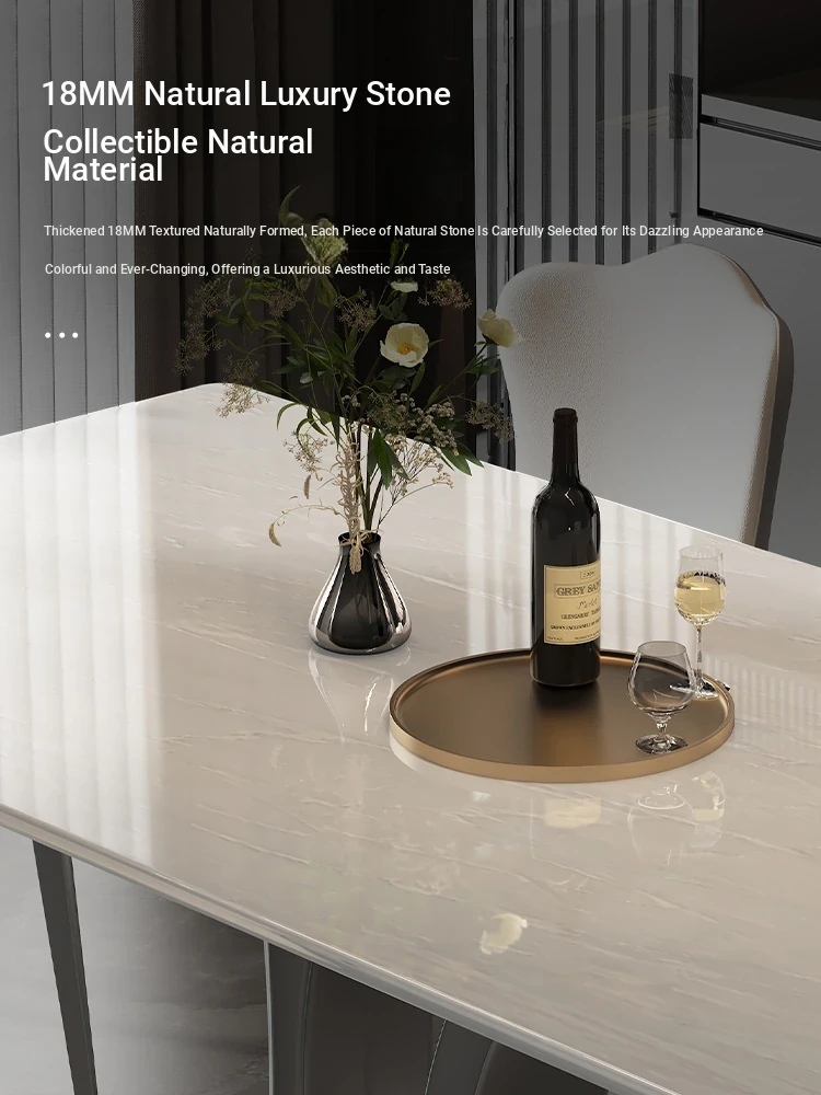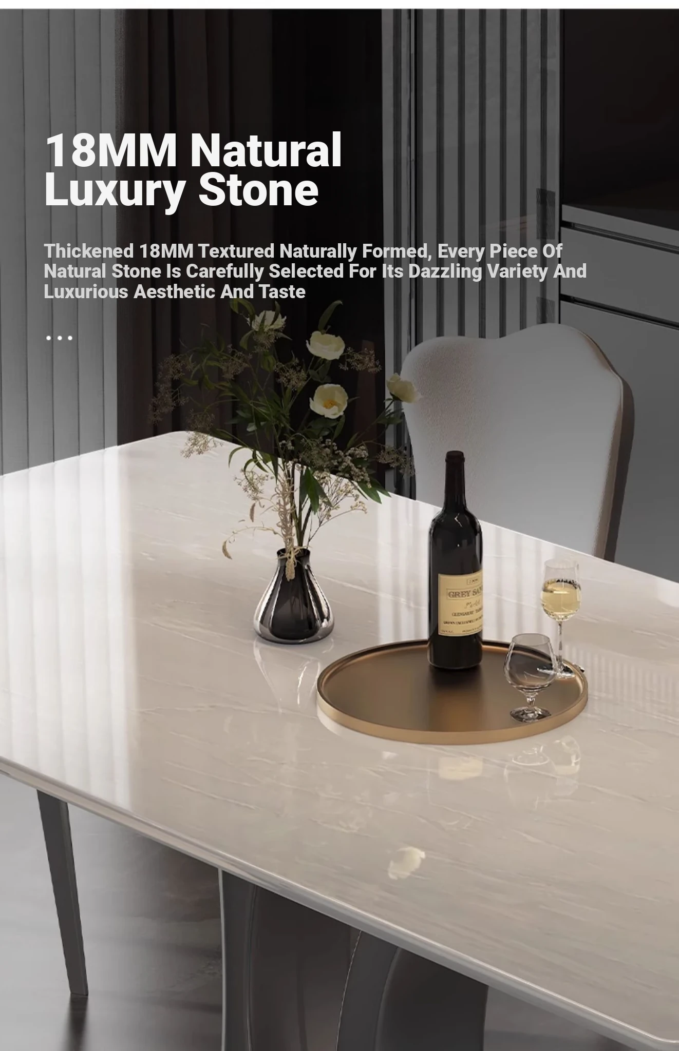 Imported Natural Calacatta Marble Luxury Dining Table - Elegant Rectangular Design for Home Use, Perfect for Upscale Italian Dining Experience