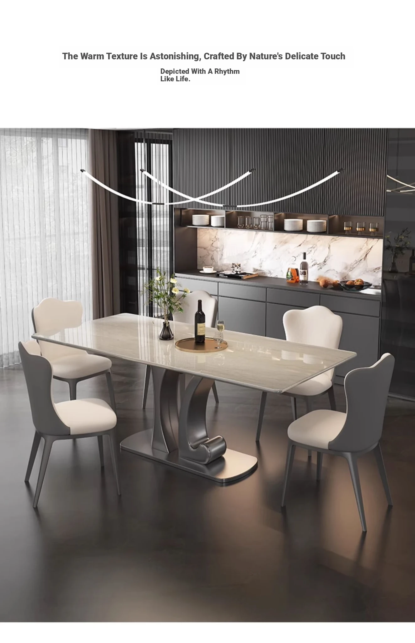 1.3 Natural Kari ice Jade luxury stone dining table + leather cloud dining chair * 4