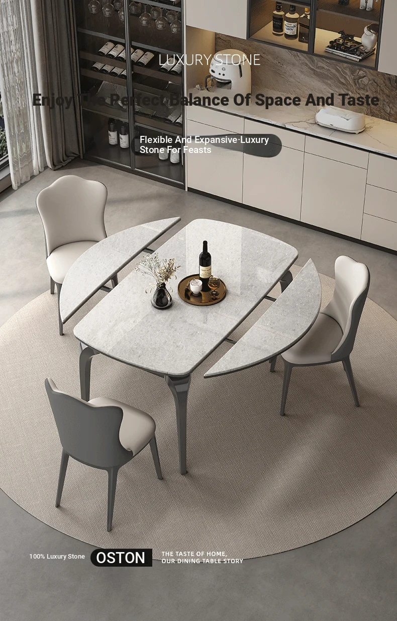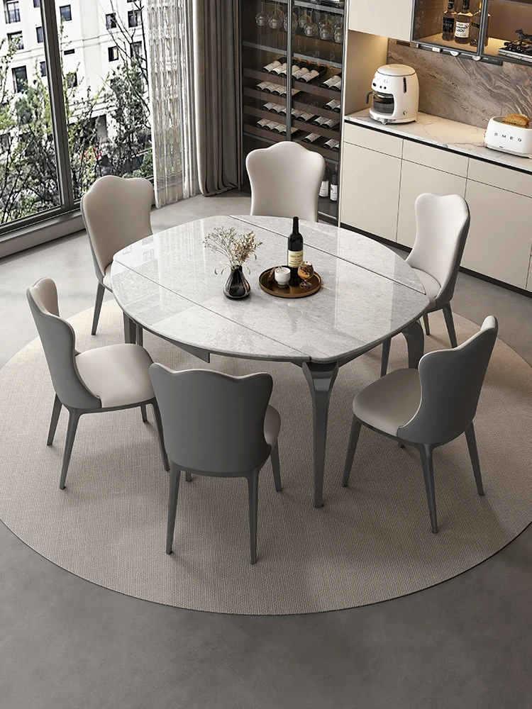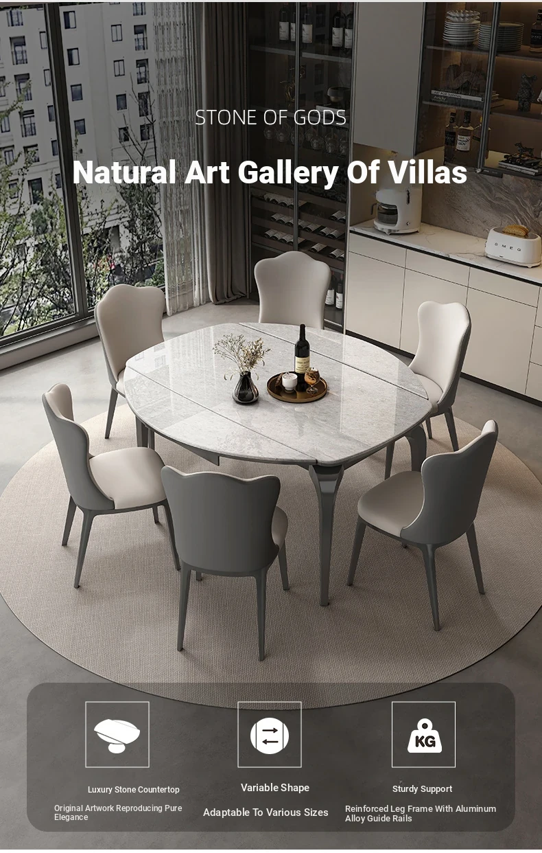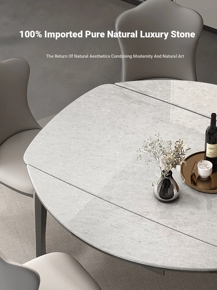 Imported Natural Crystal White Luxury Expandable Round Dining Table Set - New High-End Marble Table and Chair Combination for Modern Homes