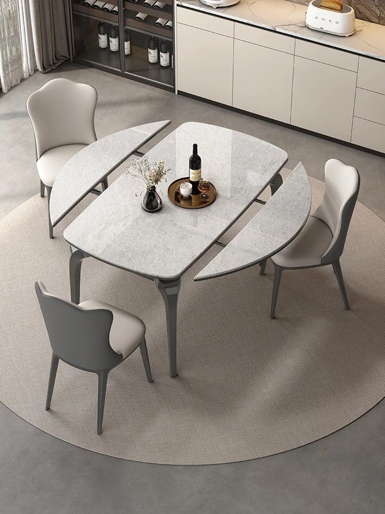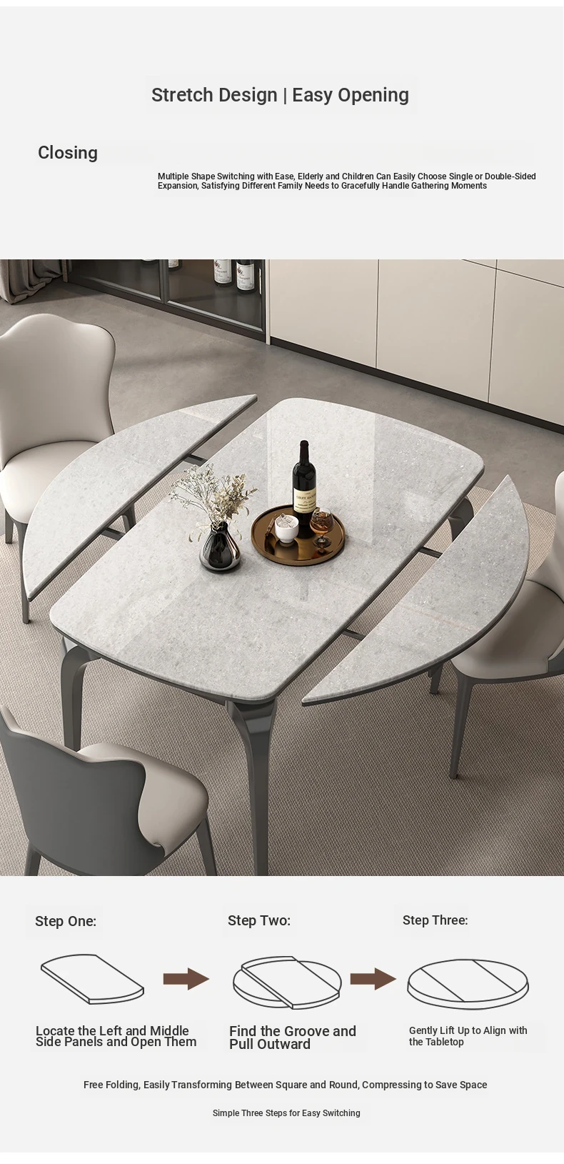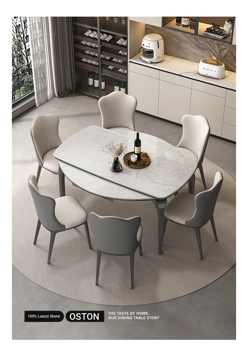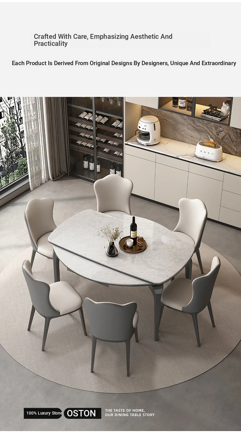 Imported Natural Crystal White Luxury Expandable Round Dining Table Set - New High-End Marble Table and Chair Combination for Modern Homes