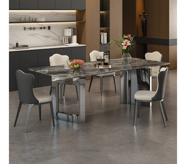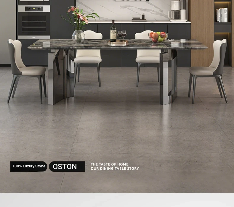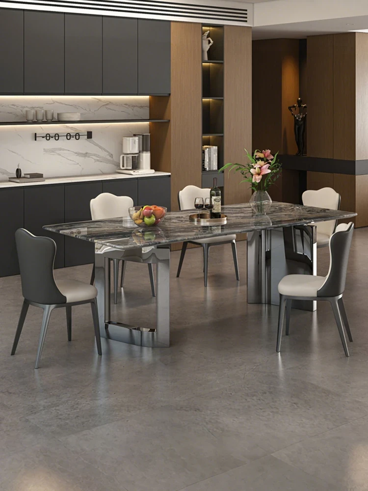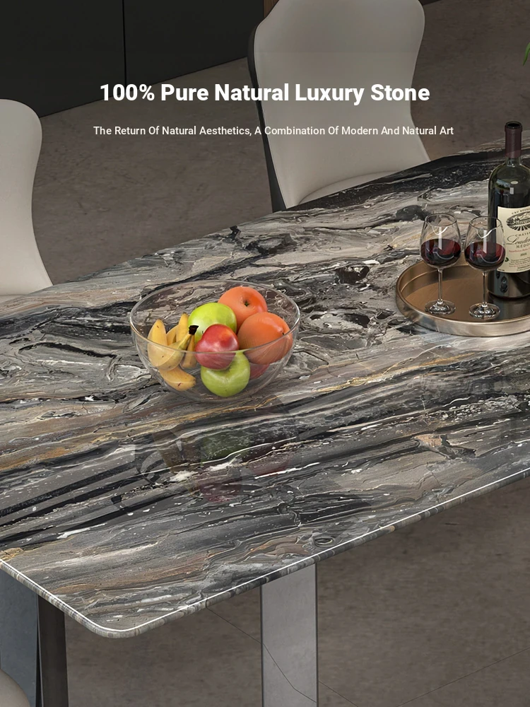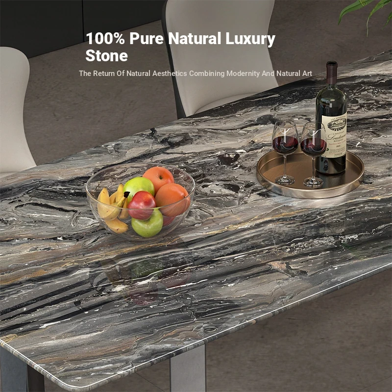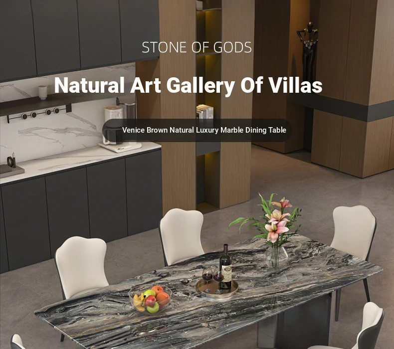 Imported Venetian Brown Natural Luxury Stone Dining Table - Elegant Italian Light Luxury Marble for High-End Villas, Perfect Dining Table and Chair Set