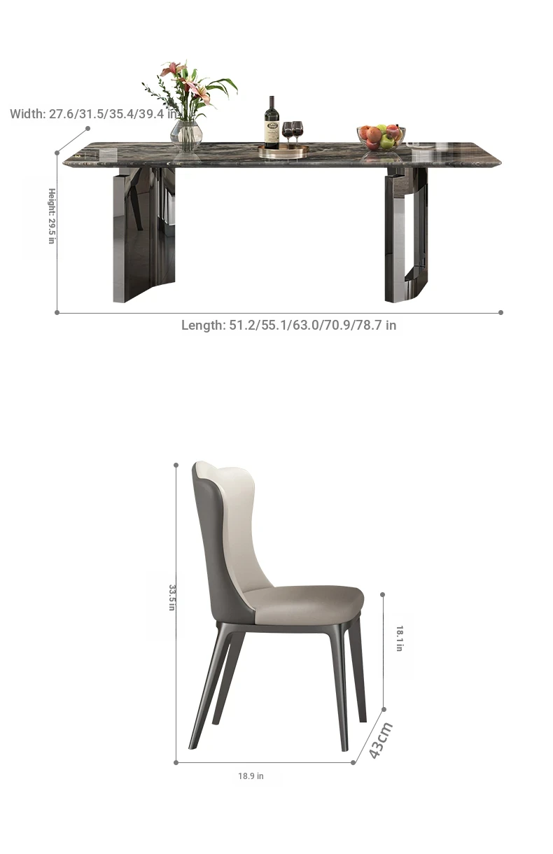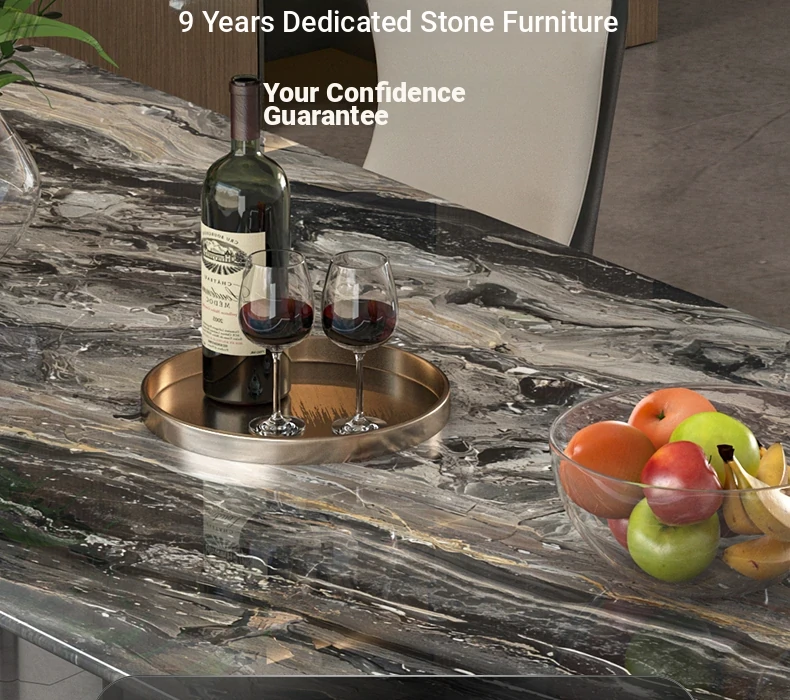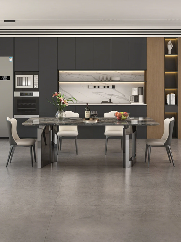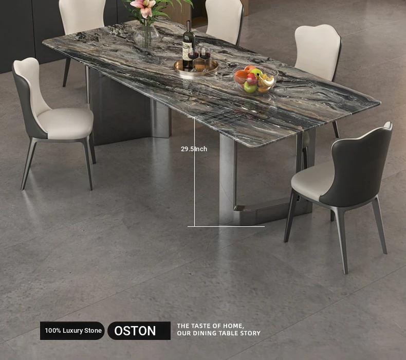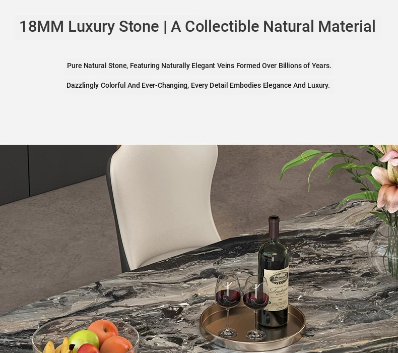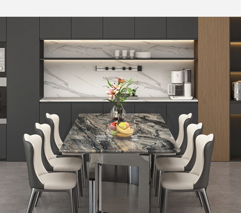 Imported Venetian Brown Natural Luxury Stone Dining Table - Elegant Italian Light Luxury Marble for High-End Villas, Perfect Dining Table and Chair Set