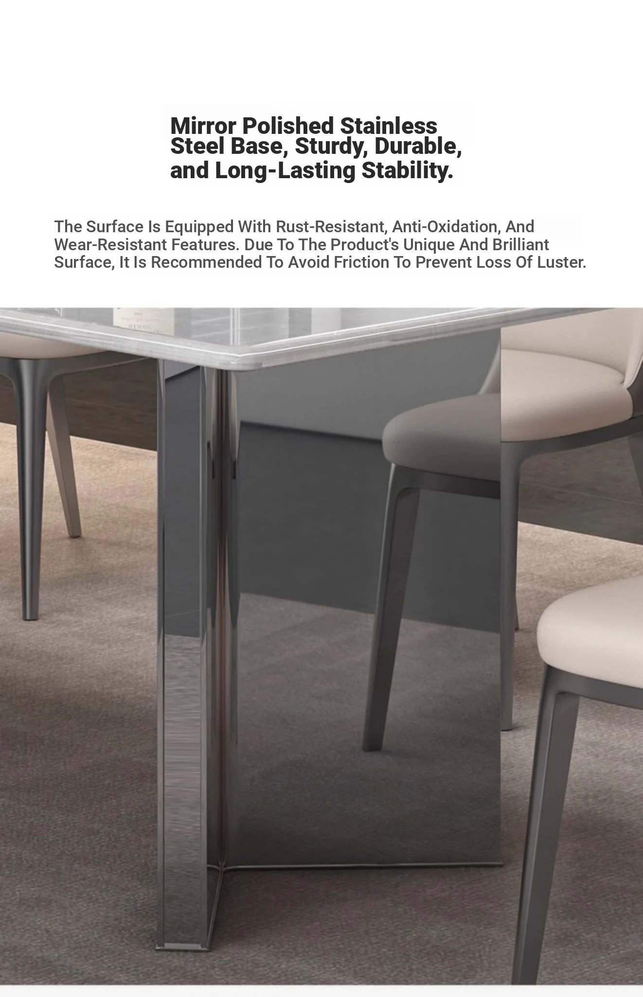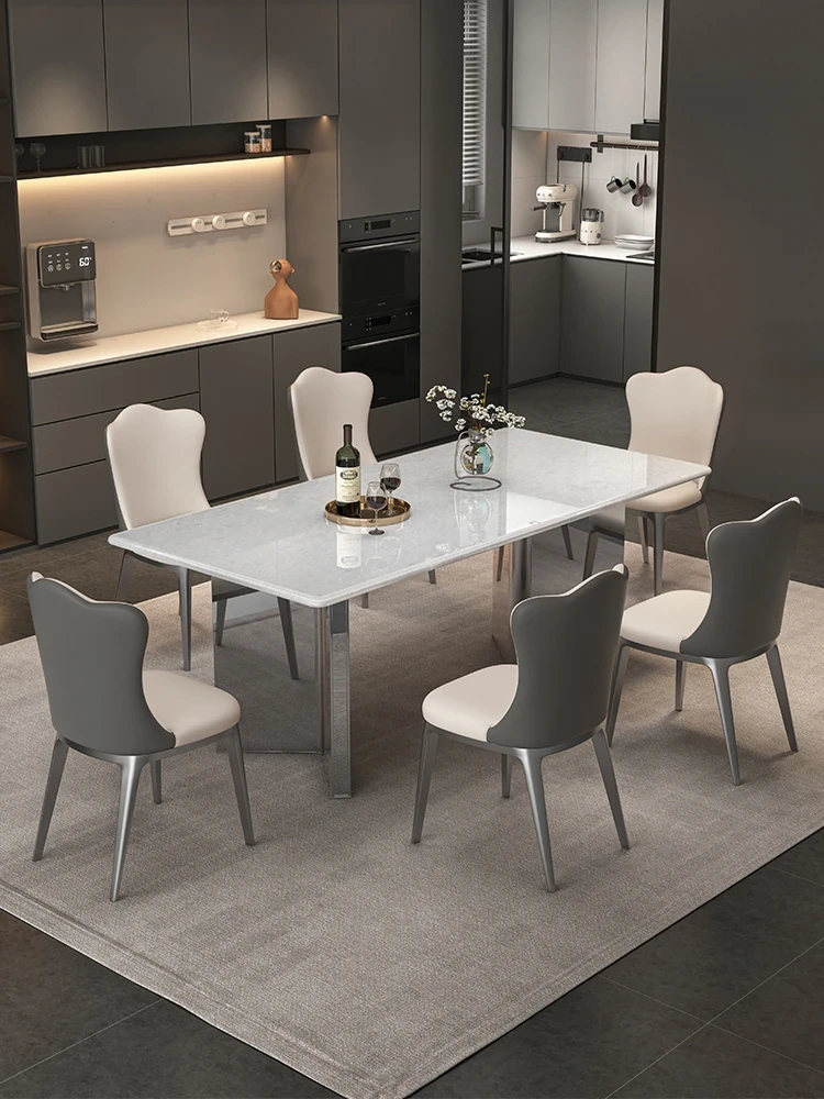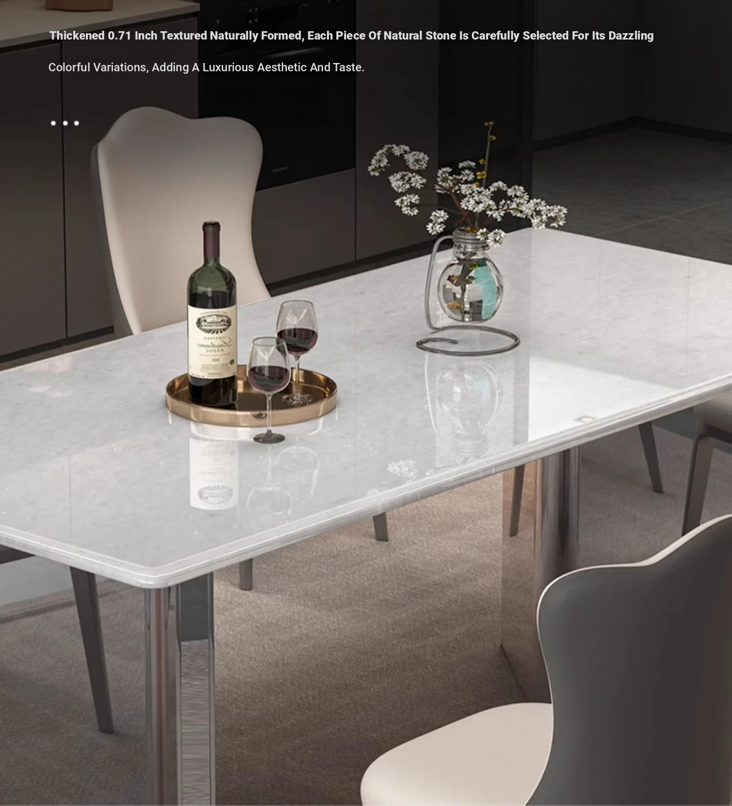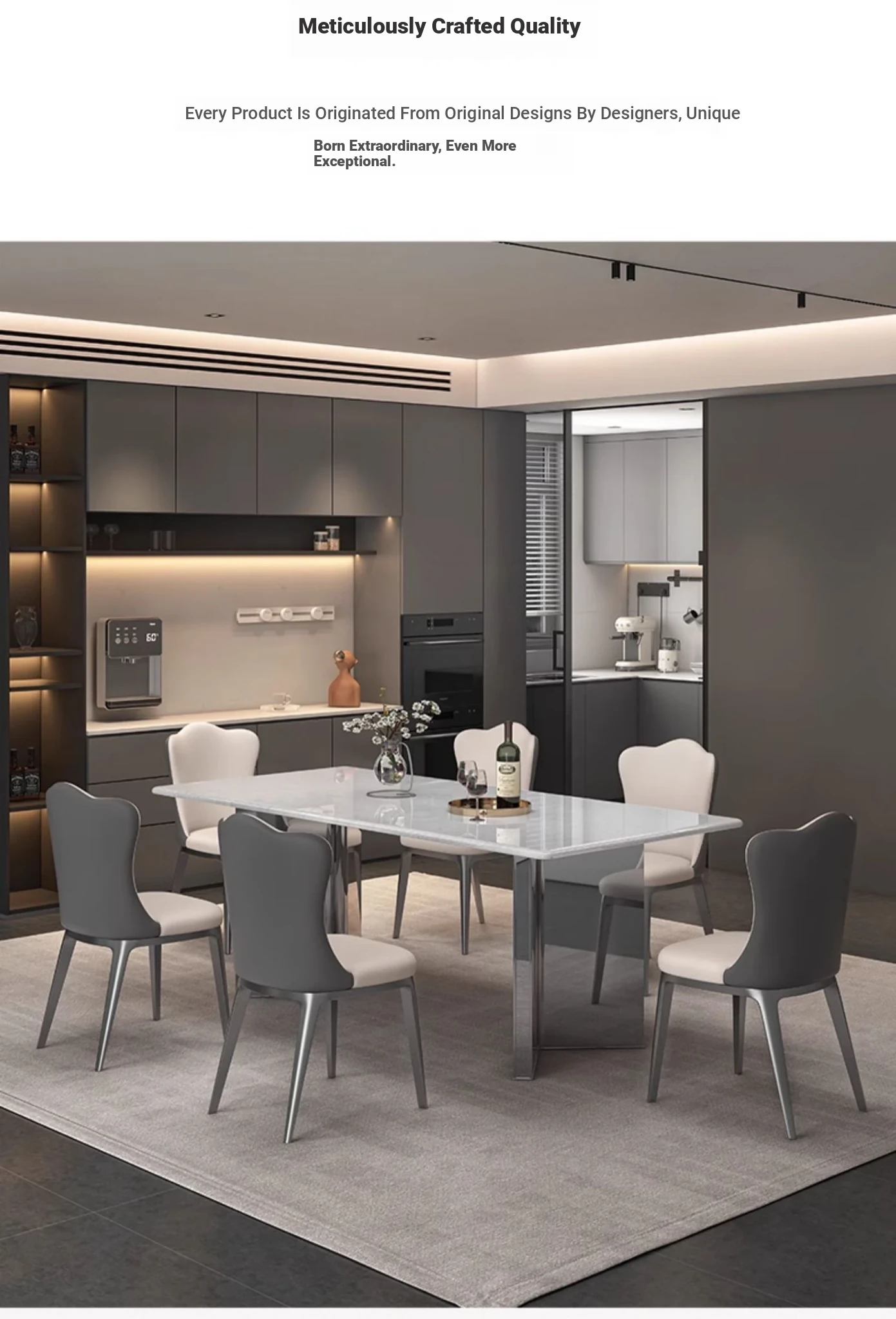 70.87in Import natural white Crystal Luxury stone dining table + Classy leather dining chair * 6