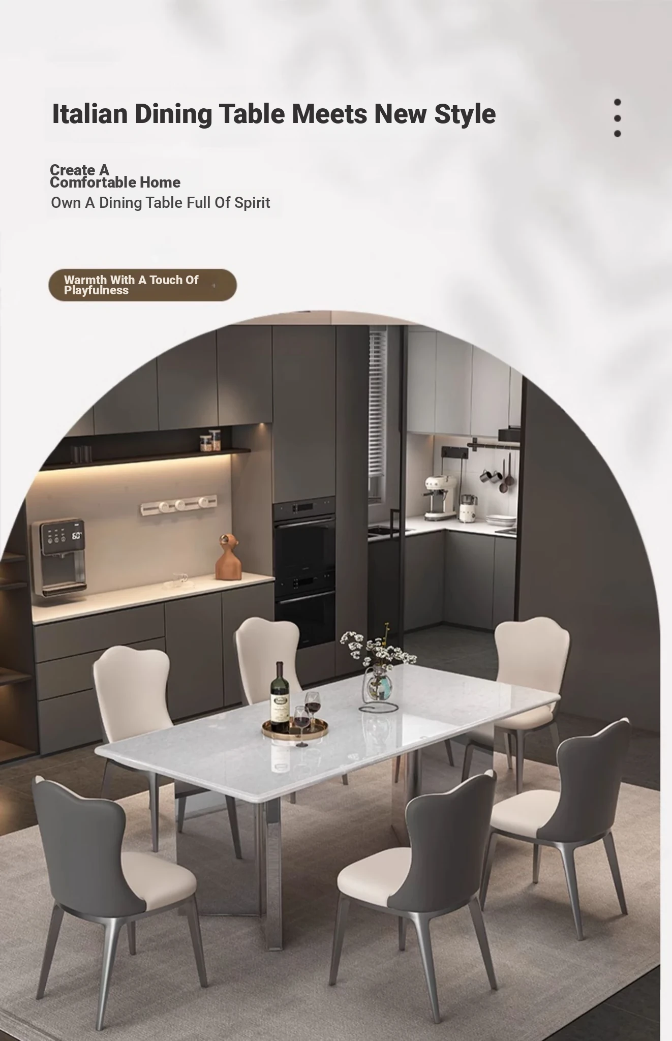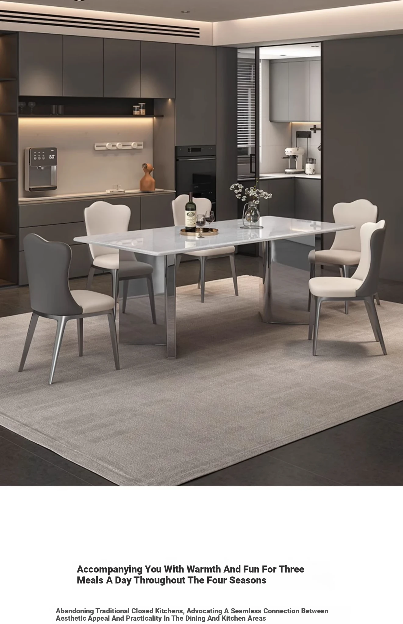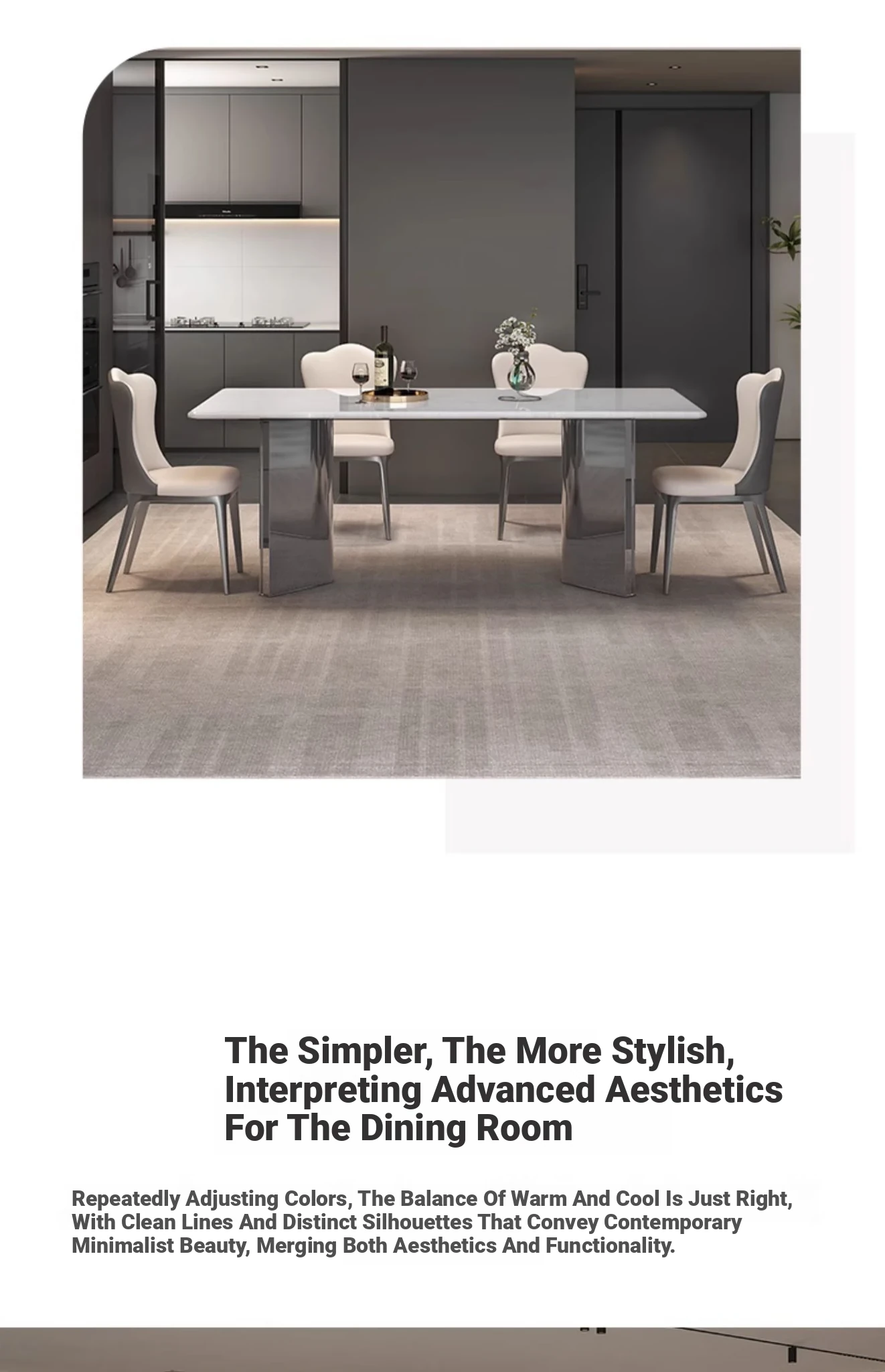70.87in Import natural white Crystal Luxury stone dining table + Classy leather dining chair * 6