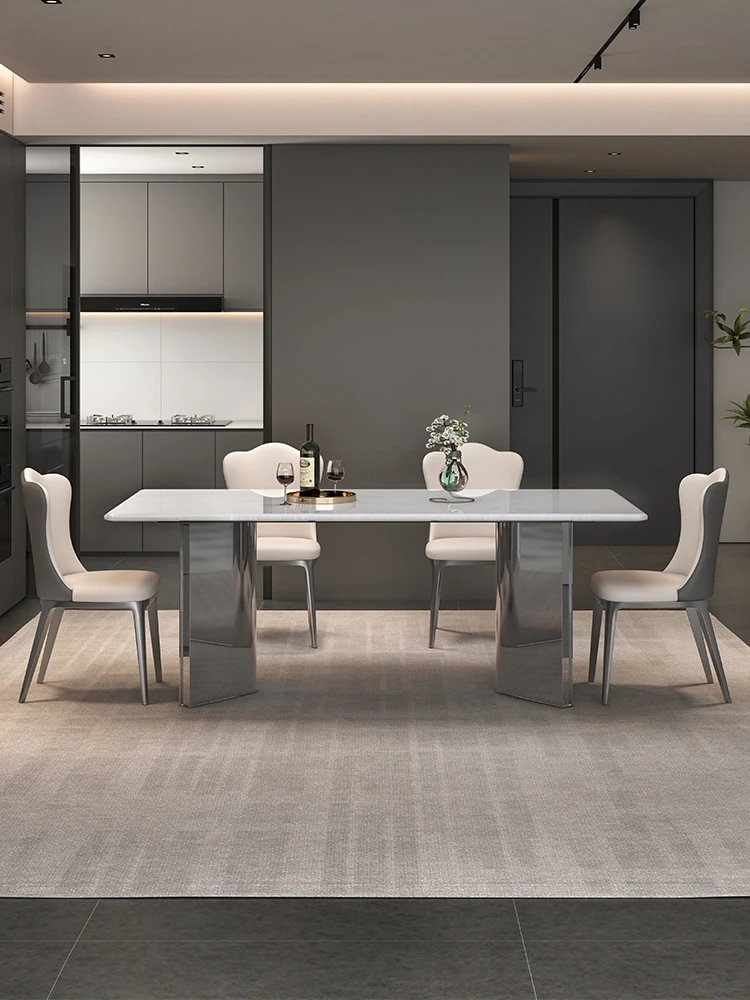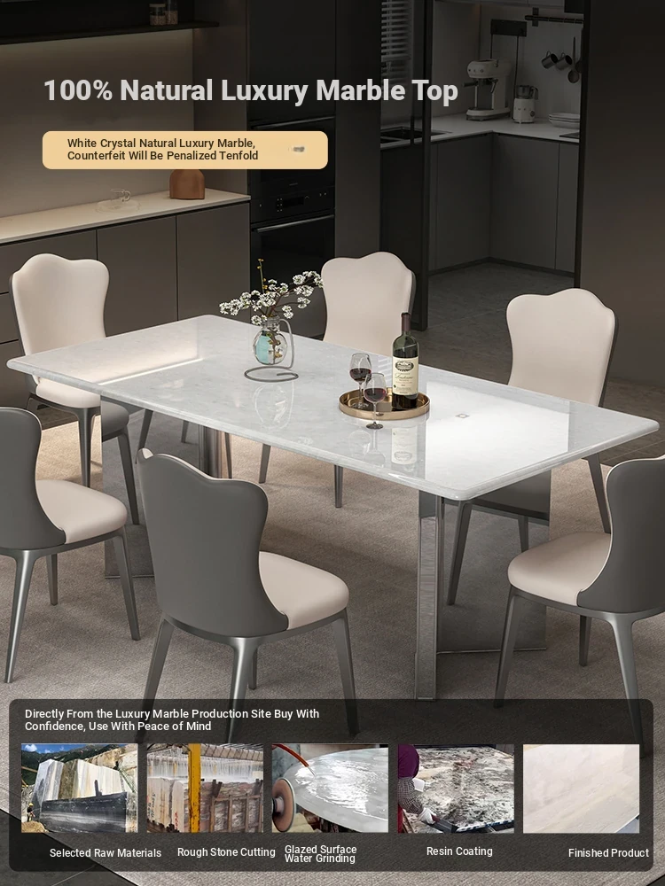 Imported White Crystal Luxury Stone Dining Table - Modern Rectangular Design for Home, Perfect for Villas and Living Rooms, Crafted from Natural Marble for an Elegant Dining Experience.