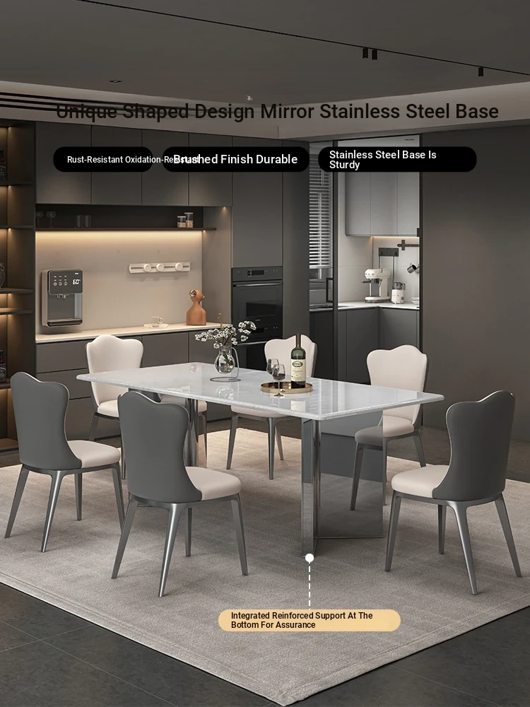 78.74in Import natural white Crystal Luxury stone dining table + Classy leather dining chair * 6