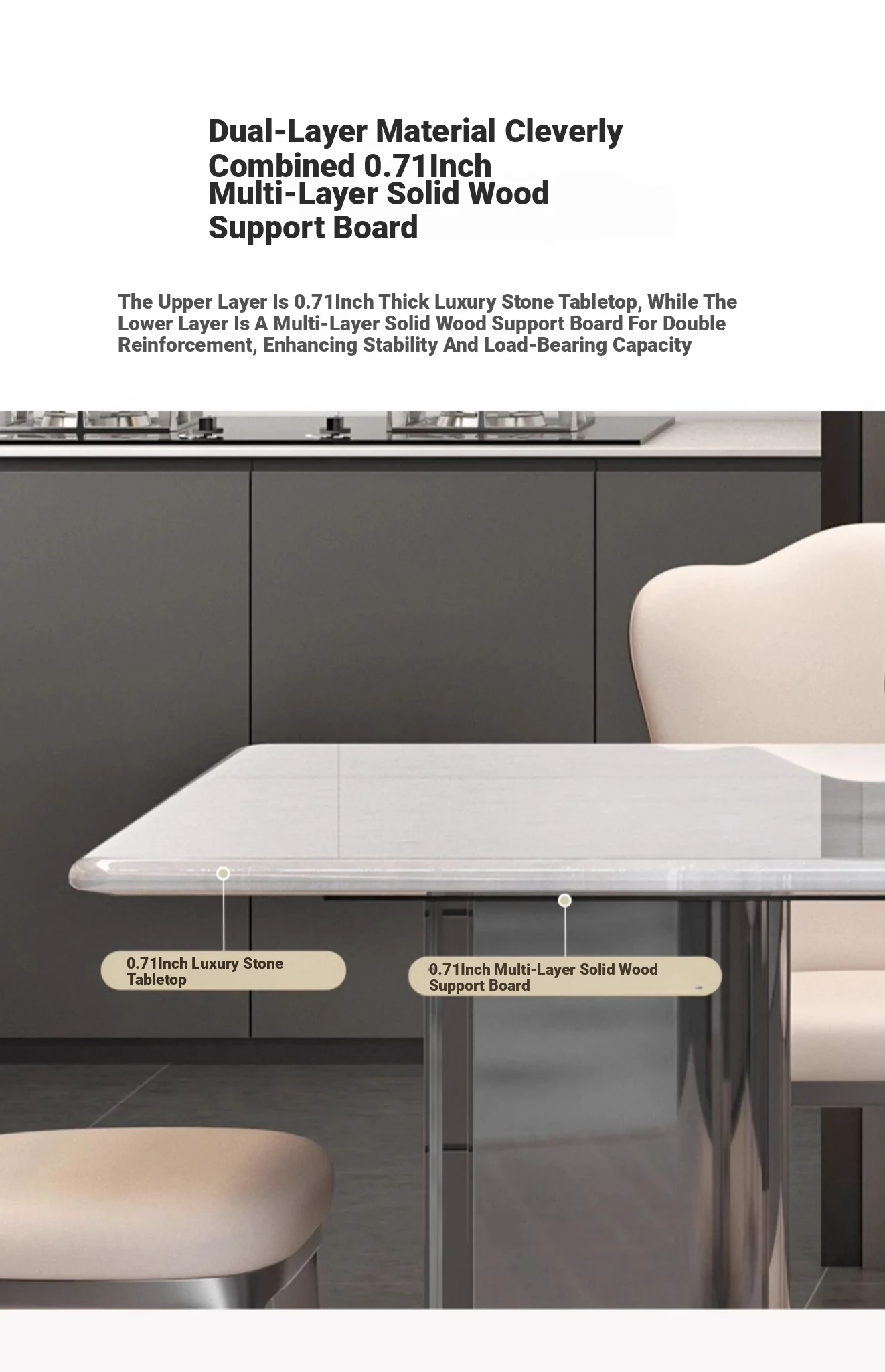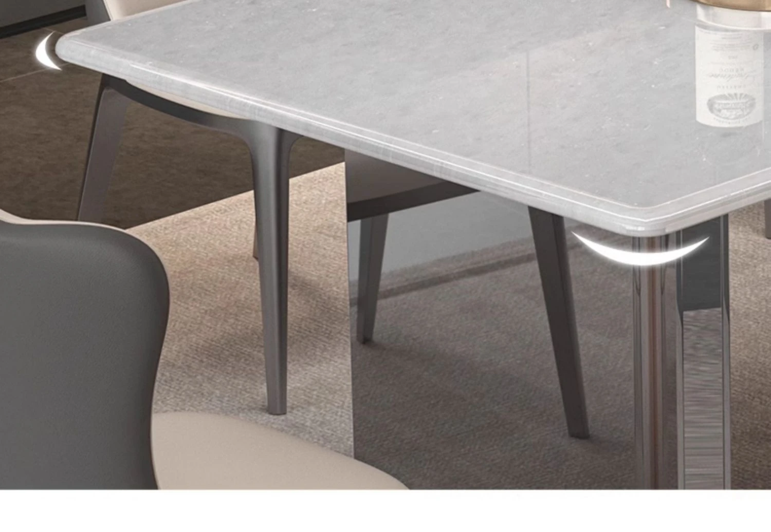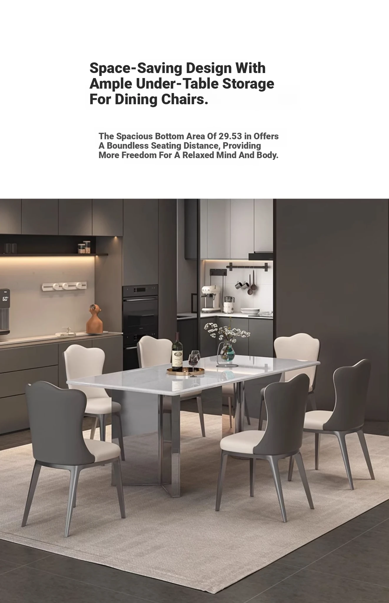 55.12in Import natural white Crystal Luxury stone dining table + Classy leather dining chair * 6