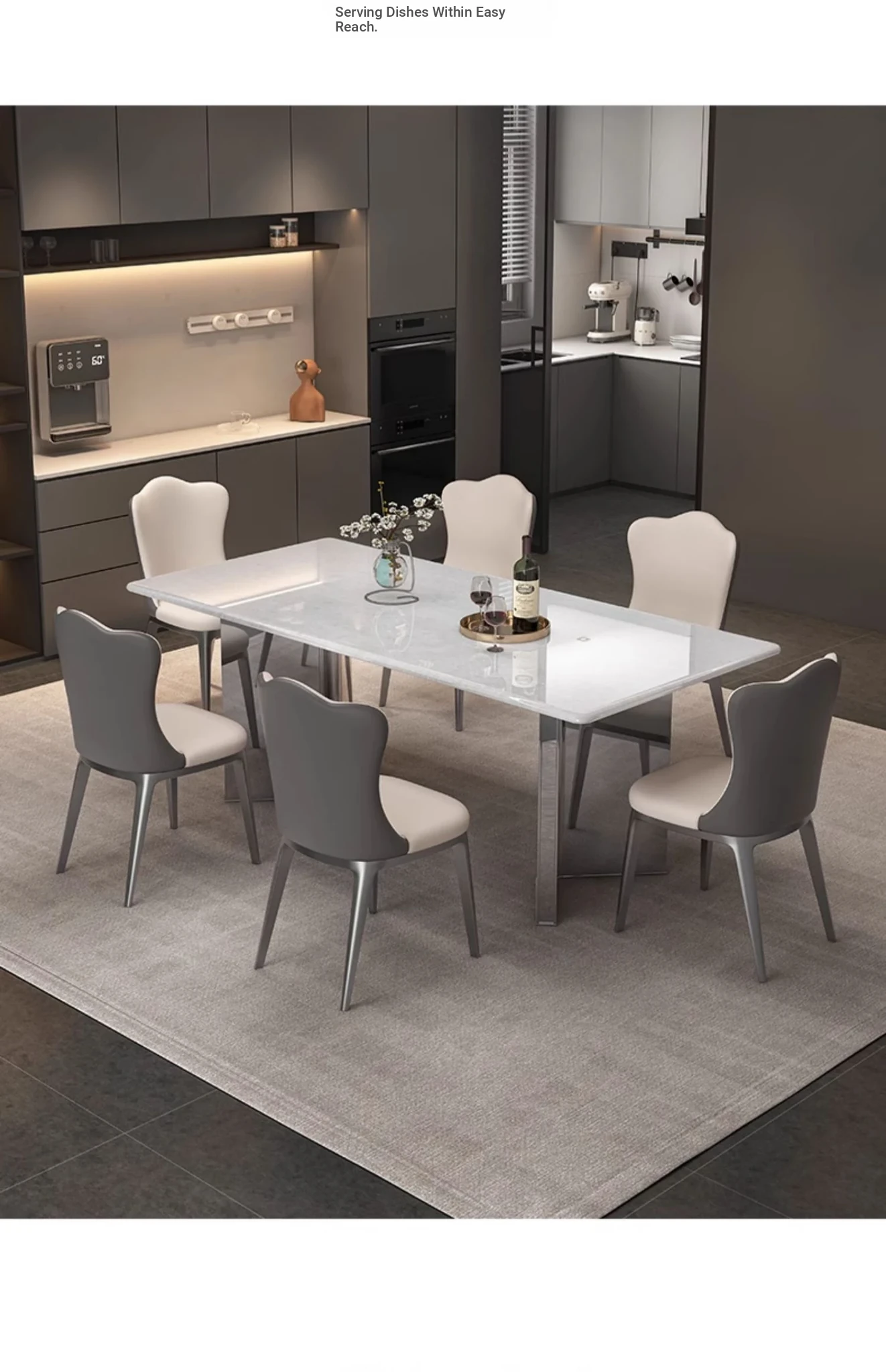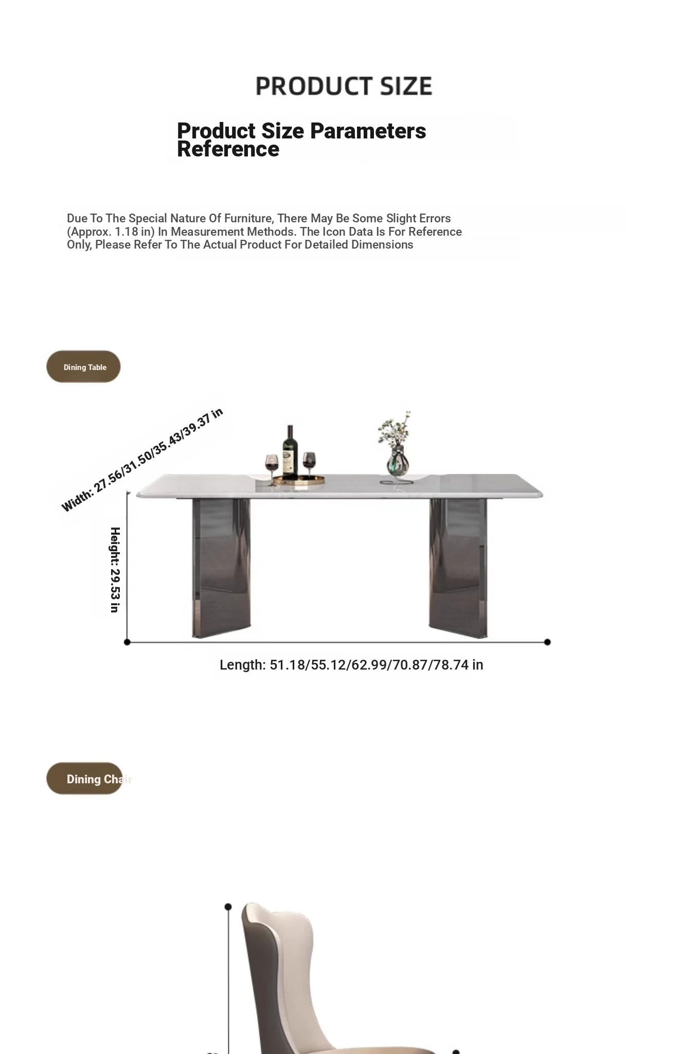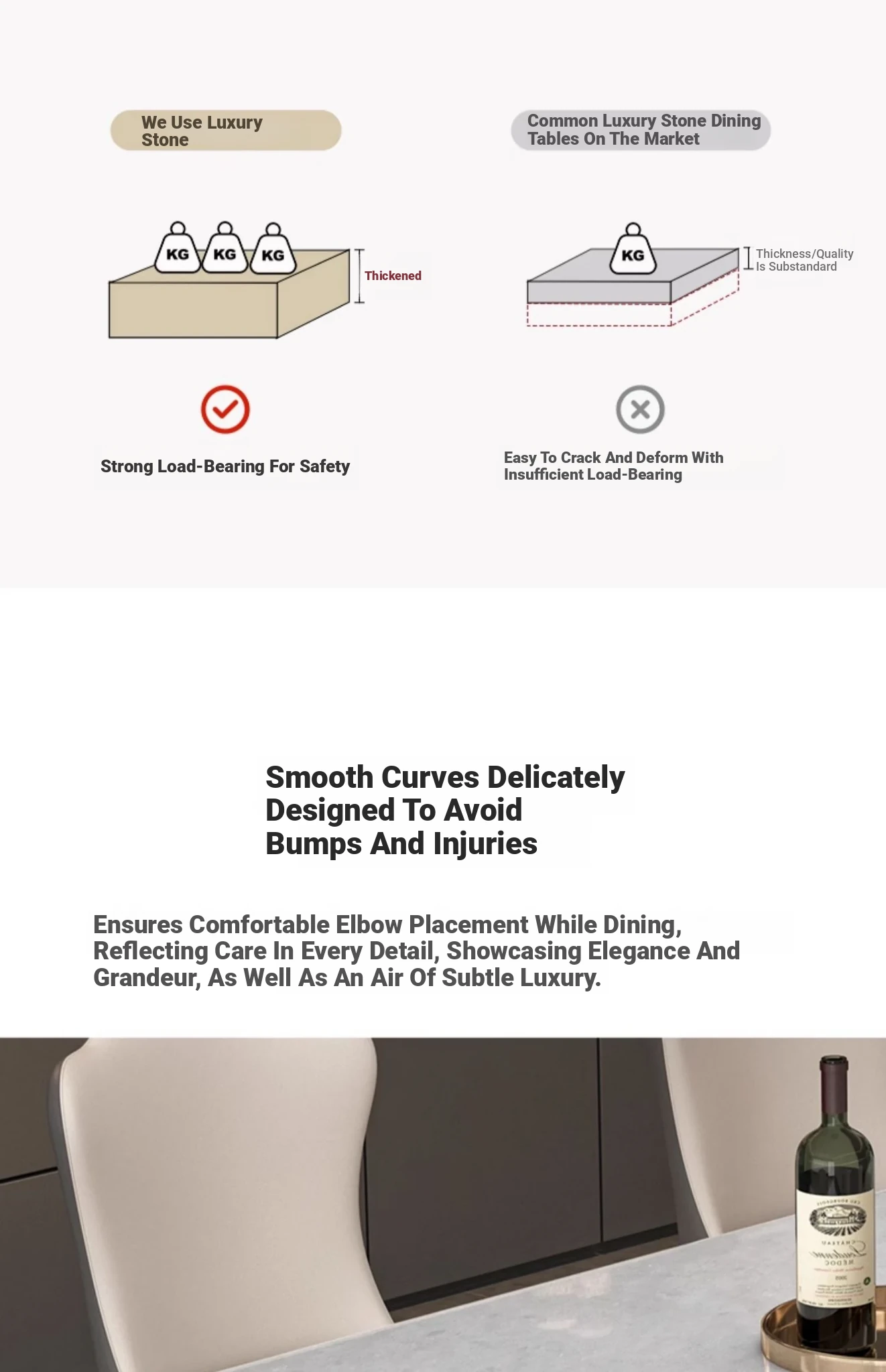 55.12in Import natural white Crystal Luxury stone dining table + Classy leather dining chair * 6