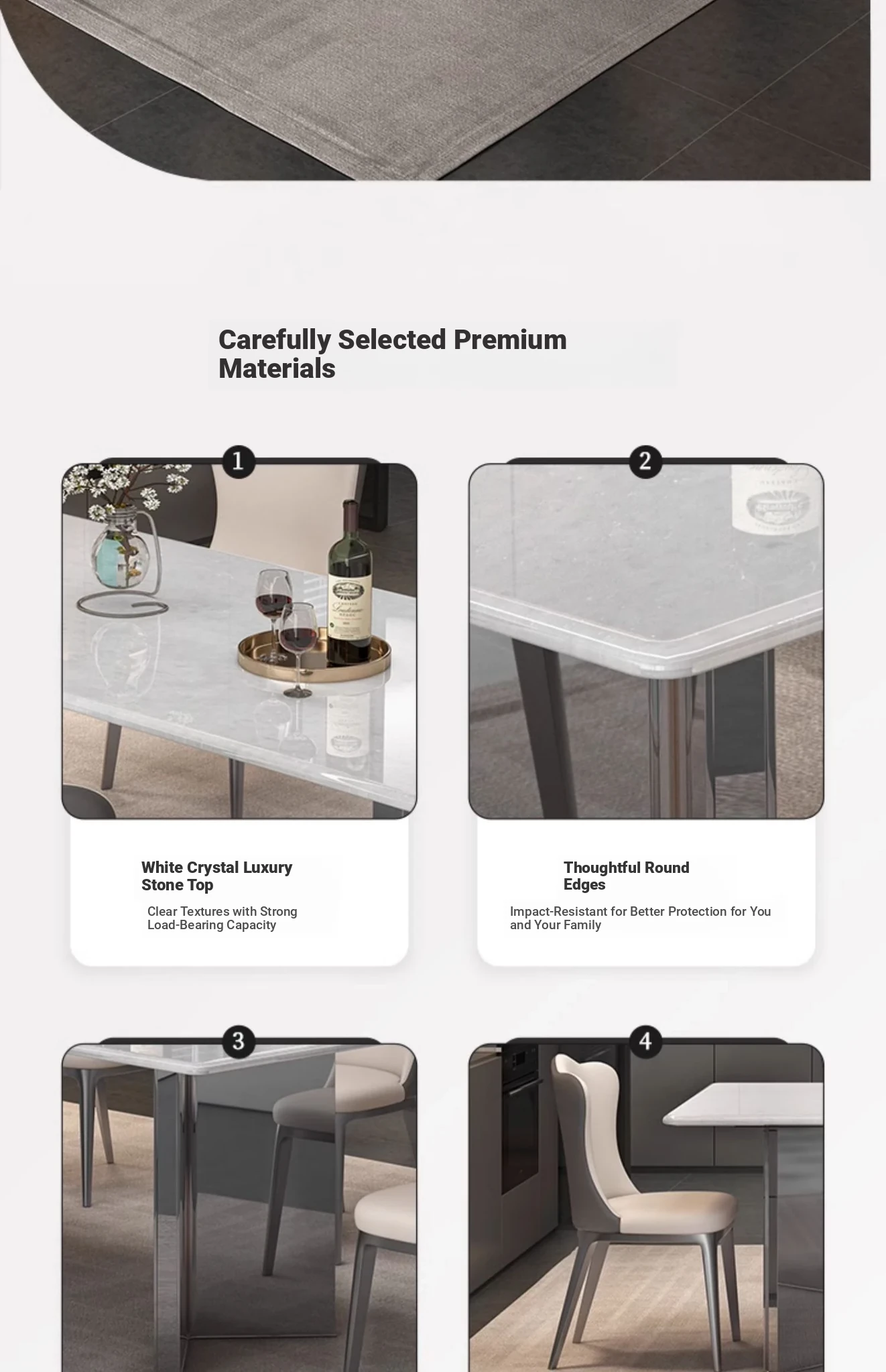 55.12in Import natural white Crystal Luxury stone dining table + Classy leather dining chair * 4
