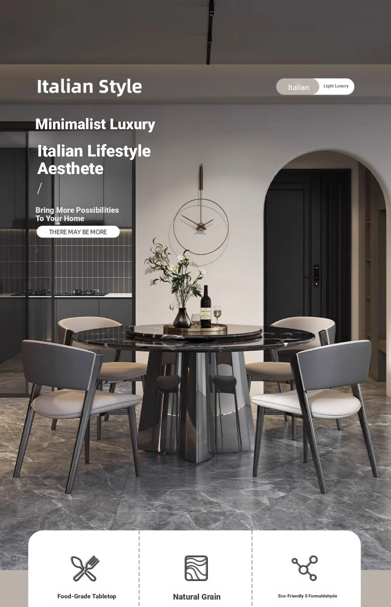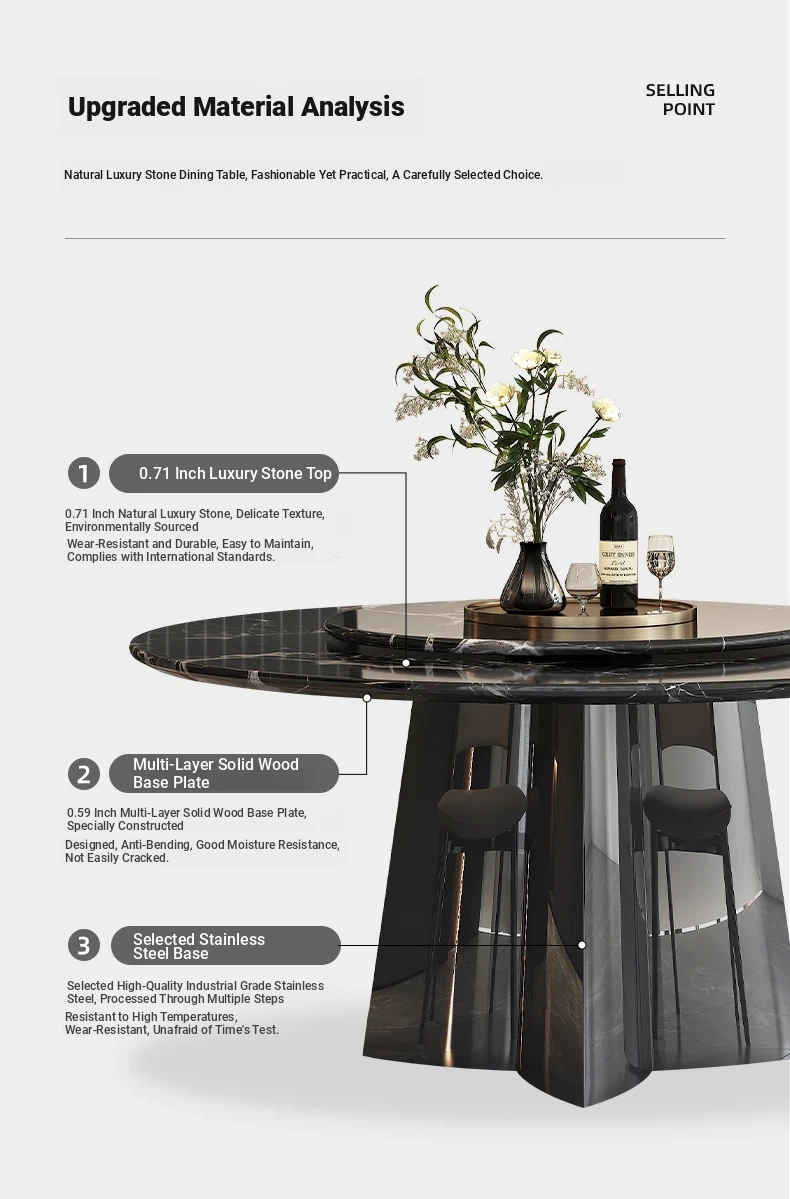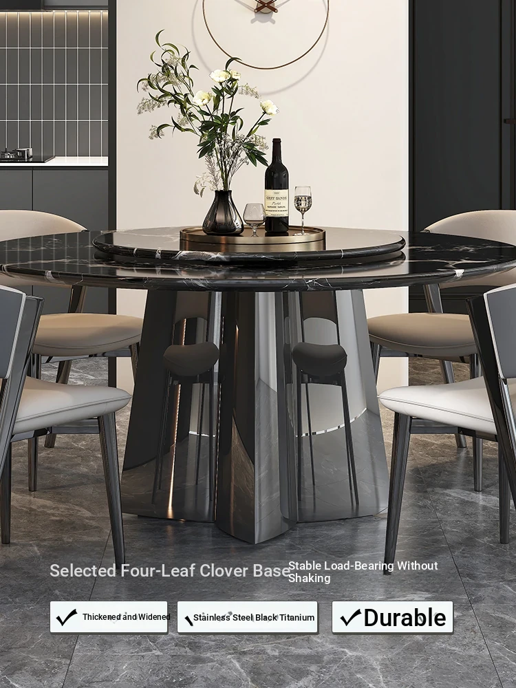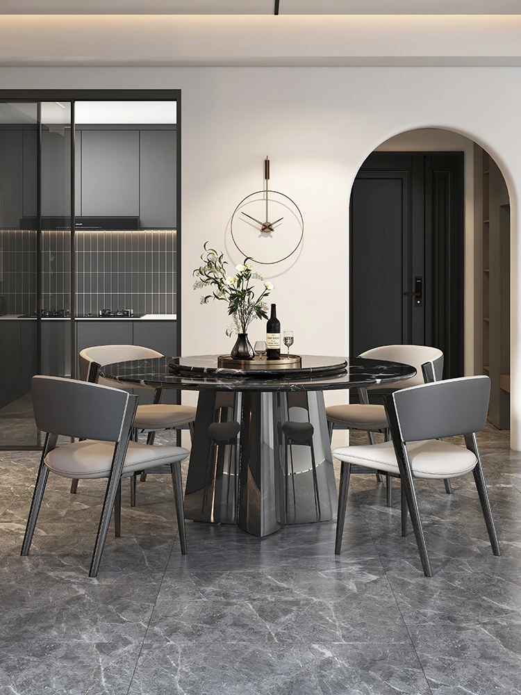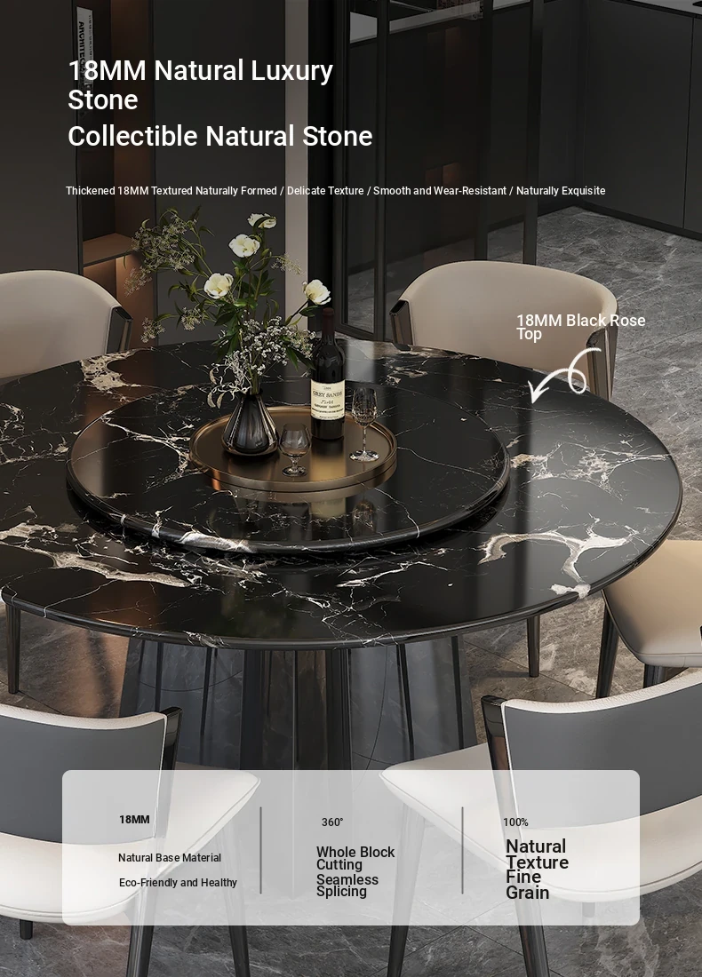 Italian Luxury Imported Black Rose Natural Stone Round Dining Table Set – Elegant Home Décor with Stylish Chairs for a Sophisticated Dining Experience