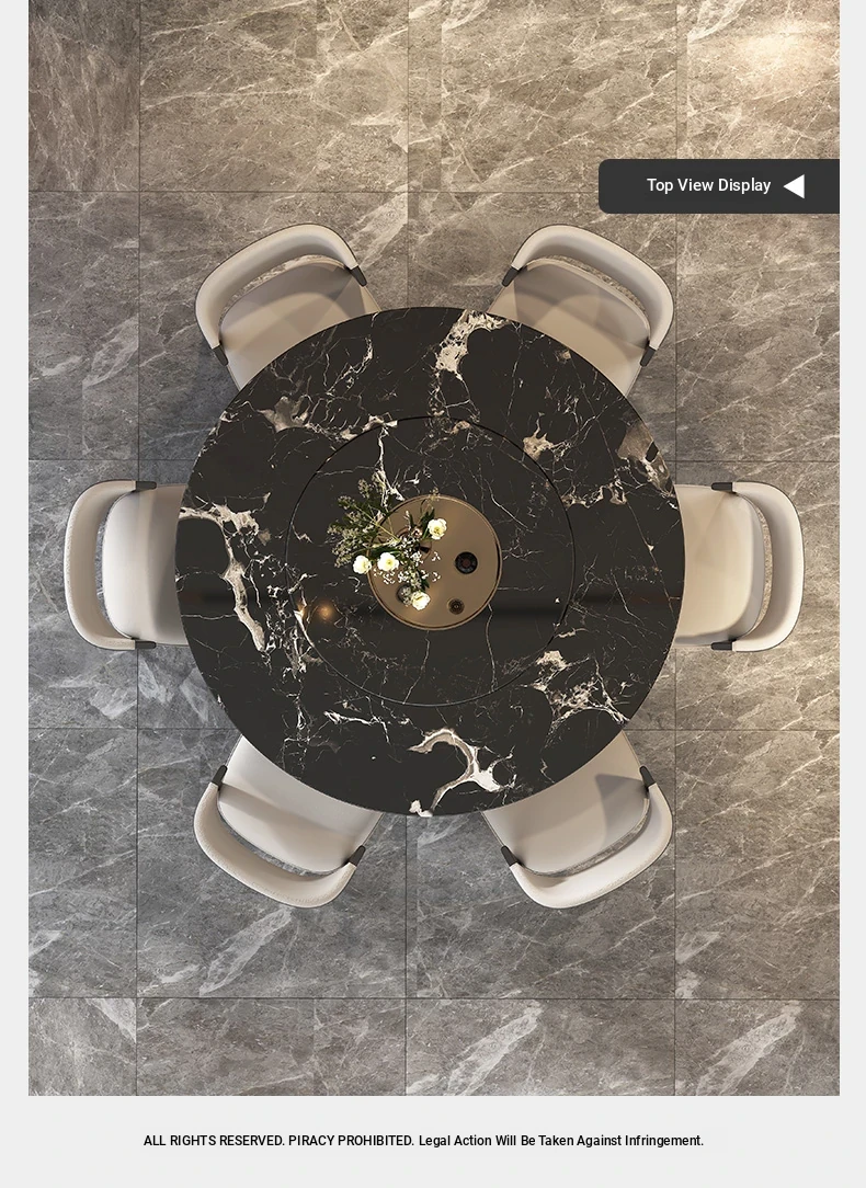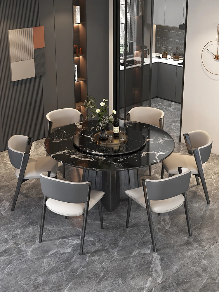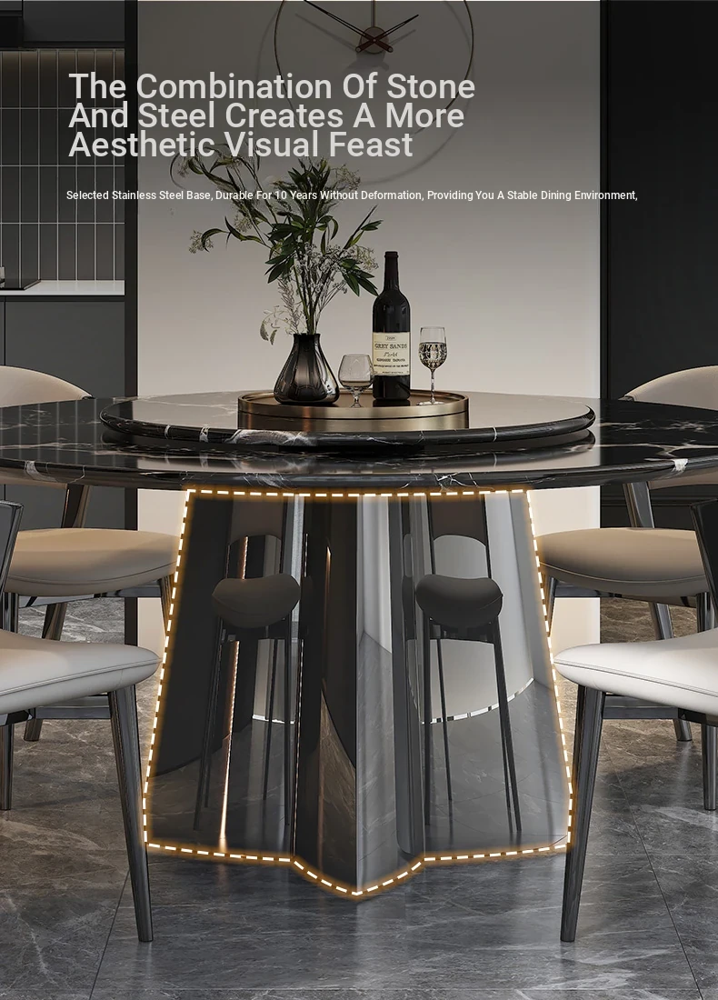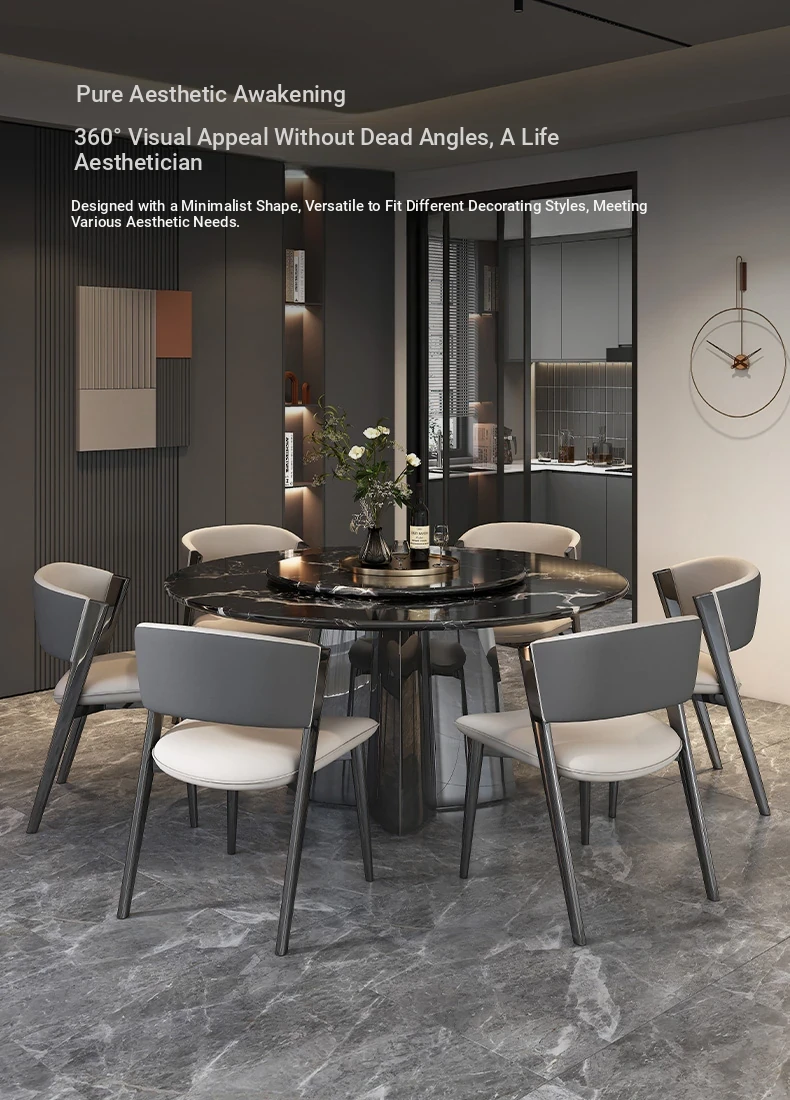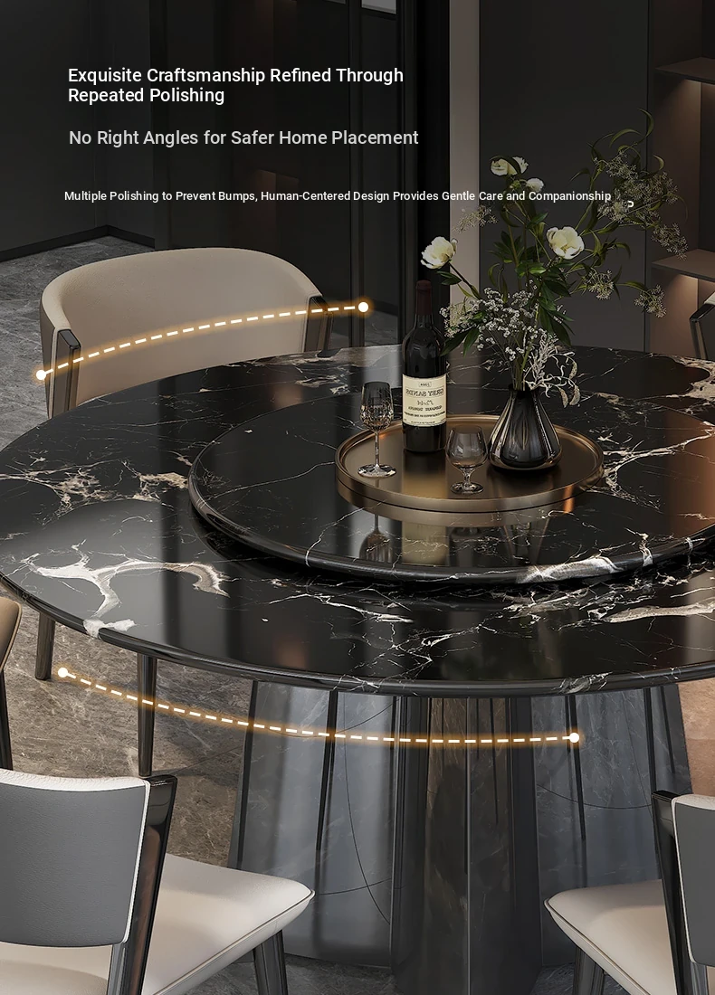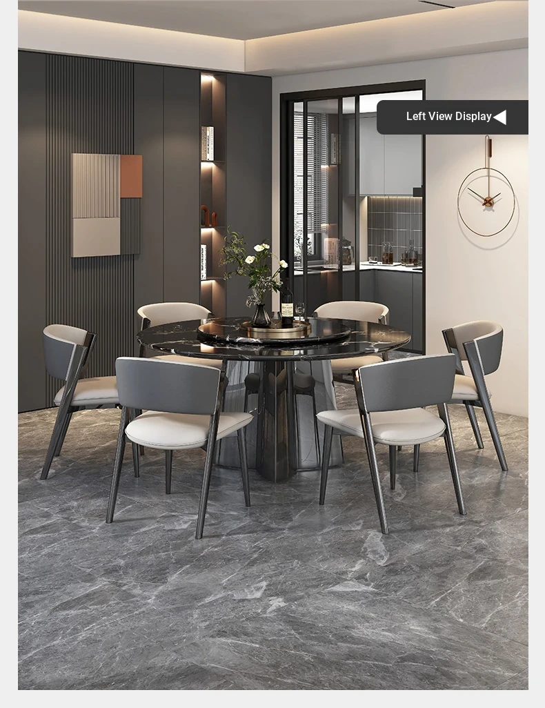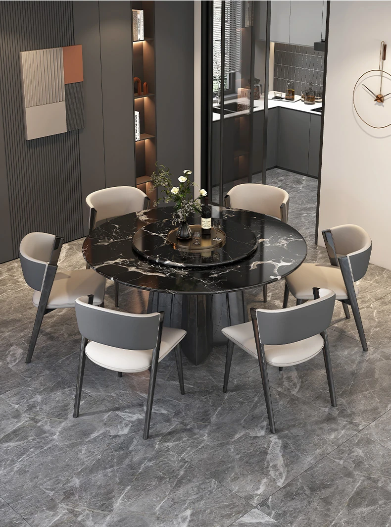 51.18in natural luxury stone Black Rose dining table +27.56in turntable + CC cat scratch leather dining chair * 6