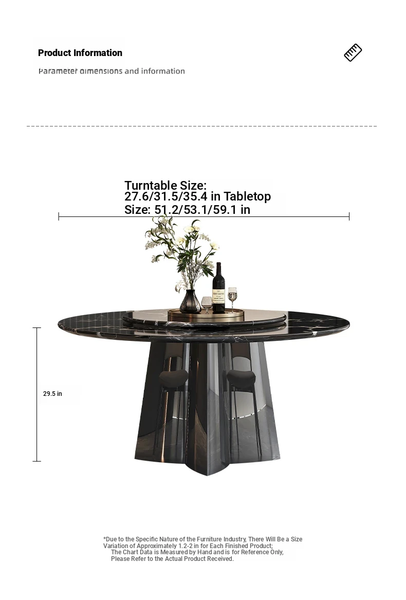 51.18in natural luxury stone Black Rose table +27.56in turntable