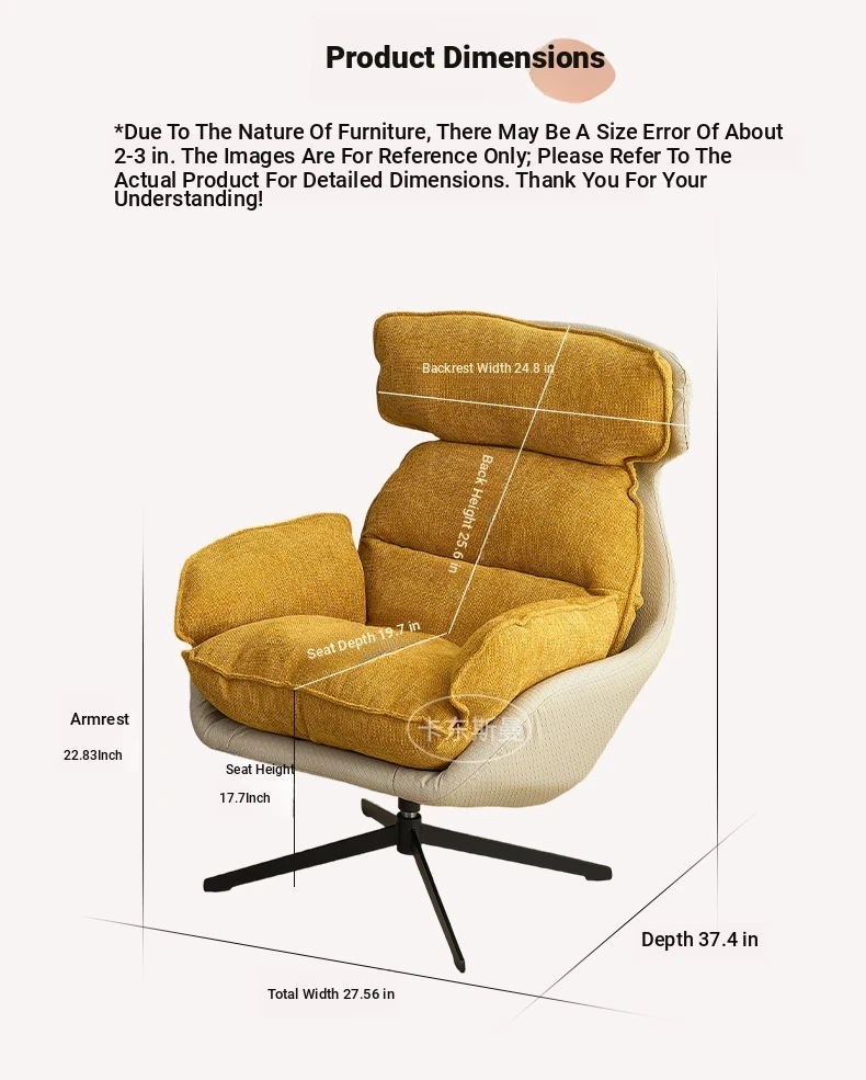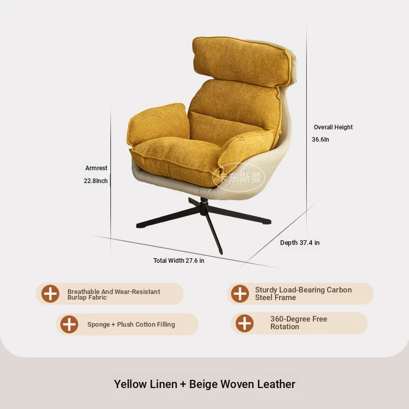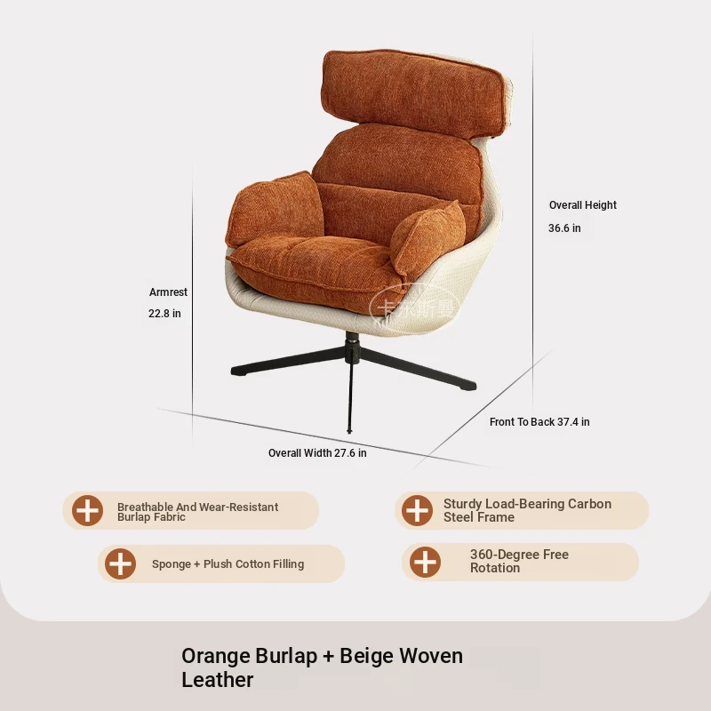 Italian Style Luxury Single Sofa Chair - Rotatable, Cozy Lounge Chair for Living Room, Balcony, and Study - Perfect for Relaxation and Reading