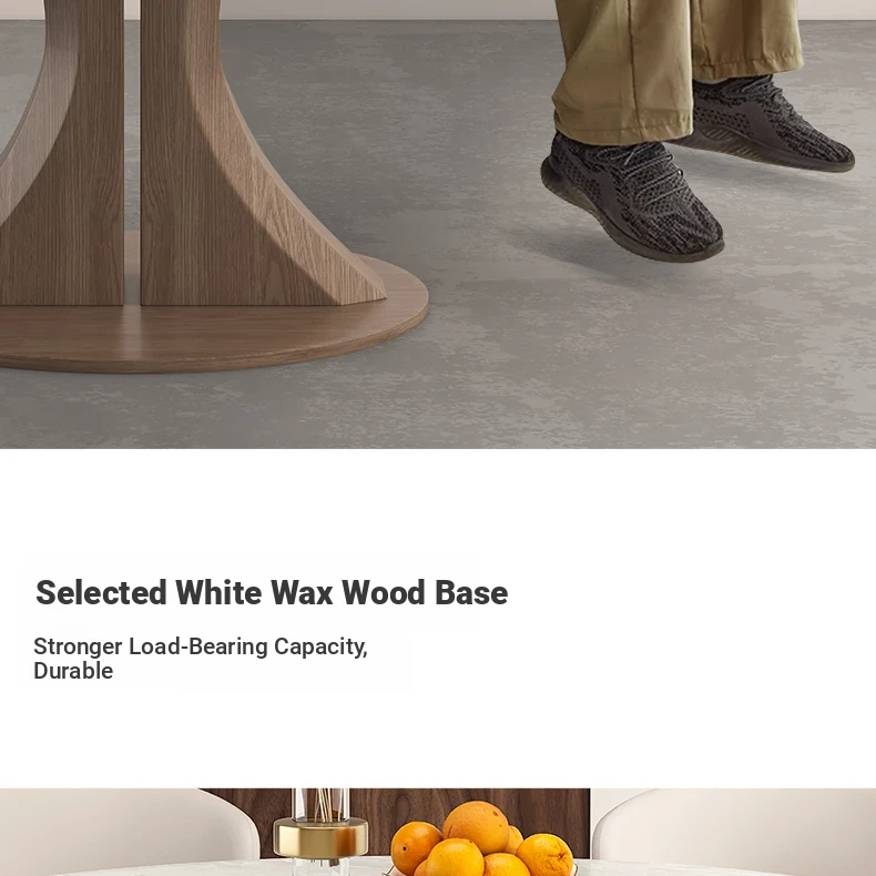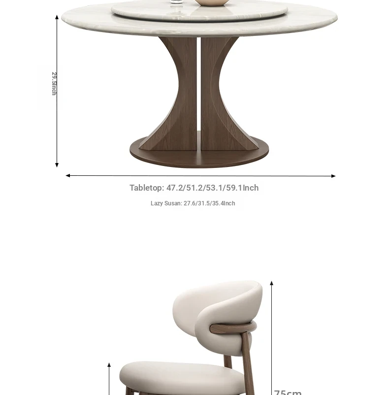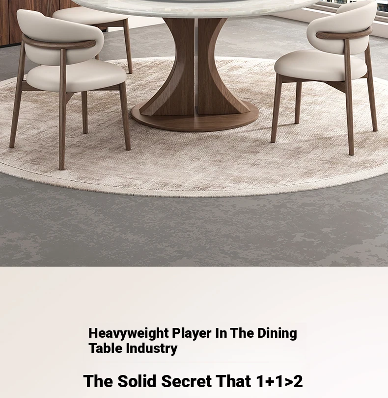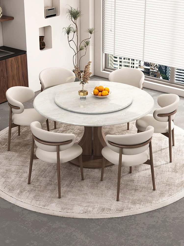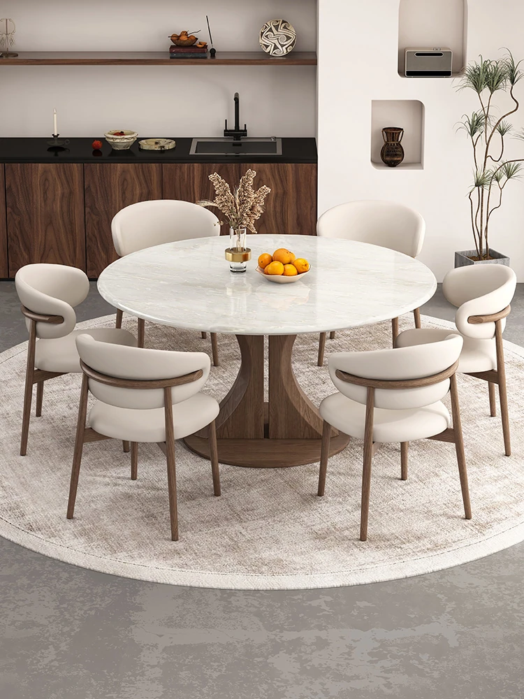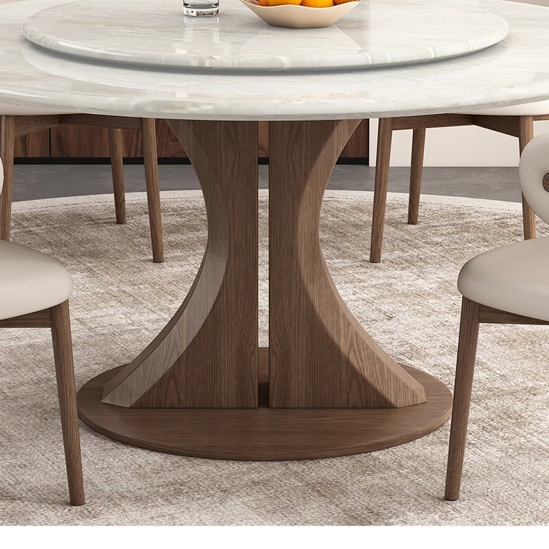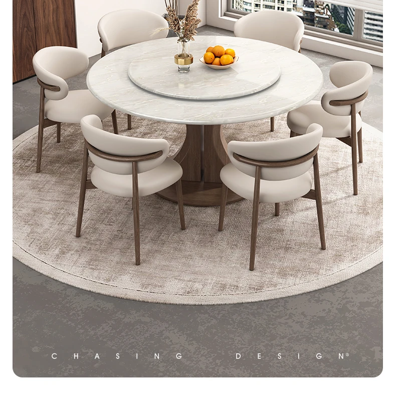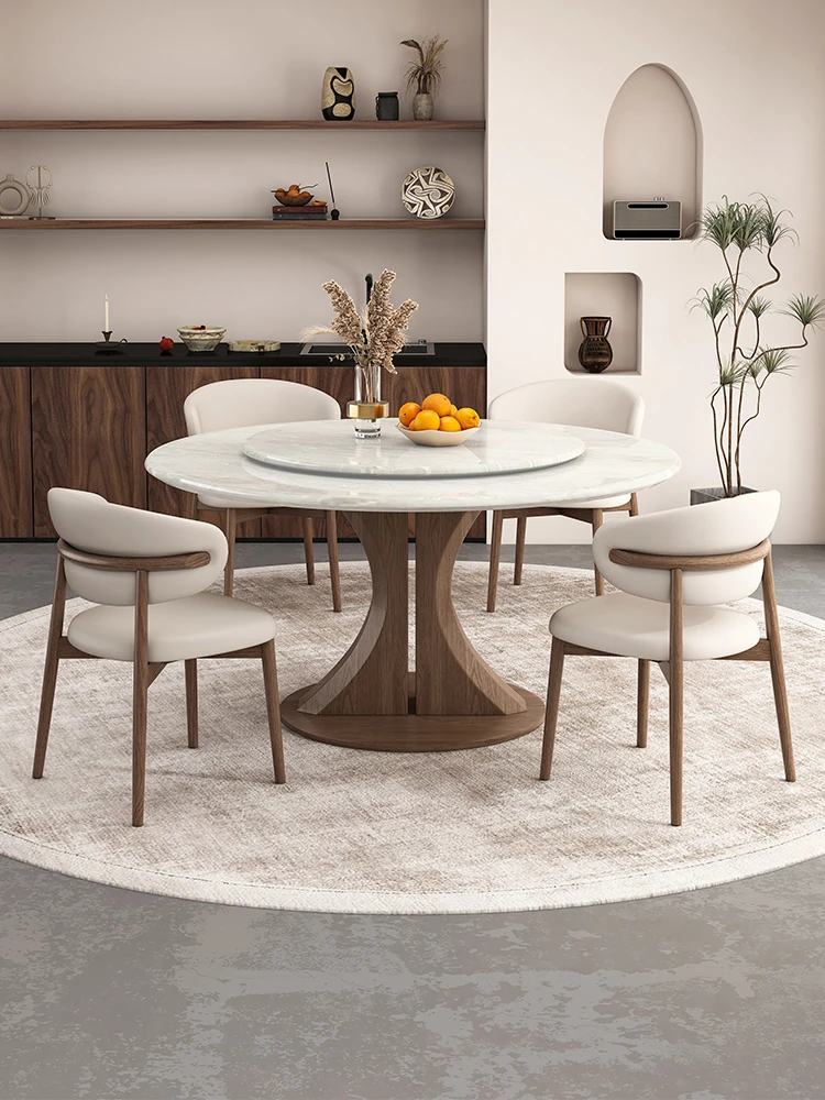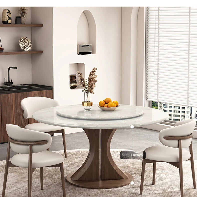 Kali Ice Jade Luxury Solid Wood Dining Table with Natural Imported Marble - Elegant Round Table Set for High-End Dining Experience at Home