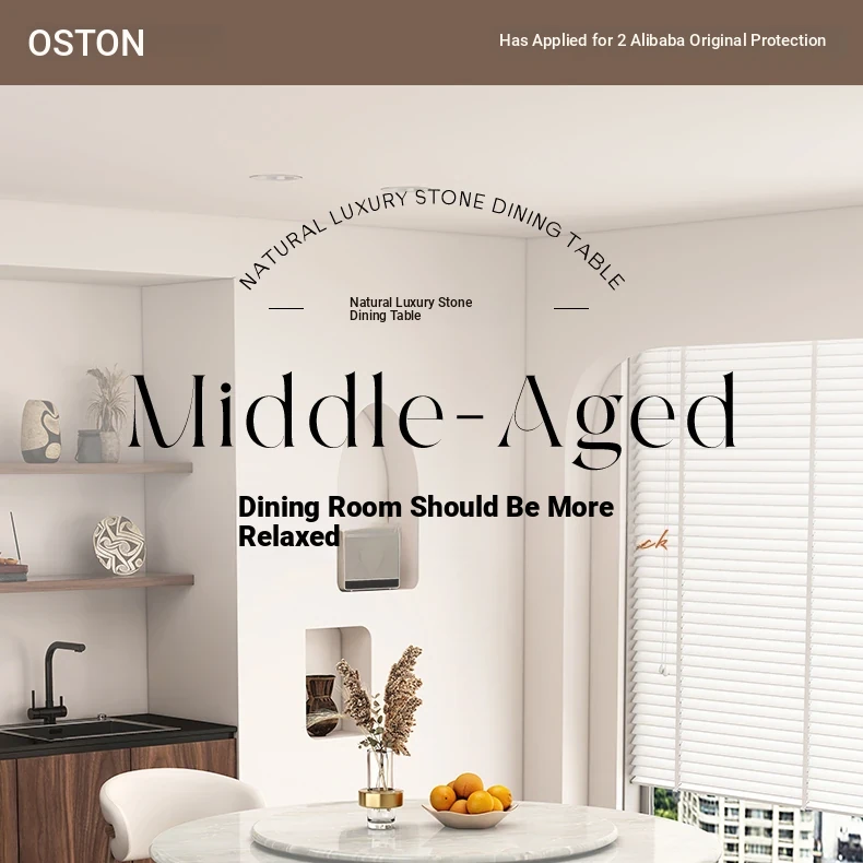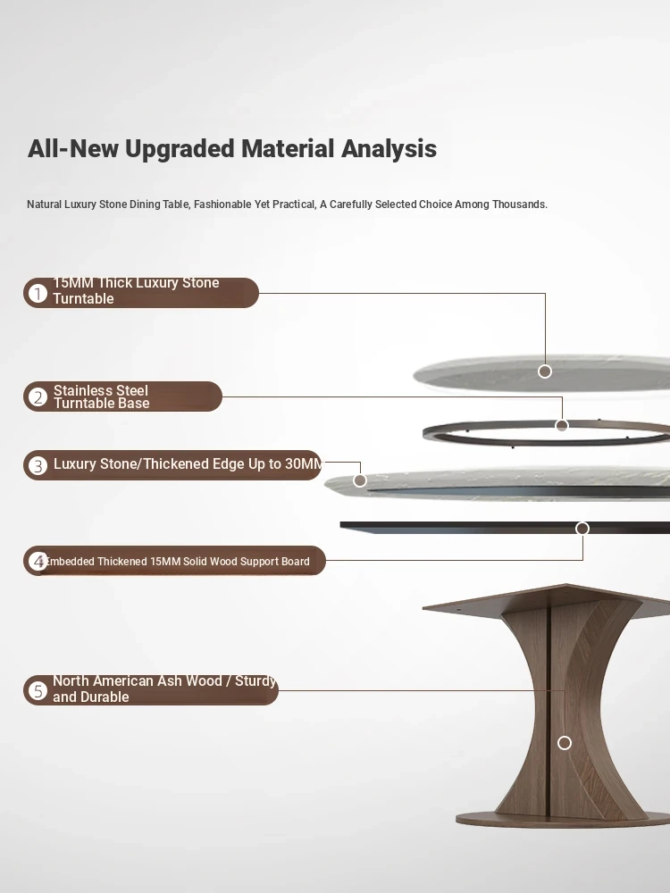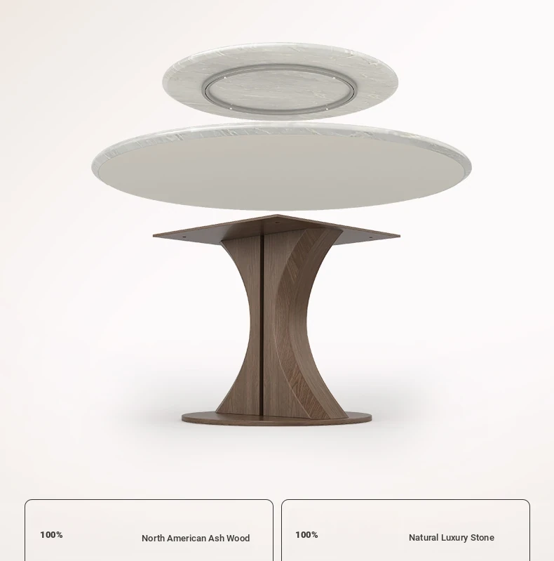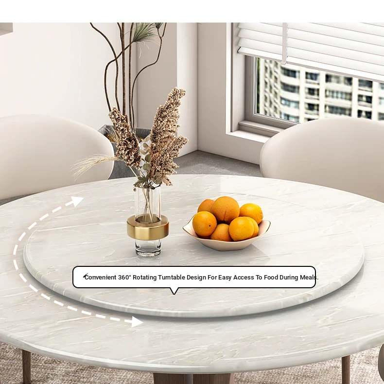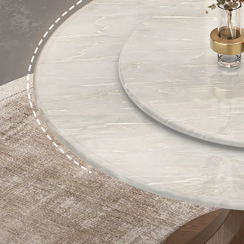 Natural luxury stone dining table + turntable [Import luxury stone + ash base]]