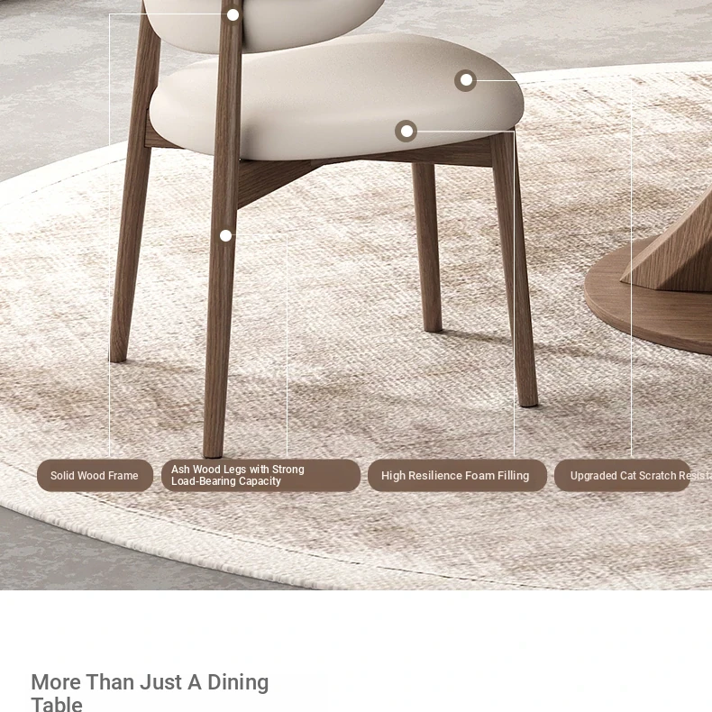 Natural luxury stone dining table + turntable [Import luxury stone + ash wood base] + cat scratching skin solid wood dining chair * 4