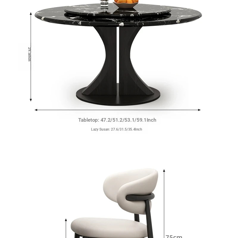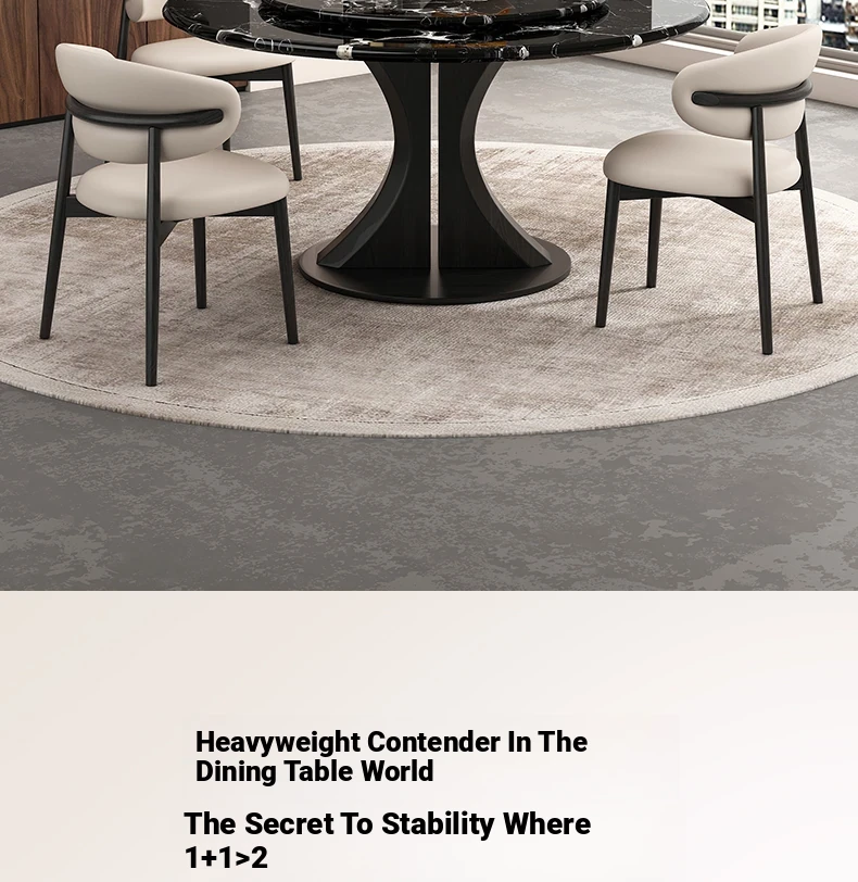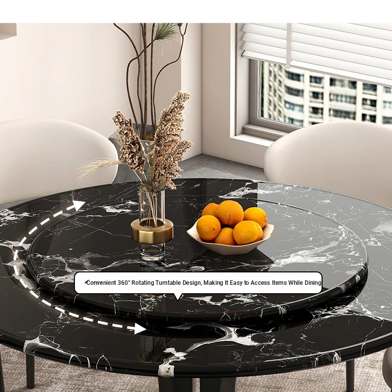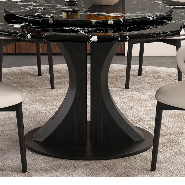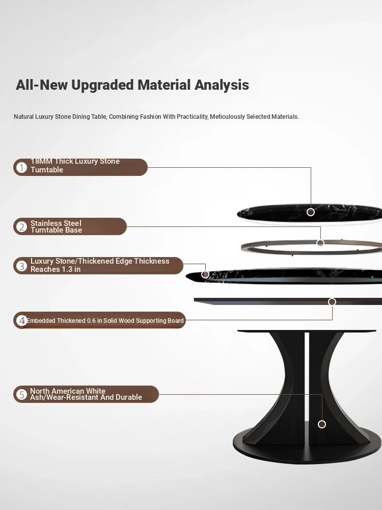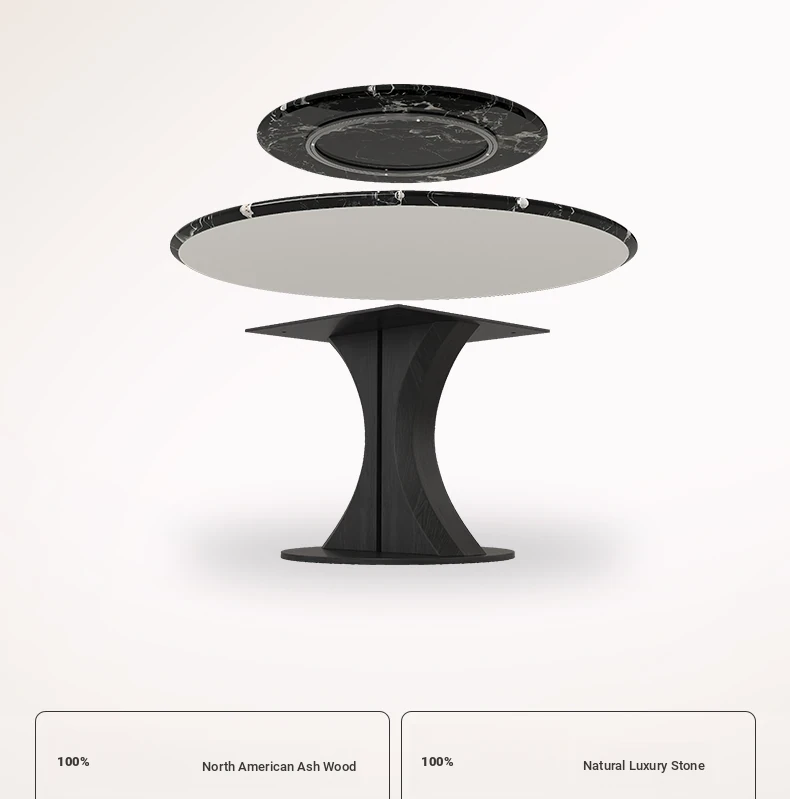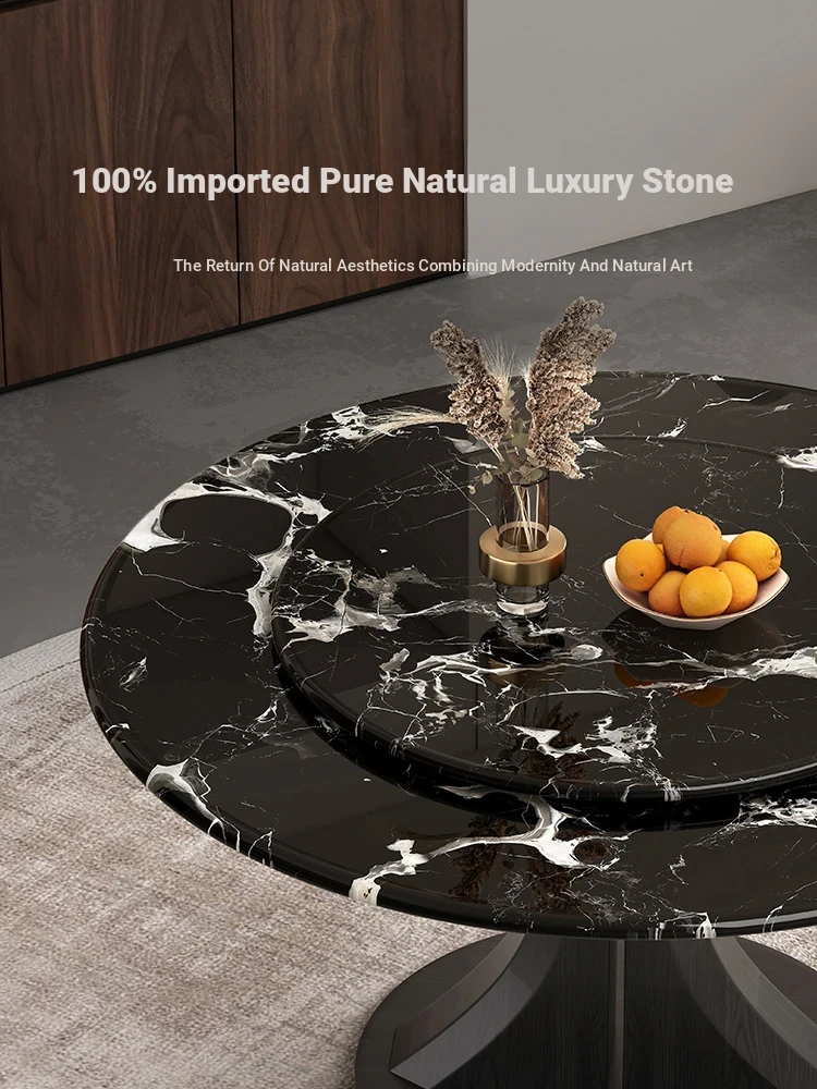 Natural luxury stone dining table + luxury stone turntable [Import luxury stone + ash base]]