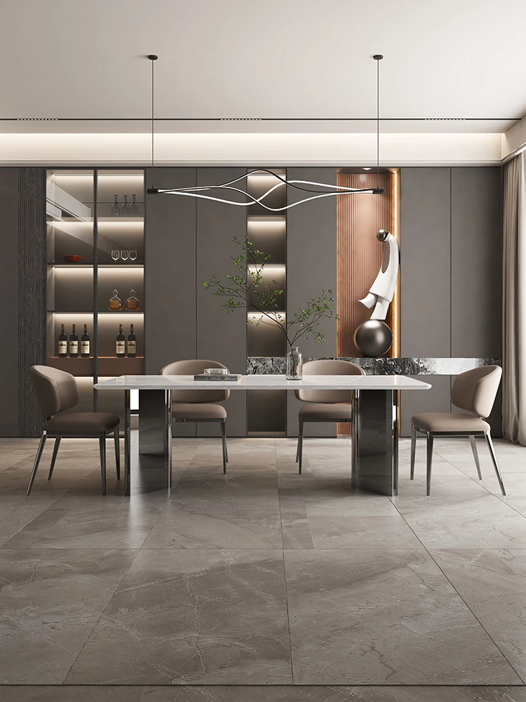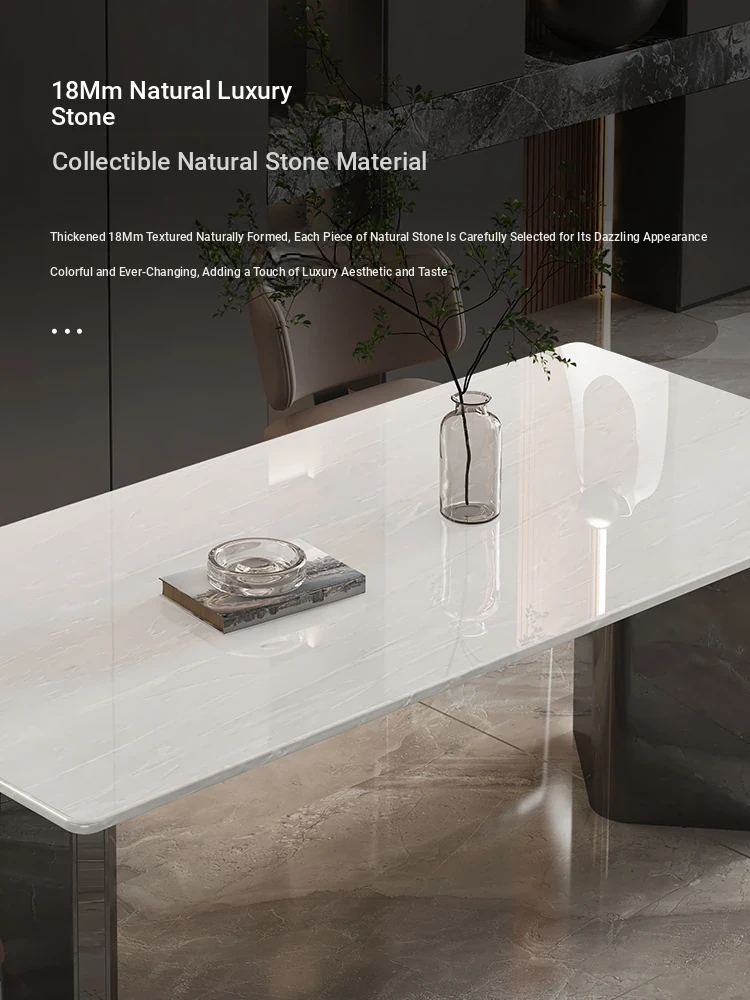 Luxury Italian Style Natural Marble Dining Table Set - Premium Imported Karri Ice Jade Stone, Elegant Rectangular Design for Home Use, Perfect for Upscale Dining Experiences