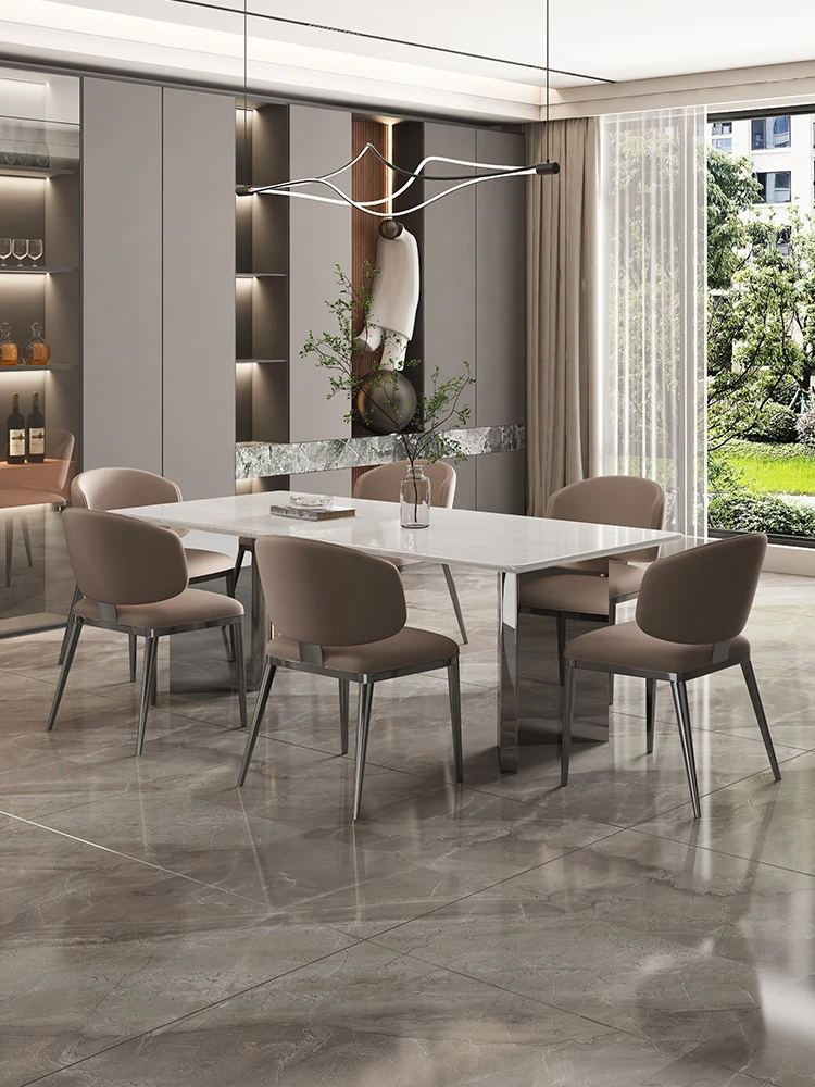 78.74in Import natural Cari ice Jade luxury stone dining table + Classy cat scratch leather dining chair * 6