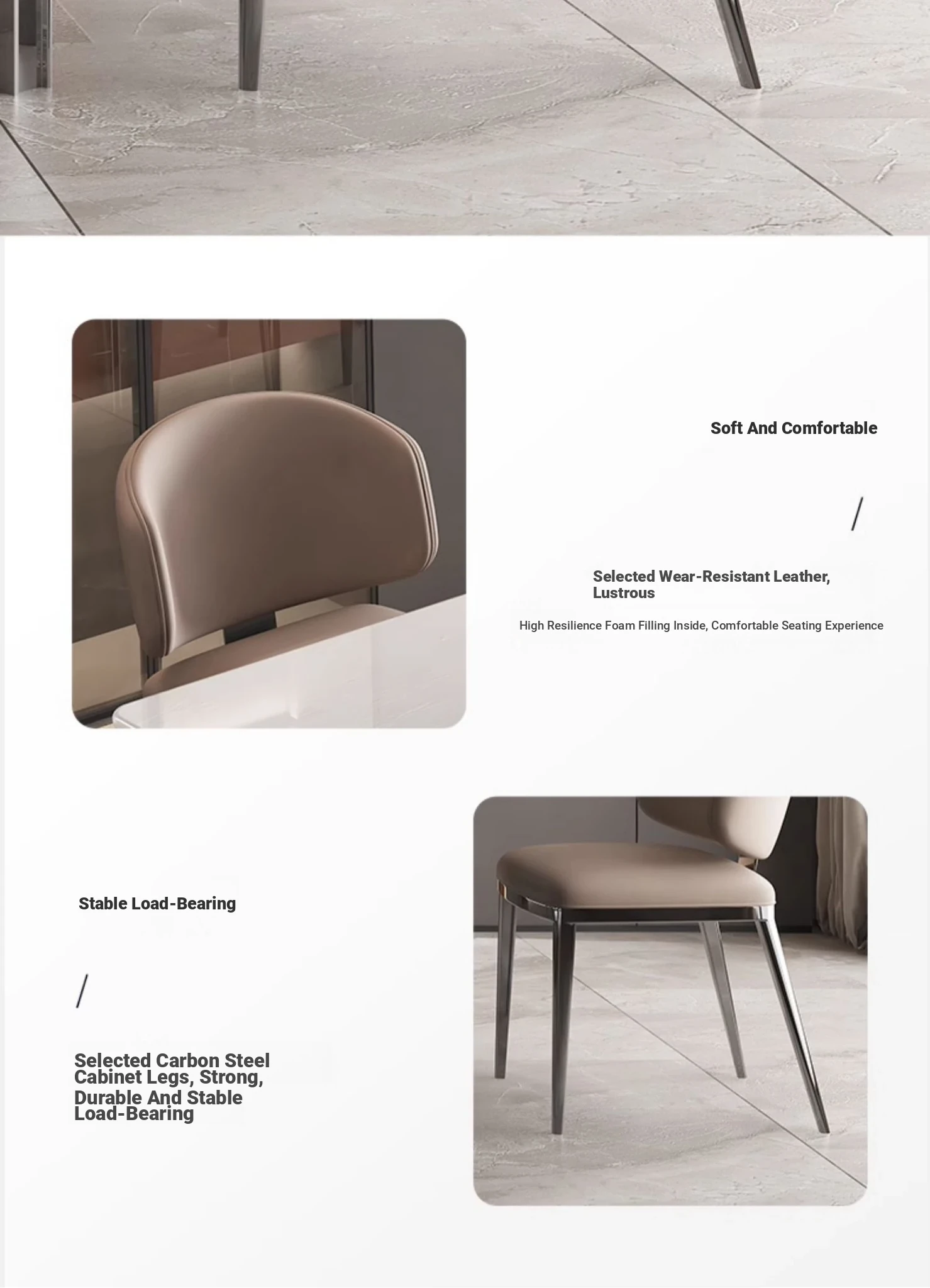 55.12in Import natural Cari ice Jade luxury stone dining table + Classy cat scratch leather dining chair * 4
