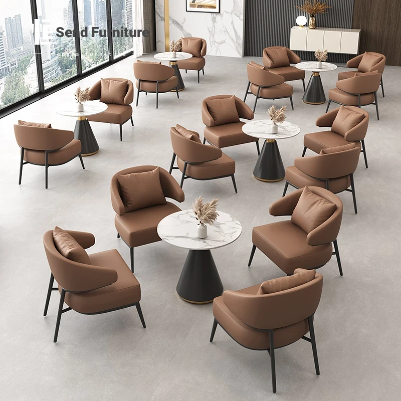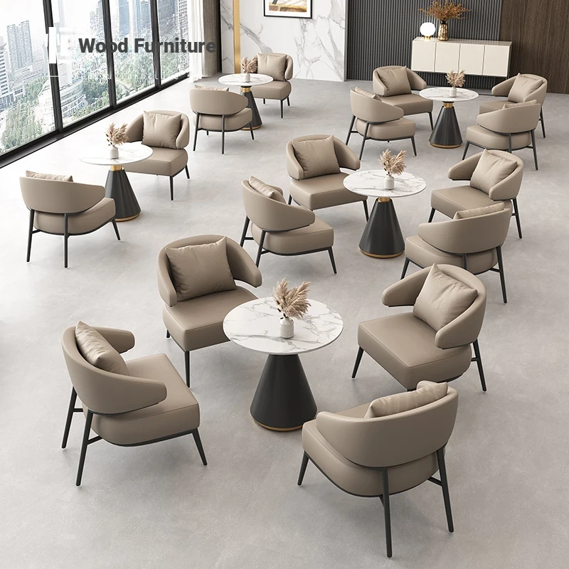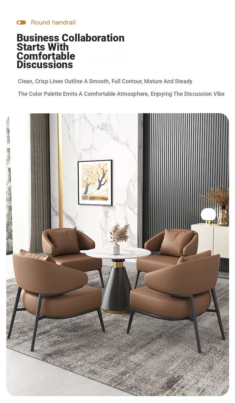 Modern Luxury Small Round Negotiation Table Set with 4 Chairs - Perfect for Real Estate Sales Offices and Client Meetings, Stylish Reception and Discussion Furniture组合