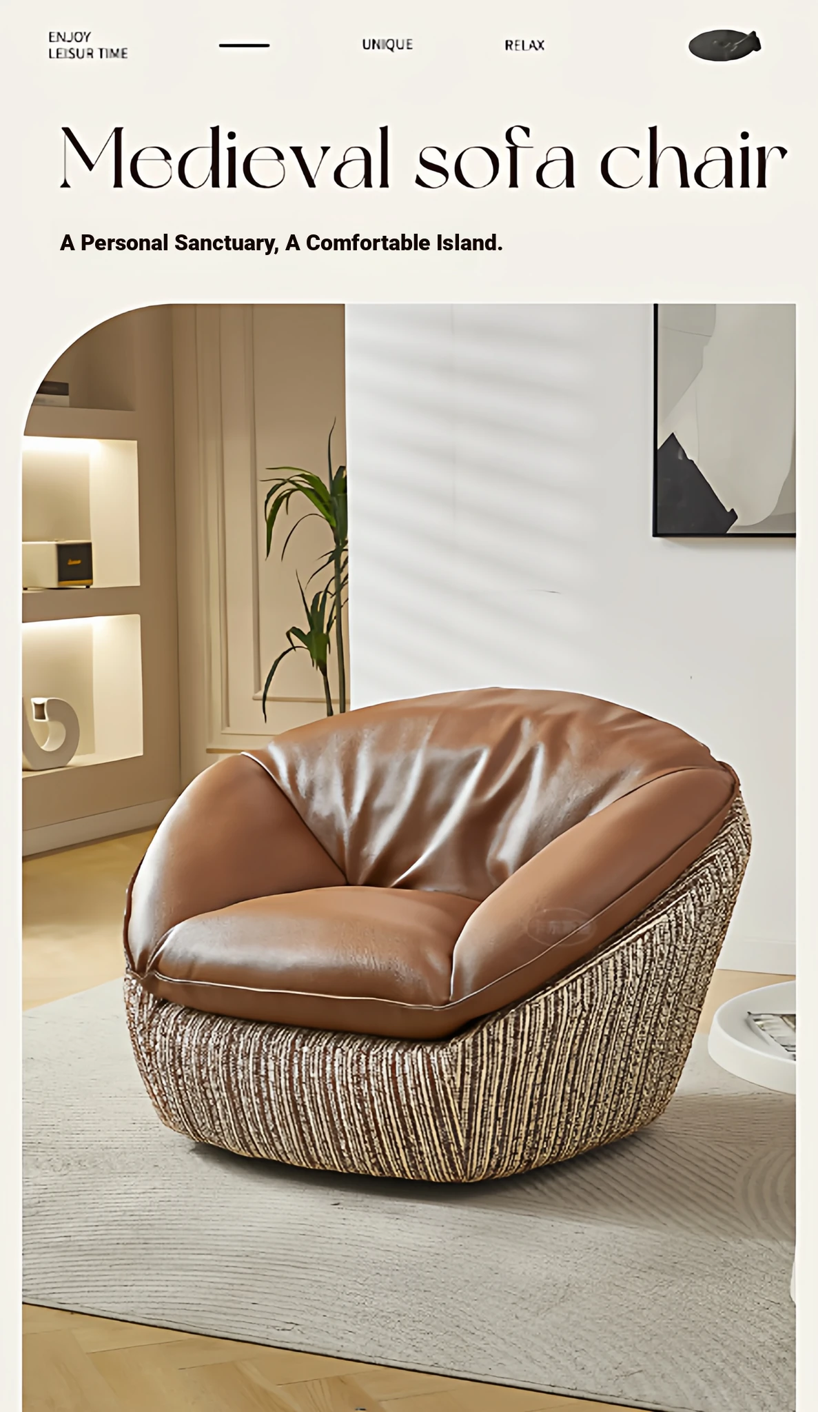Modern Minimalist Single Sofa Chair - Stylish Lounge Chair with Swivel Design, Perfect for Living Room and Balcony Relaxation, Ideal for Casual Conversations and Comfort