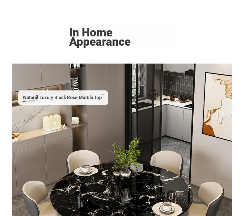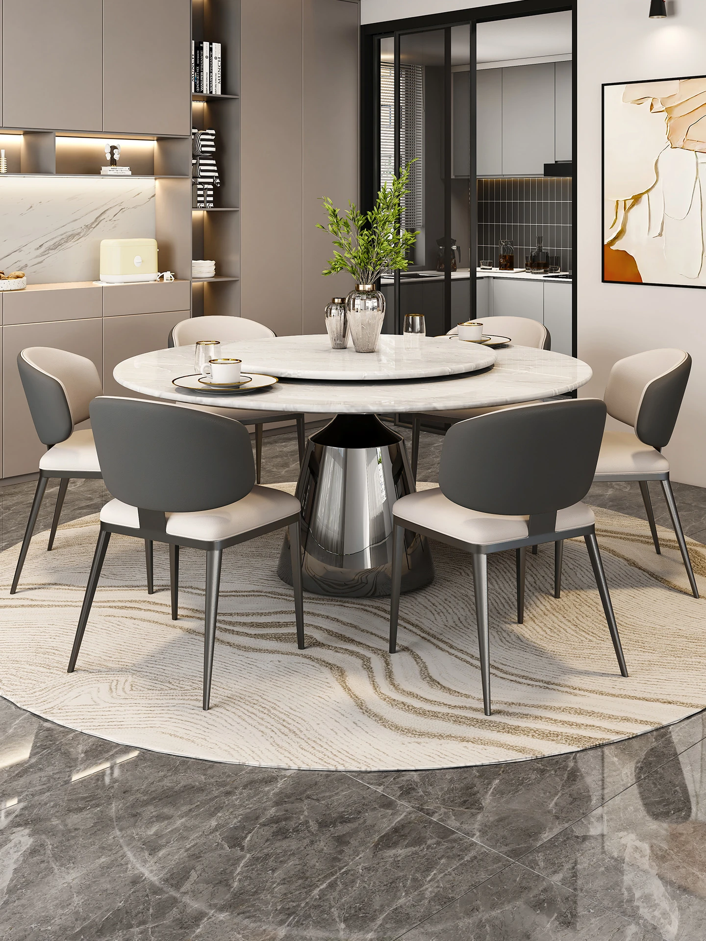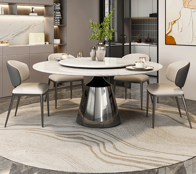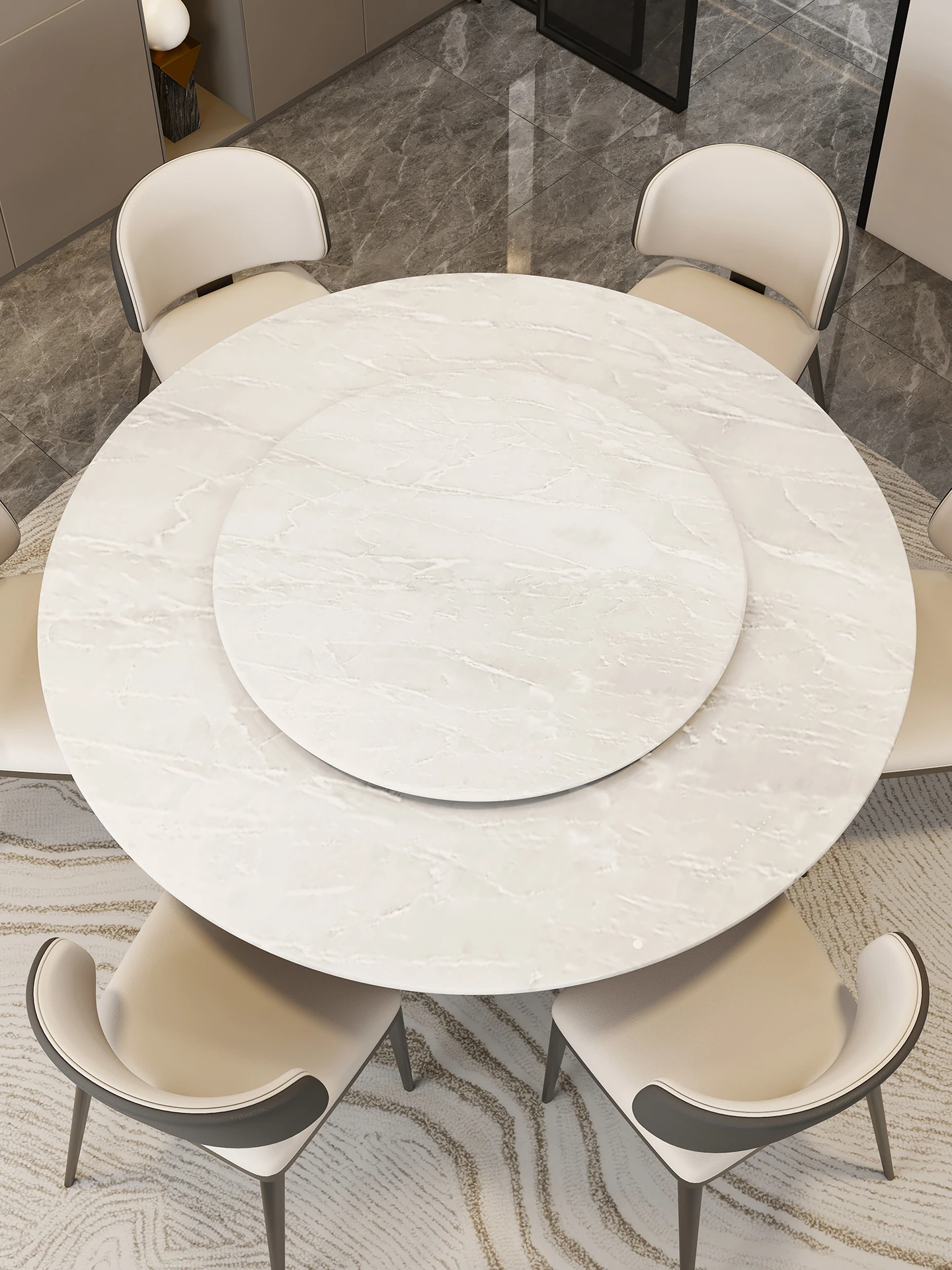 Natural Imported Luxury Carrara Marble Round Dining Table - Elegant Minimalist Design with High-End Feel, Perfect for Stylish Dining Experiences
