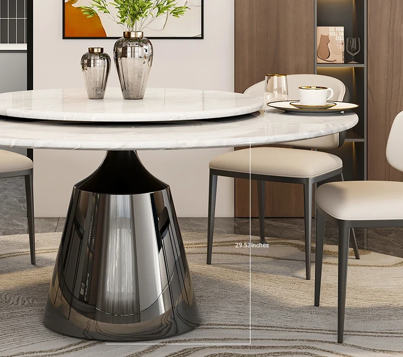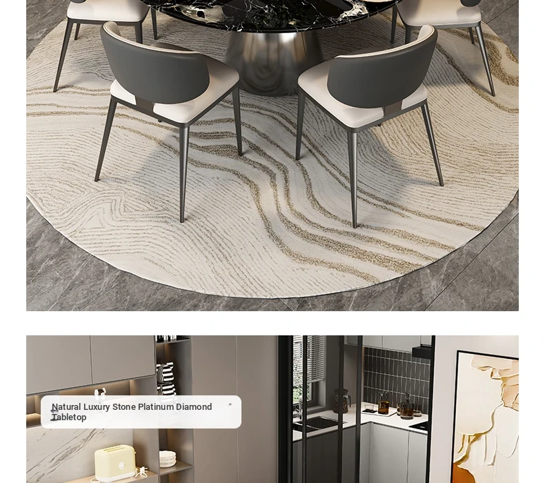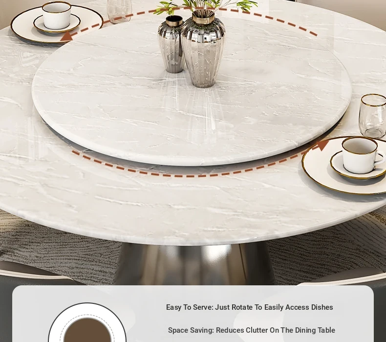 Import natural luxury stone Cari ice Jade + turntable + Designer dining chair * 4