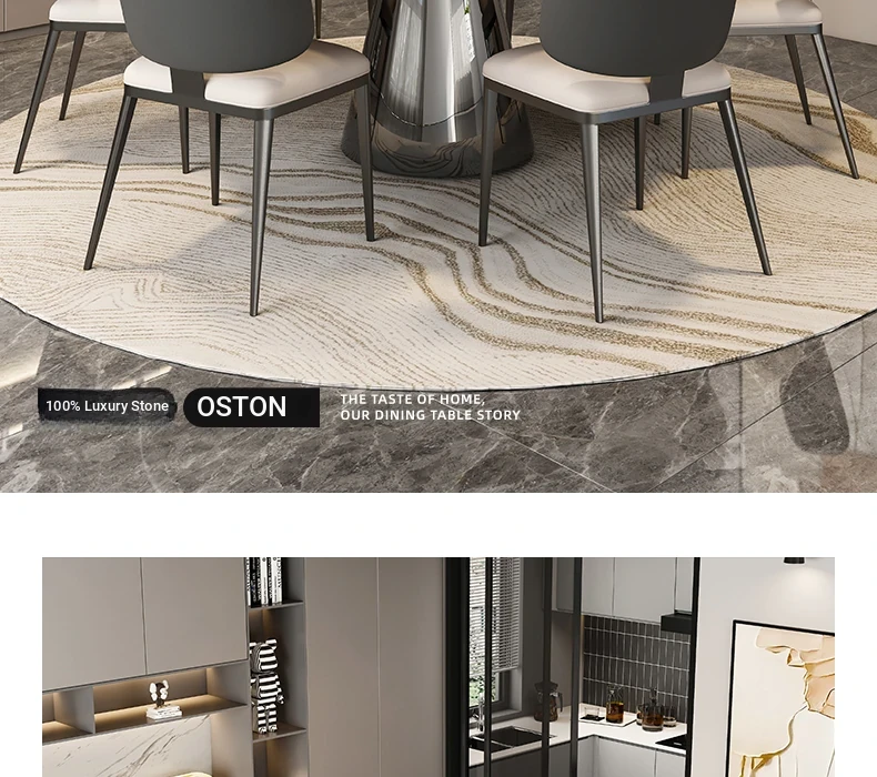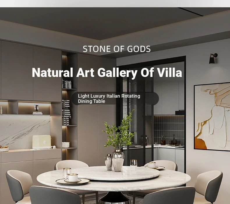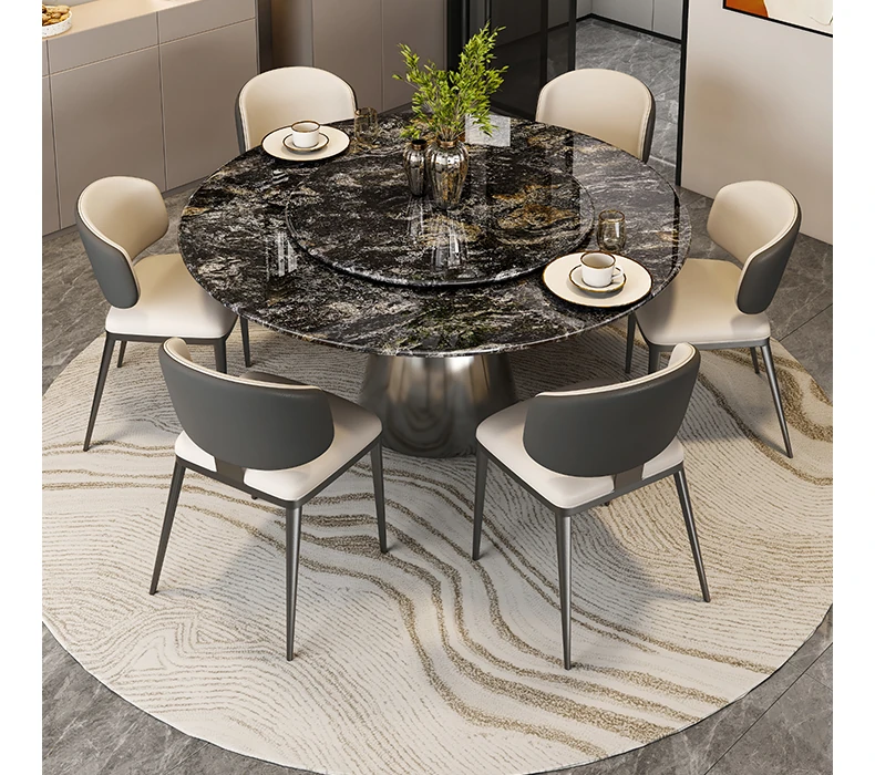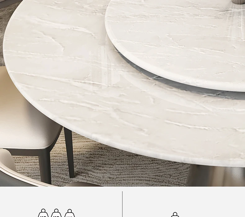 Import natural luxury stone Cari ice Jade + turntable + Designer dining chair * 6