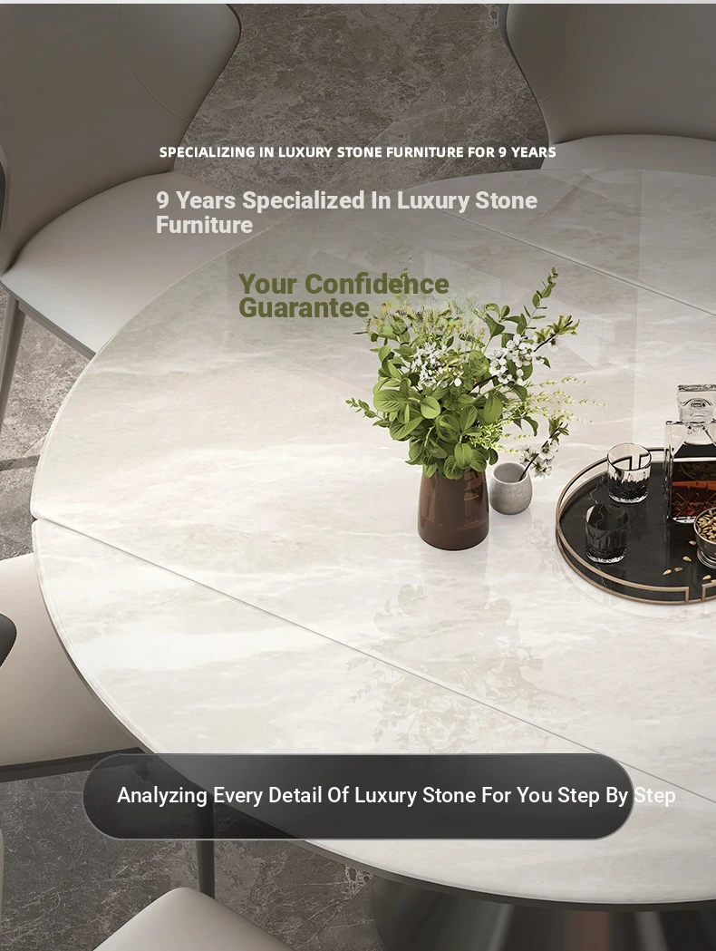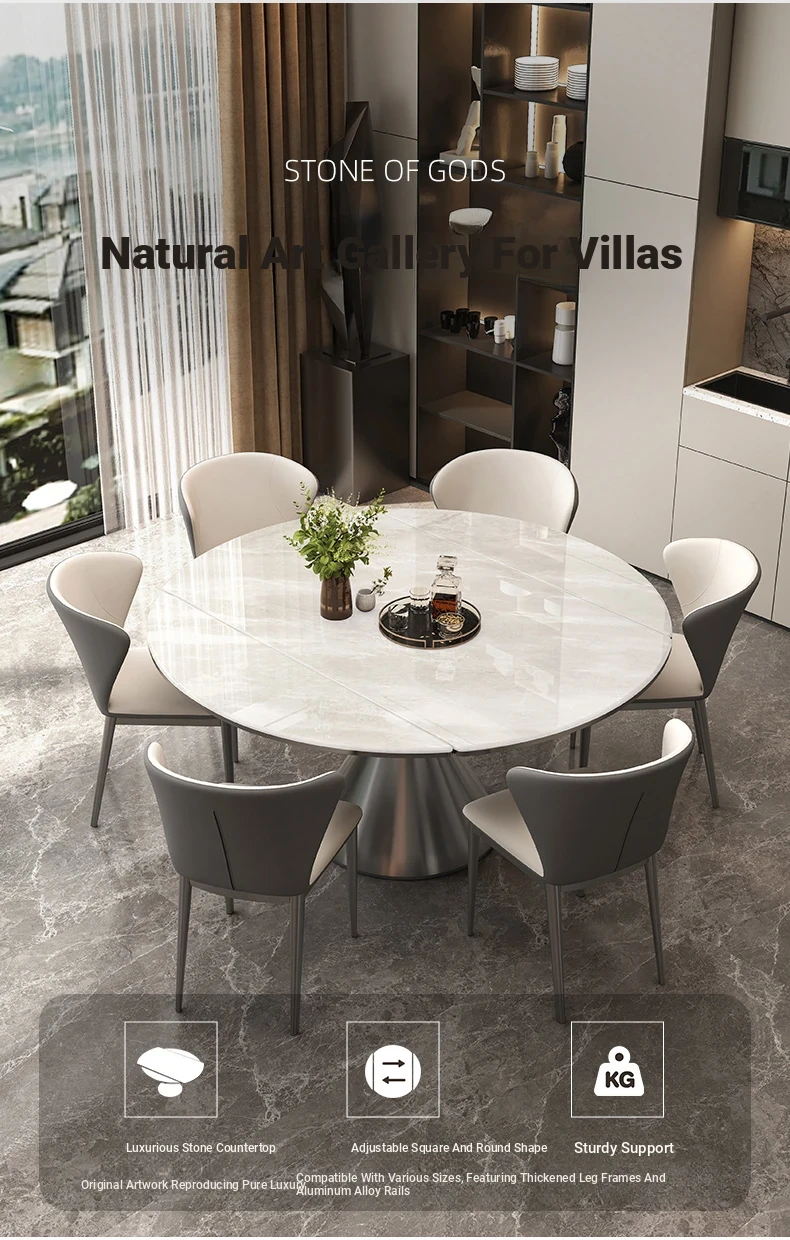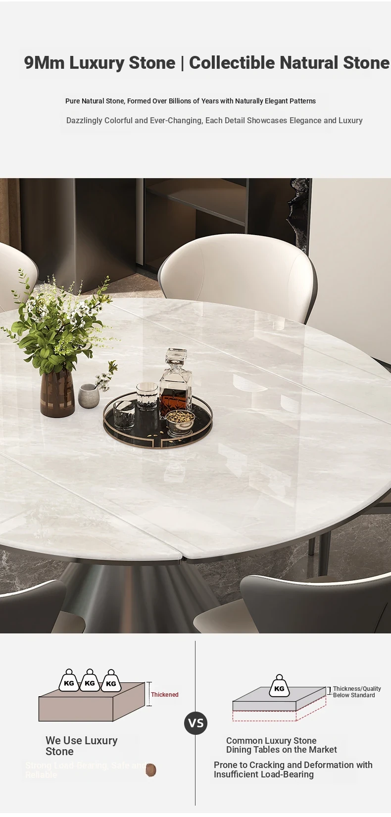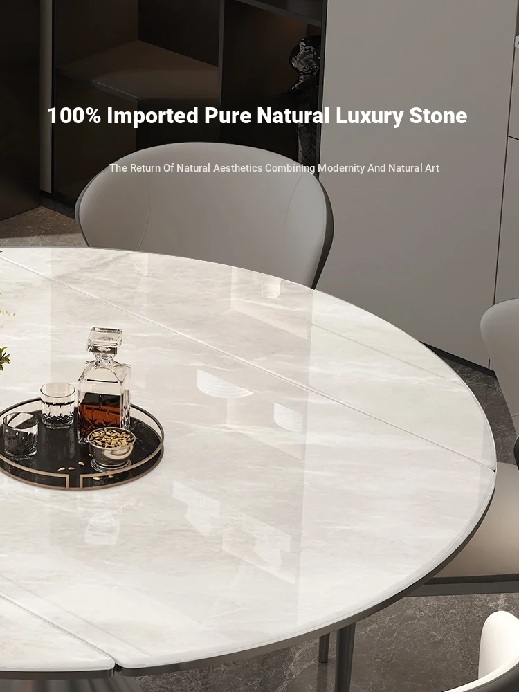 Natural Luxury Milan White Jade Expandable Dining Table - High-End Imported Marble Italian Style Rotating Round Table for Home Dining Room