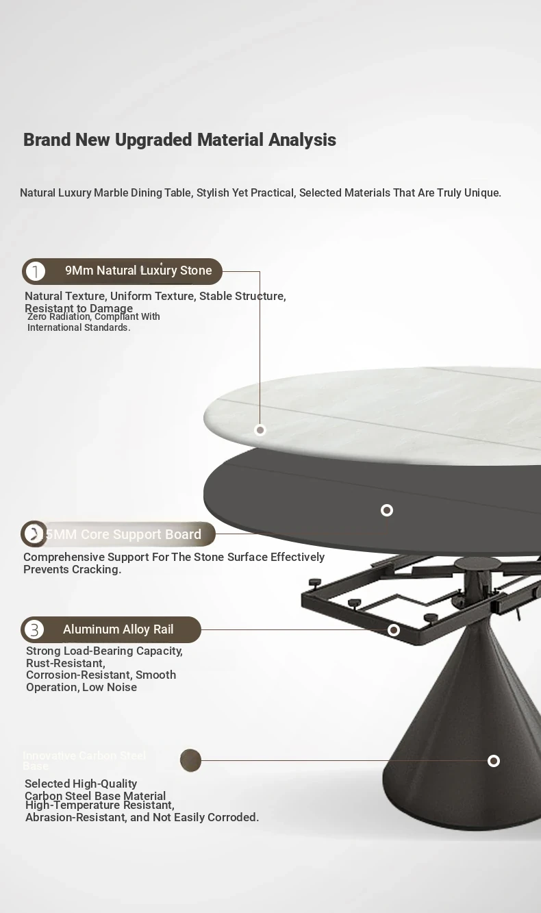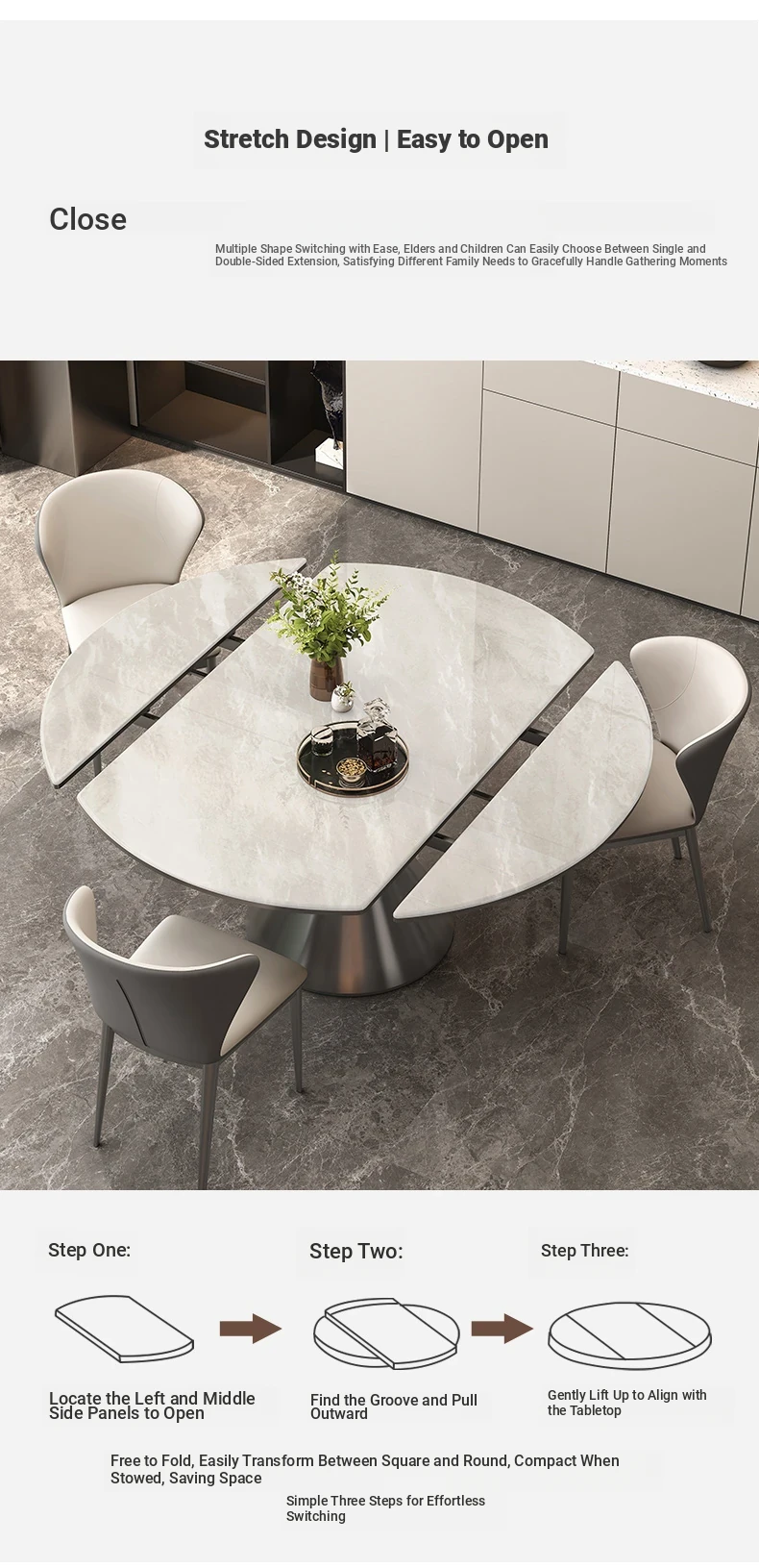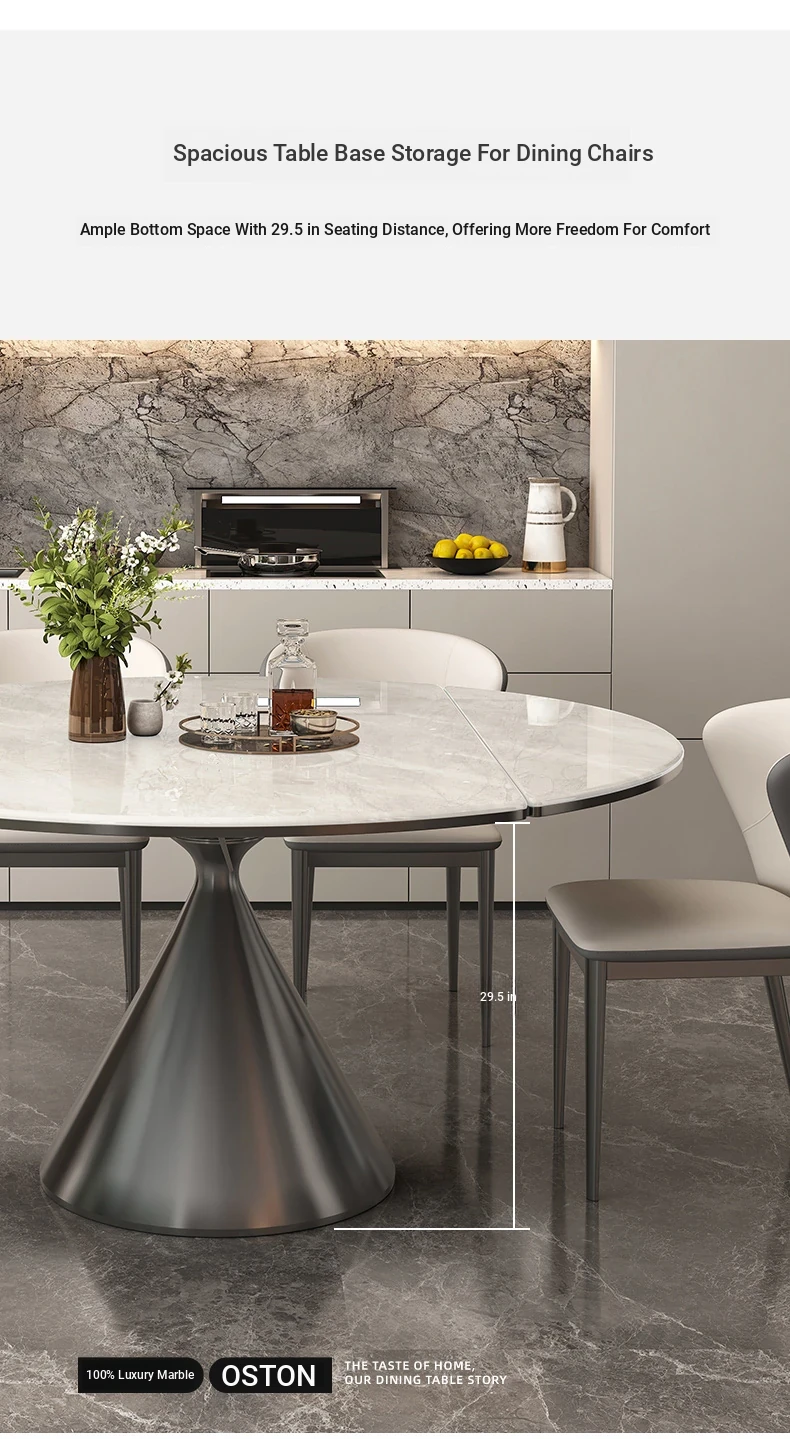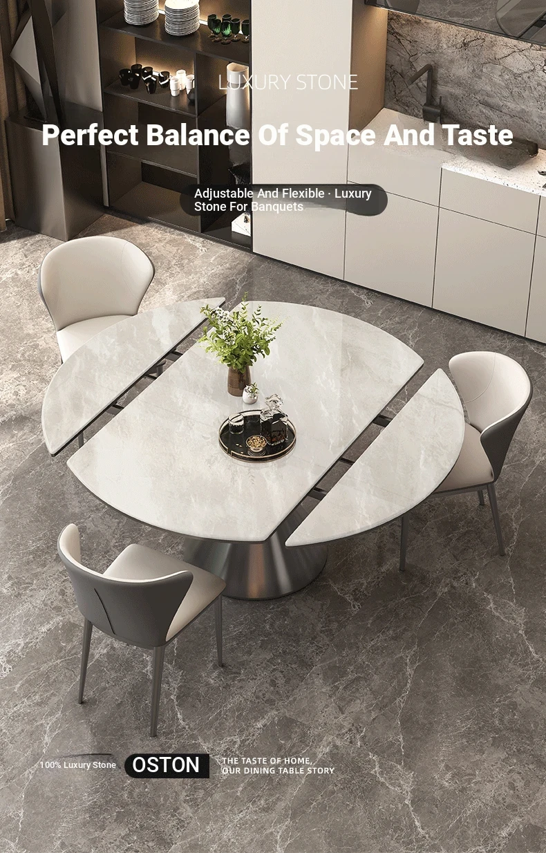 Natural Luxury Milan White Jade Expandable Dining Table - High-End Imported Marble Italian Style Rotating Round Table for Home Dining Room