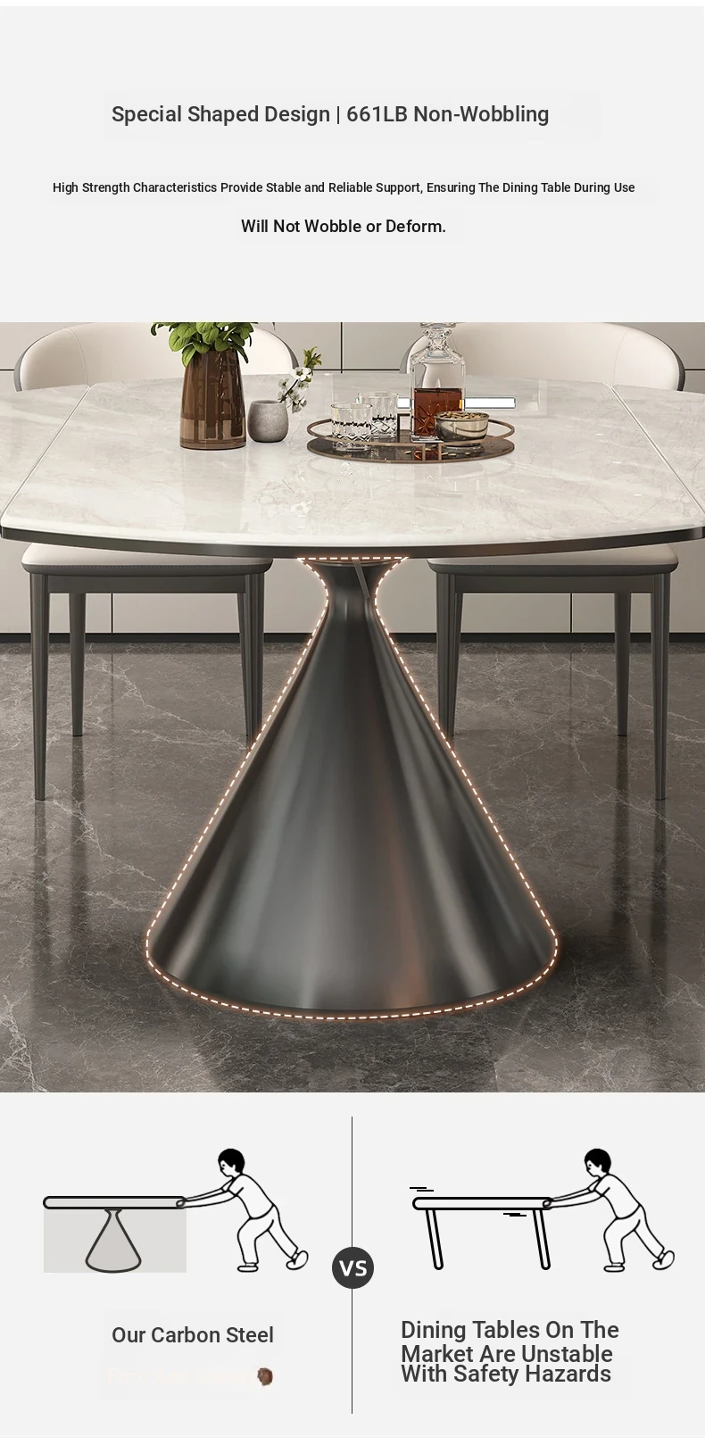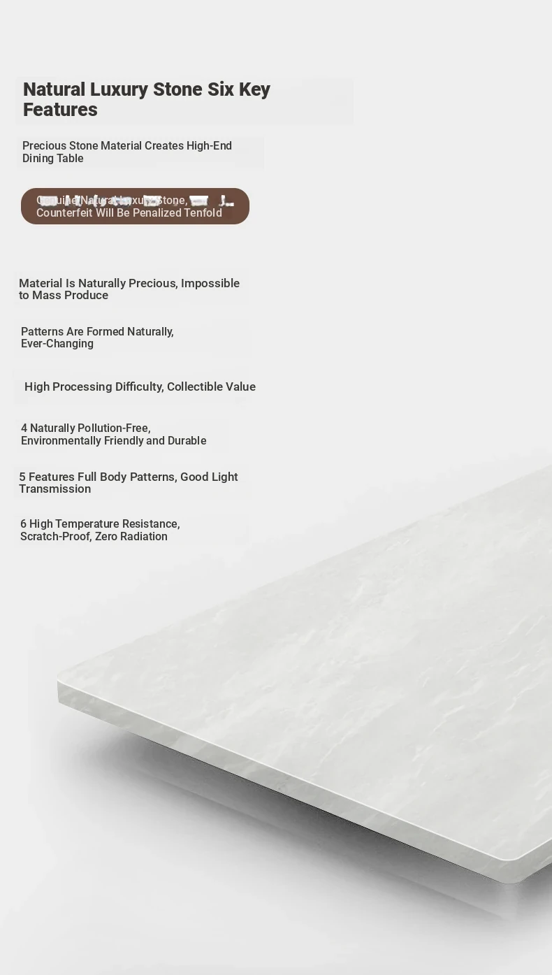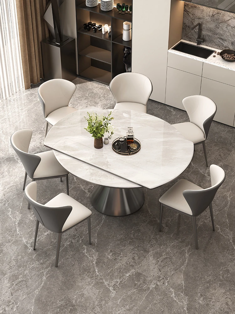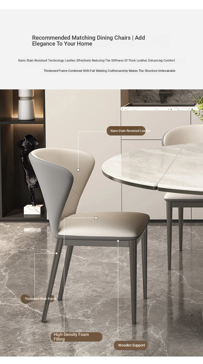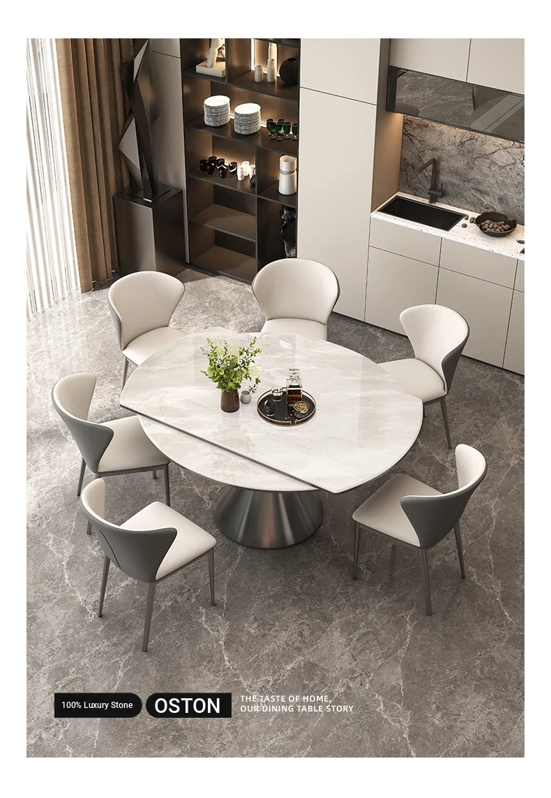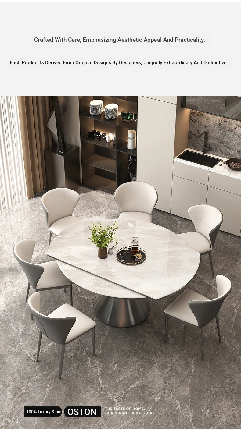Retractable table (Classy Import luxury stone) + cat scratch leather dining chair * 6