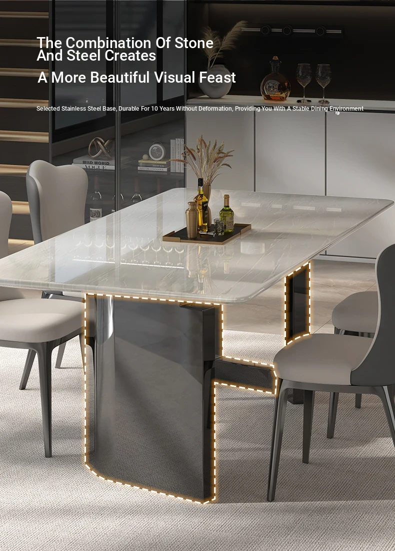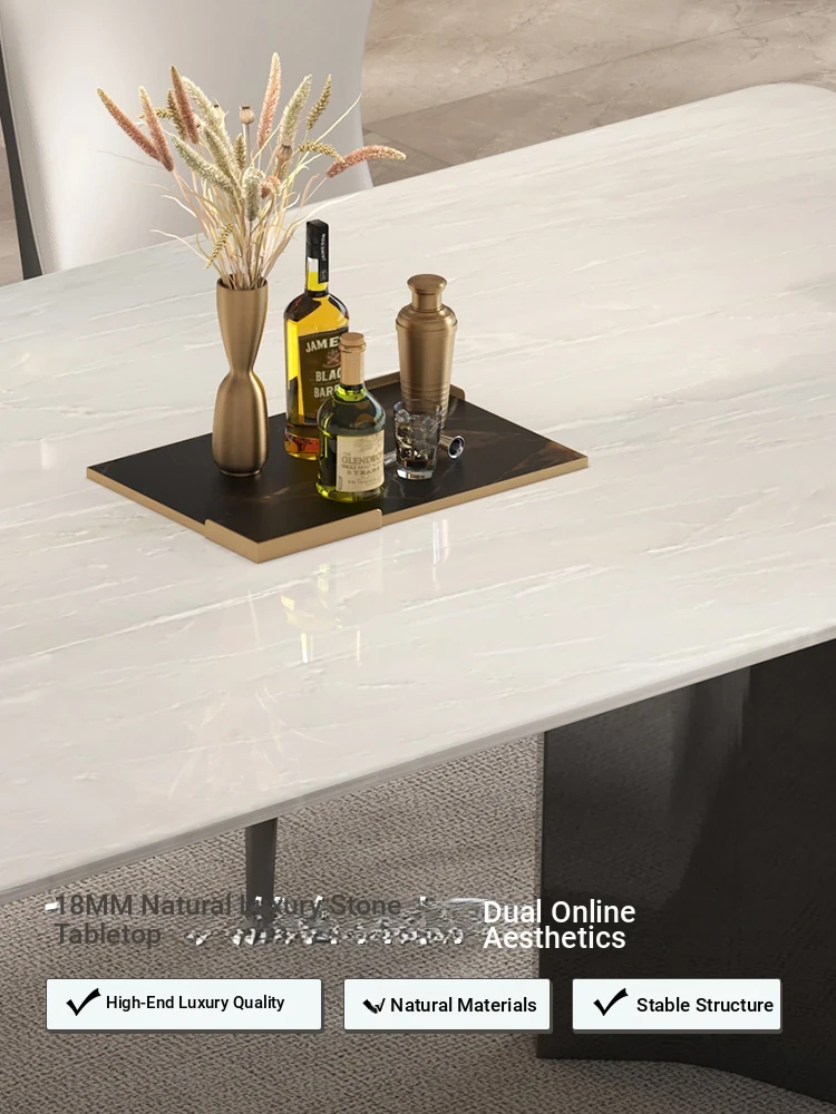 Natural Luxury Stone Dining Table - Imported Calacatta Marble for Modern Italian Style, Elegant Rectangular Design - Perfect for Upscale Homes