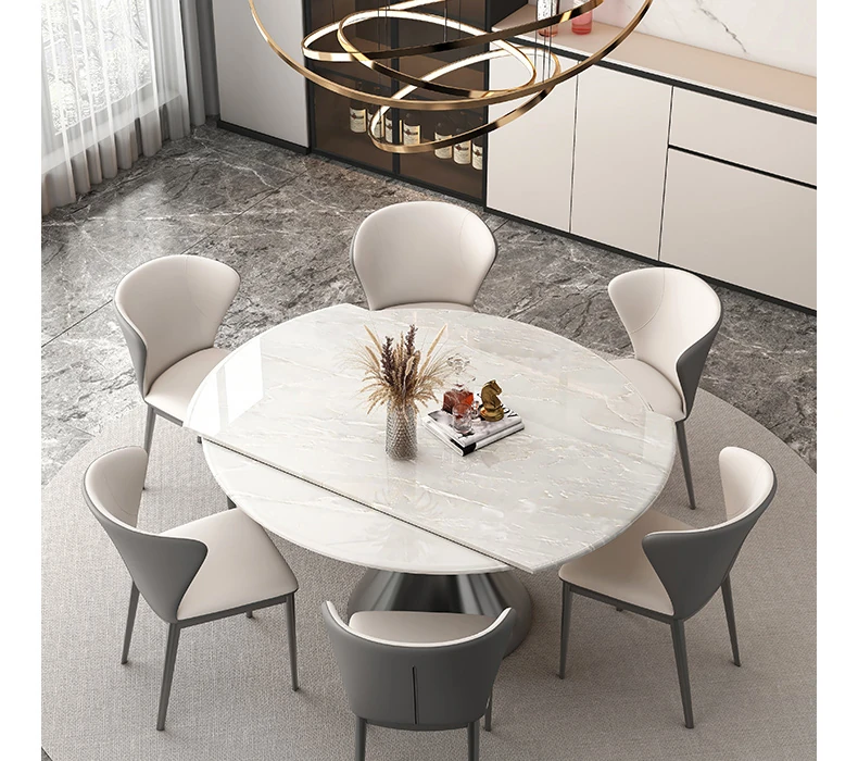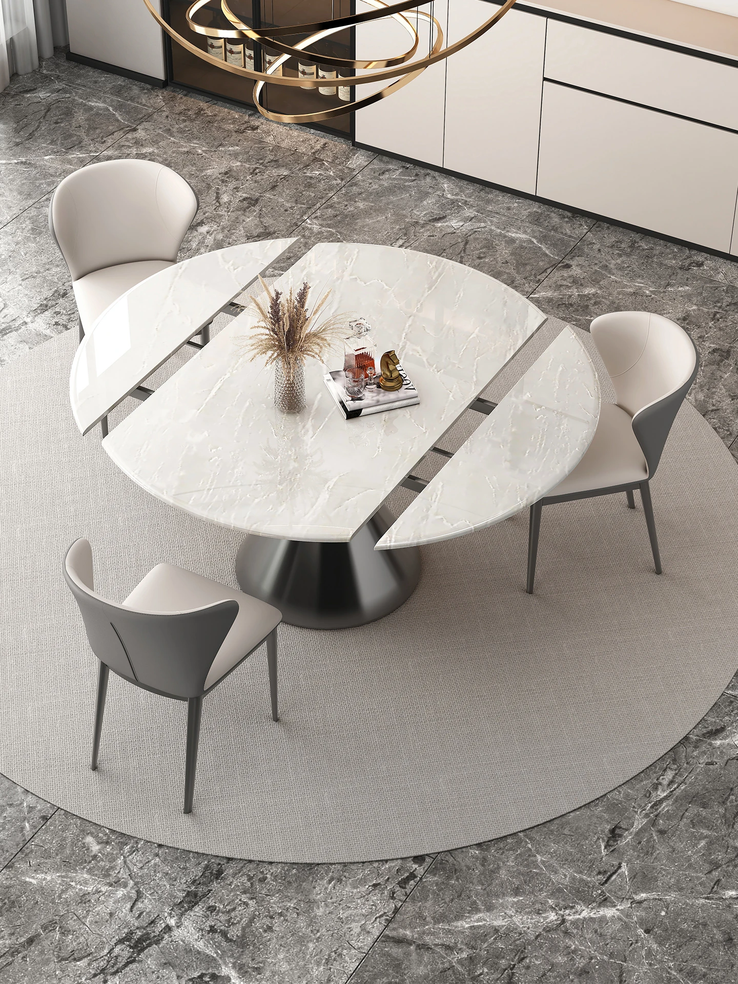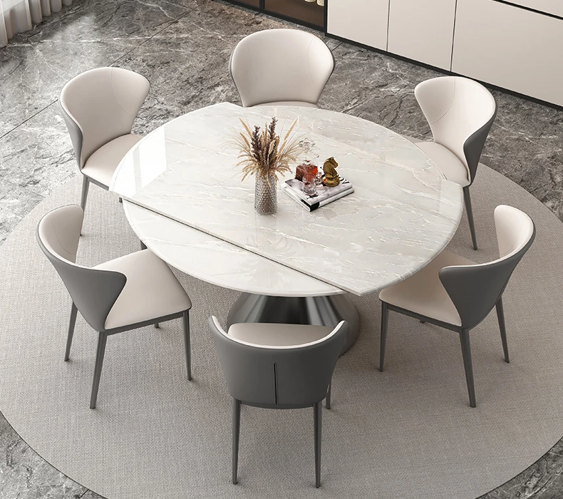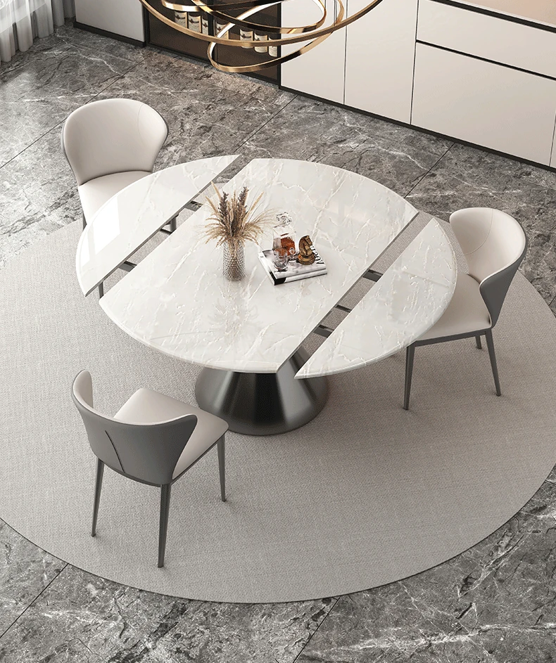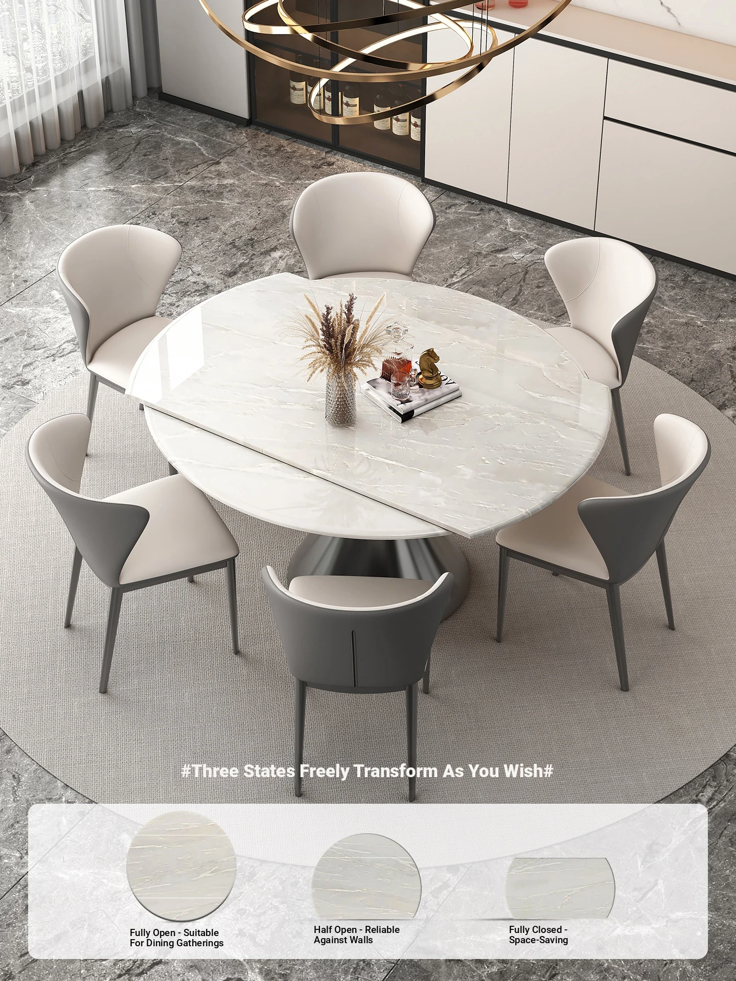 Natural Marble Expandable Dining Table - Italian Minimalist Style for Small Spaces, Featuring Kaleidoscope Rotating Dining Chairs Set